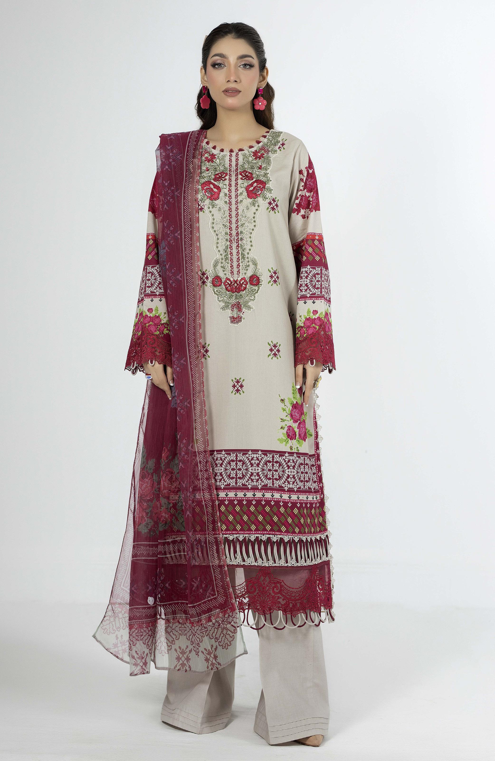 Fabric: Digital Printed Lawn Shirt 1 PC Dyed Cotton Trouser 1 PC Digital Printed Bamber Chiffon Dupatta 1 PC Include Embroidered Accessories |