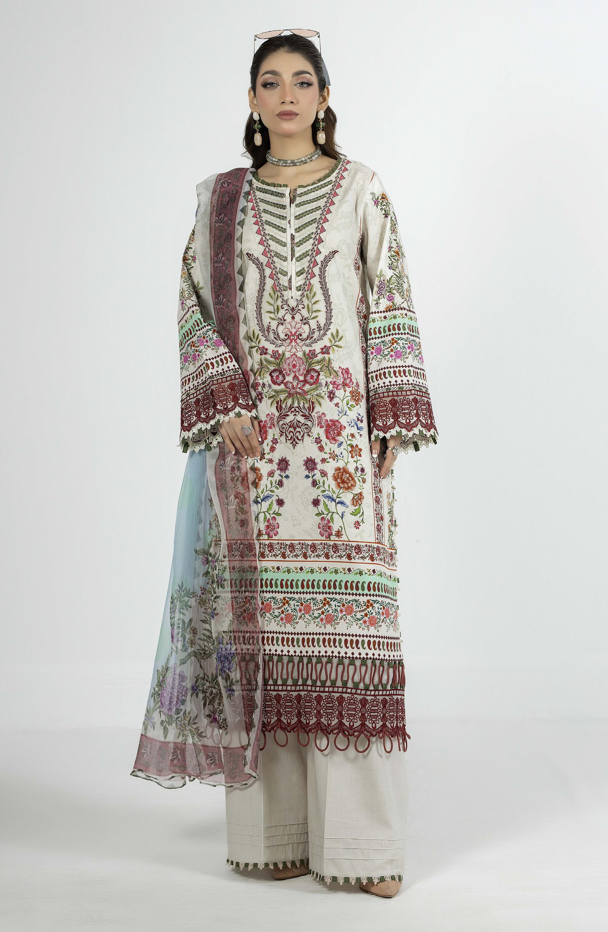 Fabric: Digital Printed Lawn Shirt 1 PC Dyed Cotton Trouser 1 PC Digital Printed Bamber Chiffon Dupatta 1 PC Include Embroidered Accessories |