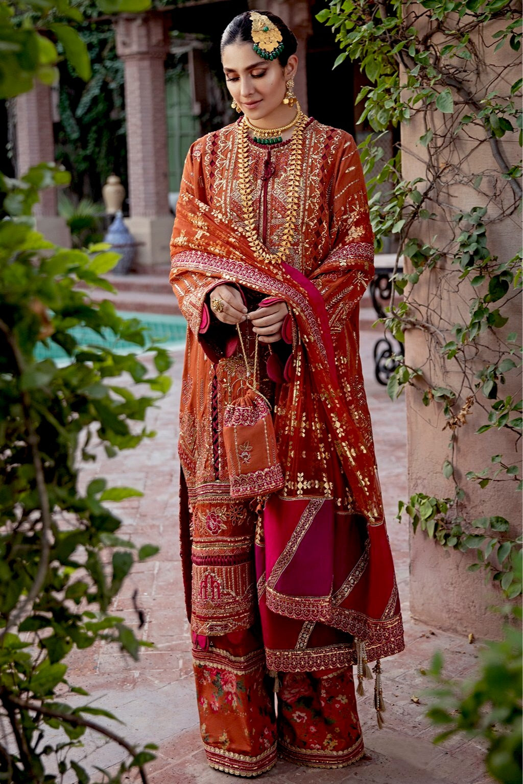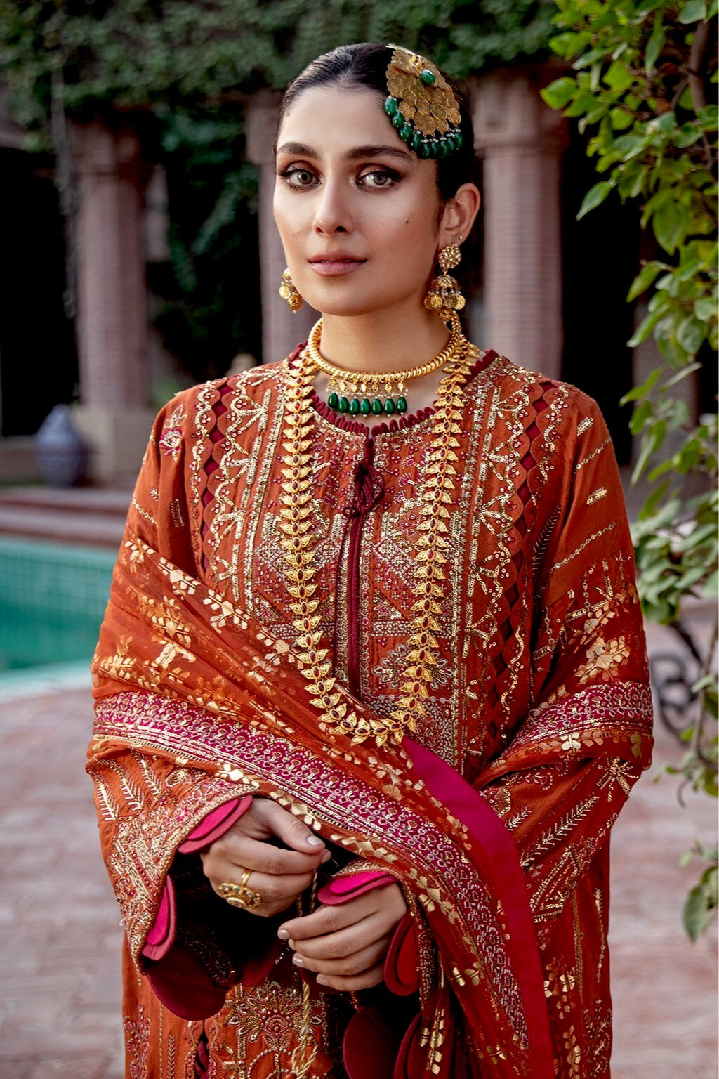 Fabric: Embroidered Raw Silk center Front 1 Pc Embroidered Raw Silk side Front L+R 2 Pc Embroidered Raw Silk Back 1 Yard Embroidered Raw Silk Sleeves 0.75 Yard Embroidered Raw Silk Neck 1 Pc Embroidered Raw Silk Front+Back border (1) 2 Yards Embroidered Raw Silk Front+Back border (2) 2 Yards Embroidered Organza Front+Back border (3) 2 Yards Foil Print Net Duppatta 3 Yards Embroidered Raw Silk Duppatta border 8 Yards Raw Silk Duppatta Palu 2.5 Yards Embroidered Raw Silk dupatta Palu (2) 2.5 Yards Embroidered Raw Silk Trousers 2.5 Yard Digital printed Rawsilk trousers patch |
