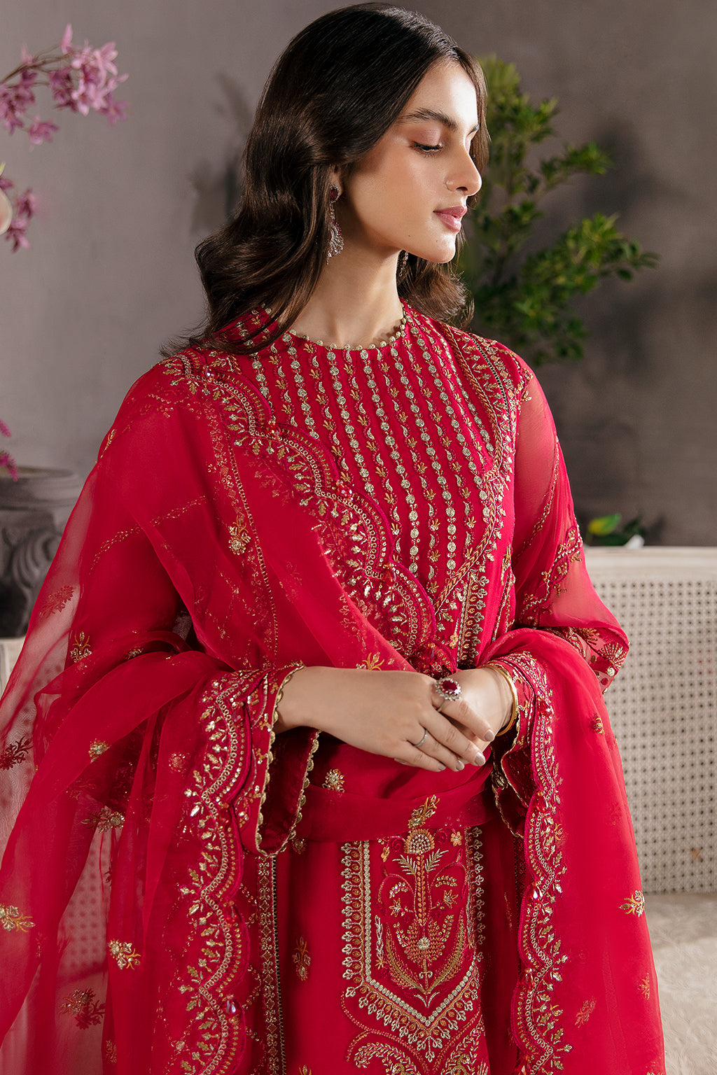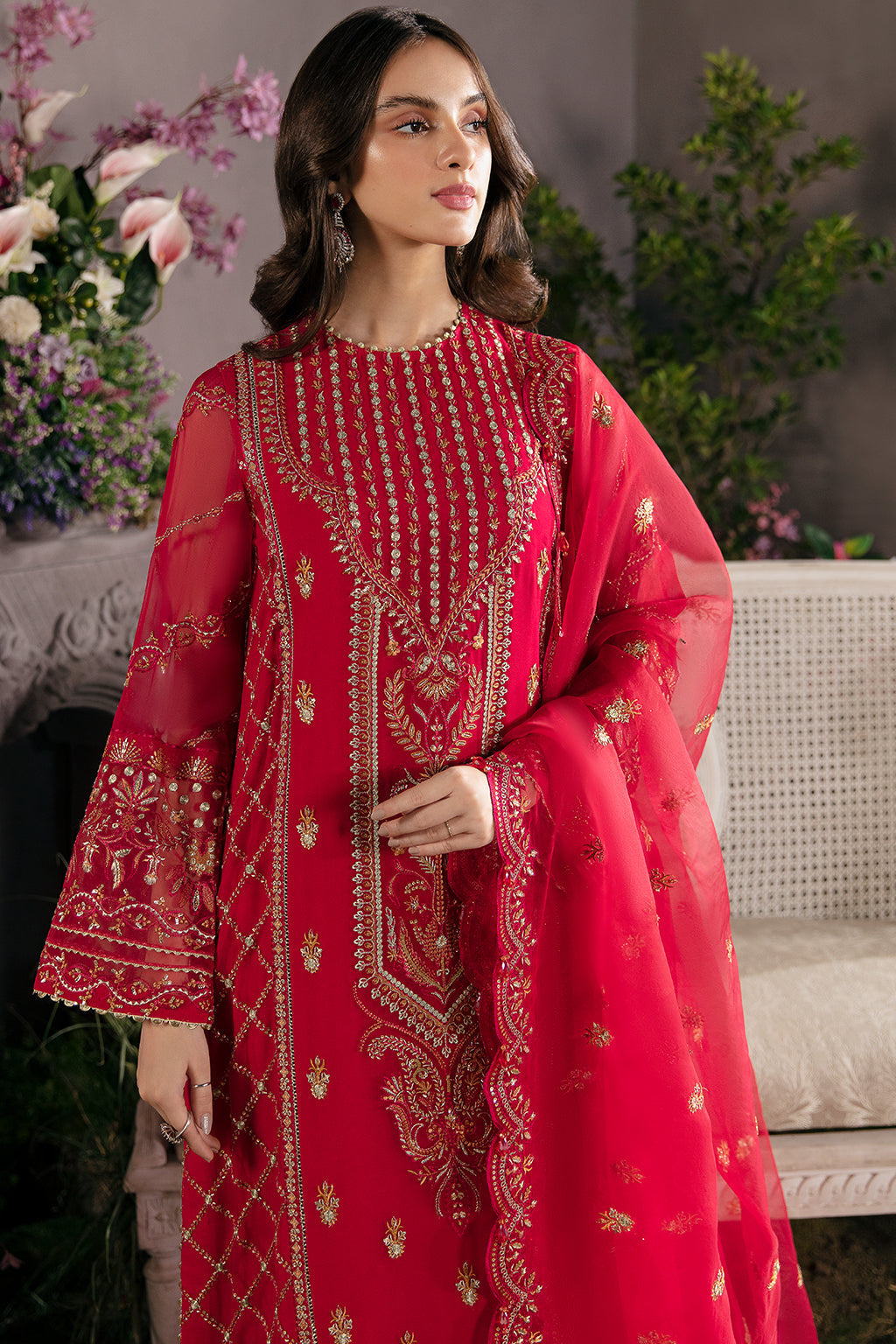 Fabric: Chiffon Embroidered Front Center Panel (1 Pc) Chiffon Embroidered Front Right Panel (1 Pc) Chiffon Embroidered Front Left Panel (1 Pc) Organza Embroidered Front+Back Border A (1.97 M) Organza Embroidered Front+Back Border B (1.97 M) Chiffon Embroidered Back (0.98 M) Chiffon Embroidered Sleeves (0.66 M) Organza Embroidered Sleeves Border (0.98 M) Organza Embroidered Dupatta (2.62 M) Organza Embroidered Dupatta Pallu Border (2.26 M) Organza Embroidered Dupatta 4 Side Border (7.91 M) Raw Silk Dyed Trouser (2.28 M) |