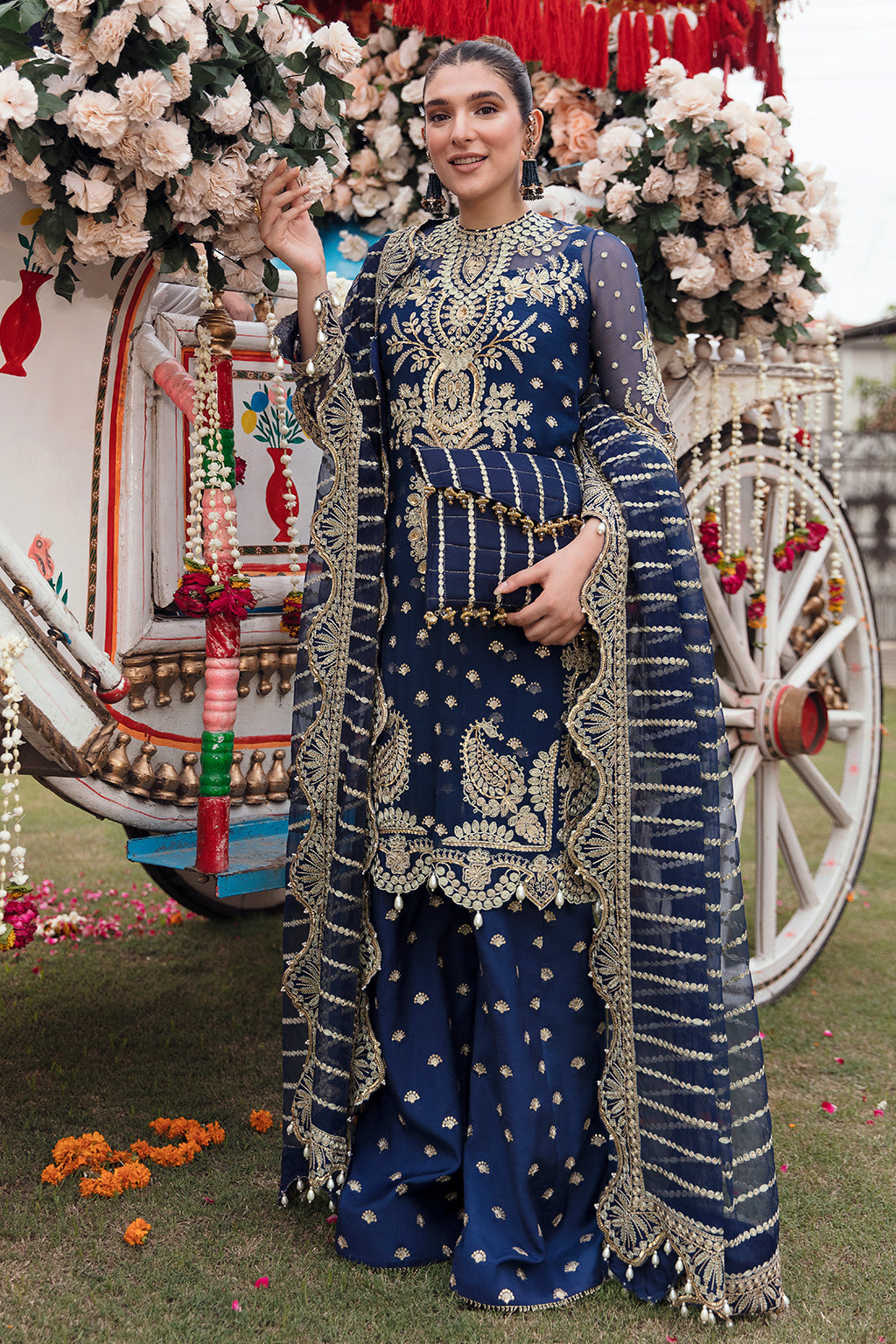 Fabric: Chiffon Embroidered front (0.90 Meters) Chiffon Embroidered back (0.90 Meters) Chiffon Embroidered sleeves (0.66 Meters) Organza Embroidered sleeves border (A) (1.06 Meters) Organza Embroidered sleeves border (B) (1.06 Meters) Organza Front + Back Border (1.95 Meters) Organza Embroidered dupatta (2.68 Meters) Organza Embroidered dupatta pallu (2.40 Meters) Raw Silk Printed Trouser (2.25 Meters) |