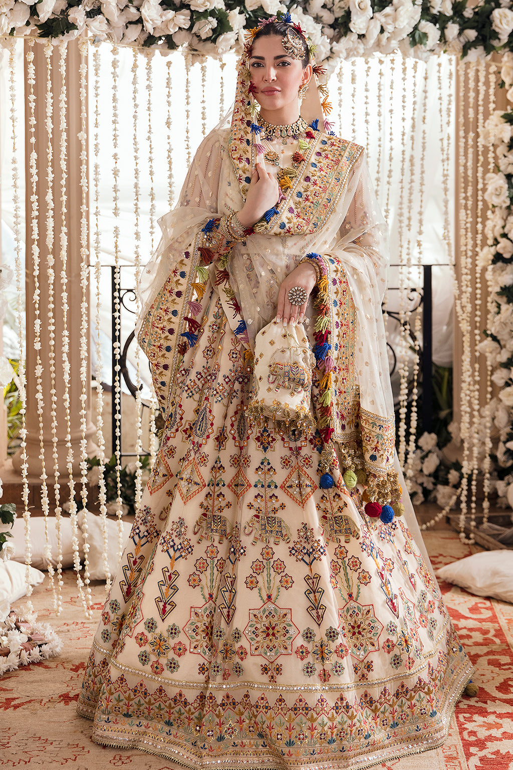 Fabric: Net Embroidered front + back body (0.66 Meters) Net Embroidered jacket (semi stitched) (1 Piece) Net Embroidered sleeves (0.66 Meters) Net Embroidered kali (A) (7 Piece) Net Embroidered kali (B) (7 Piece) Organza Embroidered front + back border (4.55 Meters) Organza Embroidered sIeeves border (1 Meters) Organza Zari dupatta (2.26 Meters) Organza Embroidered dupatta Border (7.90 Meters) Raw Silk Dyed Trouser (2.25 Meters) |