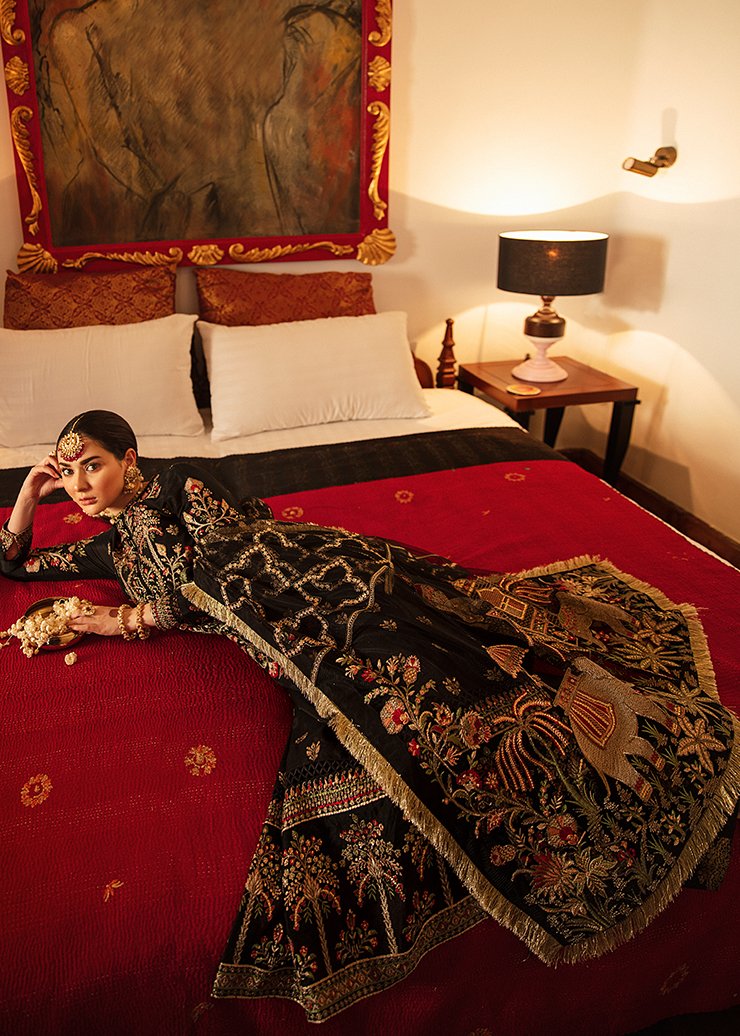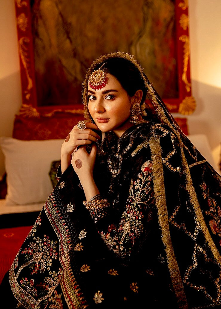 Mahjabeen wore by stunning Hania Amir is a beautifully designed piece from Shehnai with very apparent roots in tradition, with intricate embroidery, including our detailed Shikargah dupatta.