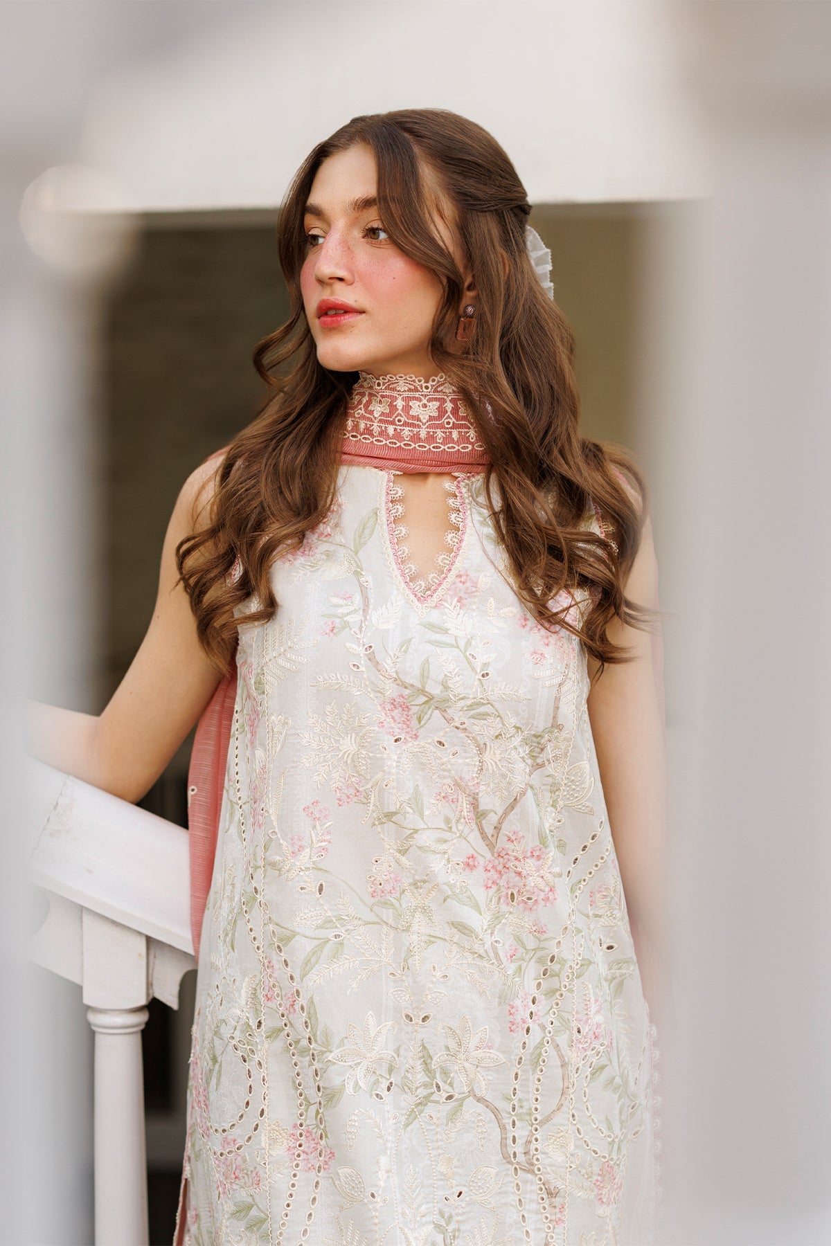 Summary: Elevate your summer wardrobe with this stunning Off White Pakistani Lawn Suit by Afrozeh. Crafted from breathable Lawn fabric, the kameez features delicate digital prints and intricate floral embroidery in pastel pink and green tones, creating a refreshing aesthetic for the Spring/Summer season. The unstitched dress material allows for a customized fit, perfect for crafting a long, flowing silhouette. Ideal for Eid festivities, garden parties, or daytime wedding events, this ensemble combines traditional elegance with modern grace. The look is completed with a contrasting pink dupatta, adding a soft festive touch to the outfit. Shop this elegant ethnic wear for a sophisticated seasonal statement.