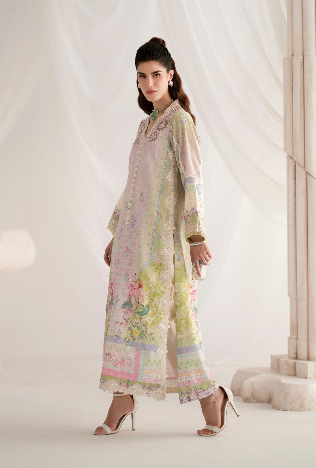 Summary: Discover ethereal elegance with the AJR Garden Whisper Silk suit by AMORIA. This exquisite Pakistani dress features a beautiful printed silk kameez, gracefully rendered in a delicate light Pink base. The luxurious silk fabric makes it a perfect choice for Spring/Summer festivities, offering a light and airy feel. Intricate embroidery and embellishments adorn the neckline, sleeves, and daman, adding a touch of formal sophistication. As a standout piece of ethnic wear, this unstitched suit is ideal for creating a bespoke festive outfit. Perfect for Eid, daytime weddings, or any formal gathering where you want to make a subtle yet stunning statement.