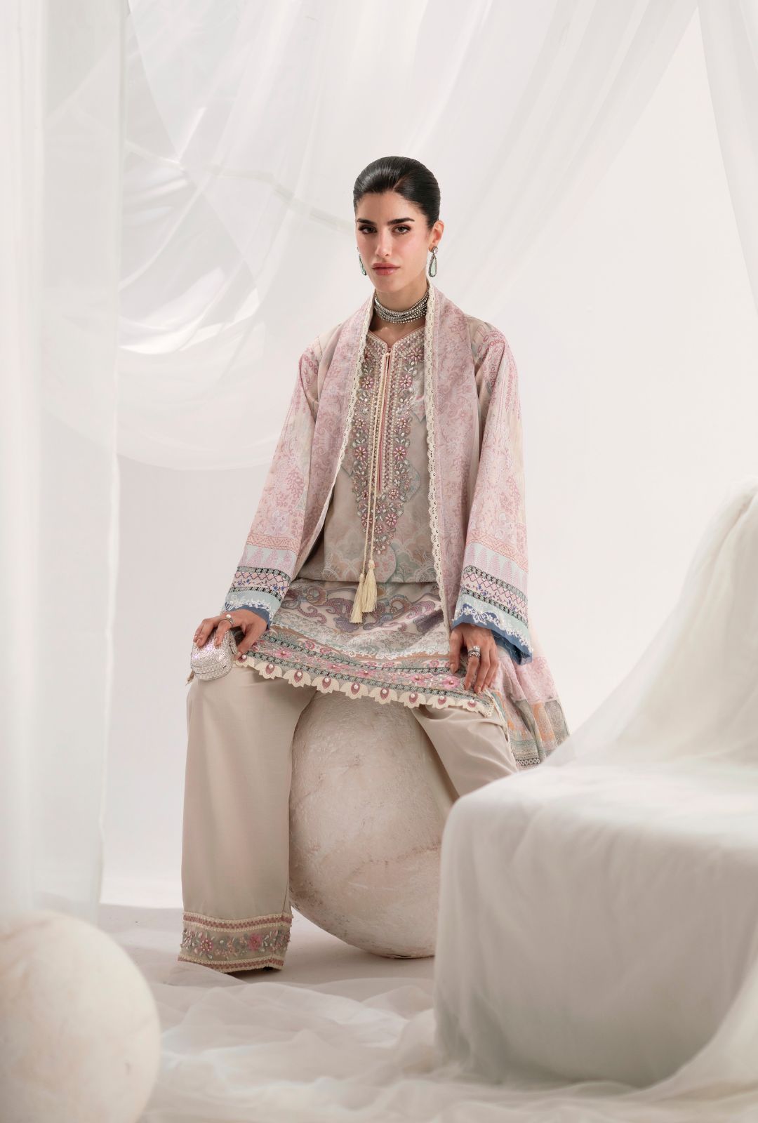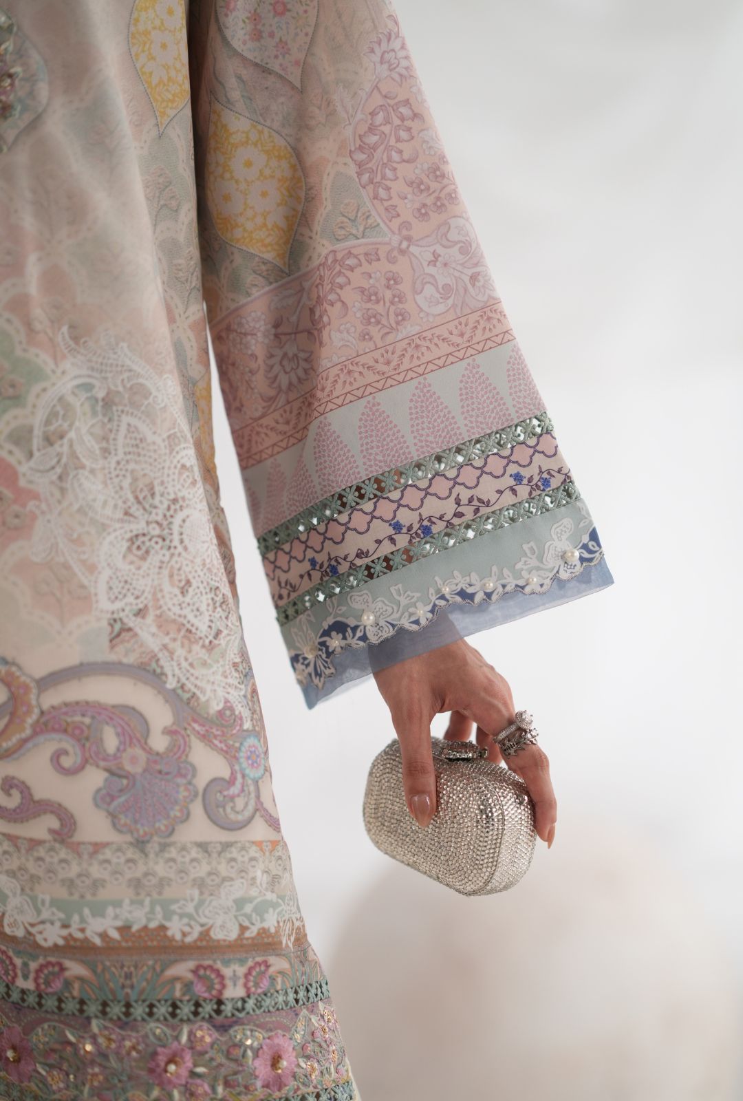 Summary: Embrace sophistication with the AJR Garden Whisper Pakistani Suit from the LUMIERE collection. This outfit features a luxurious printed silk kameez in a graceful cream shade, making it a perfect summer outfit. The light and breathable silk fabric is ideal for Spring/Summer festivities. Its elegance is enhanced by an intricately embroidered and embellished neckline and daman border, adding a touch of glamour. This stunning piece of ethnic wear is a superb choice for formal gatherings, making it ideal for Eid celebrations, wedding parties, or any upscale festive event where you want to make a statement.