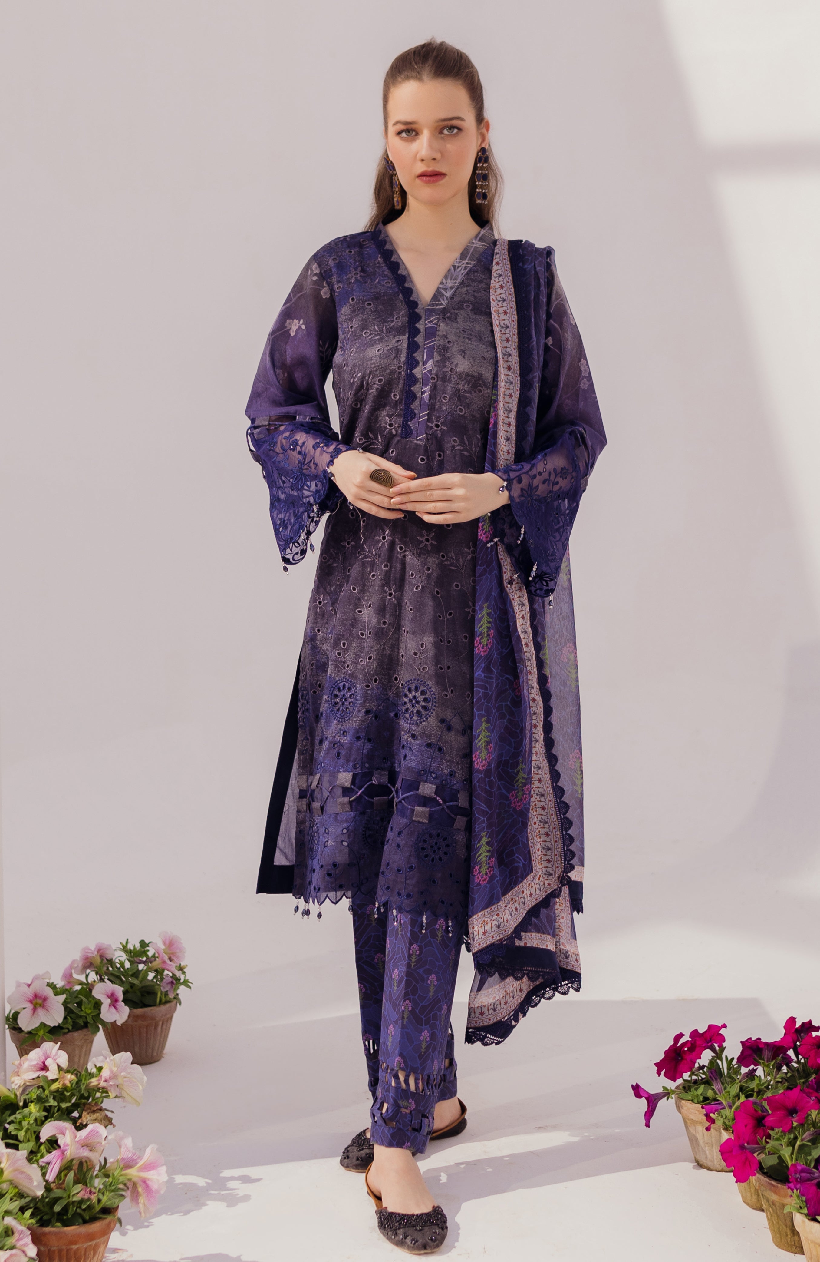 Fabric: Al Zohaib Details: SHIRT: DIGITAL PRINTED EMBROIDERED CHIKANKARI DUPATTA: DIGITAL PRINTED CHIFFON TROUSER: DIGITAL PRINTED CAMBRIC |
