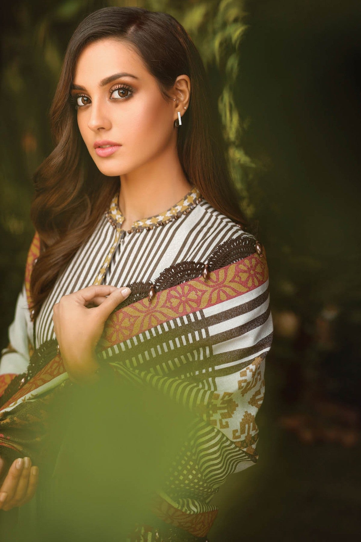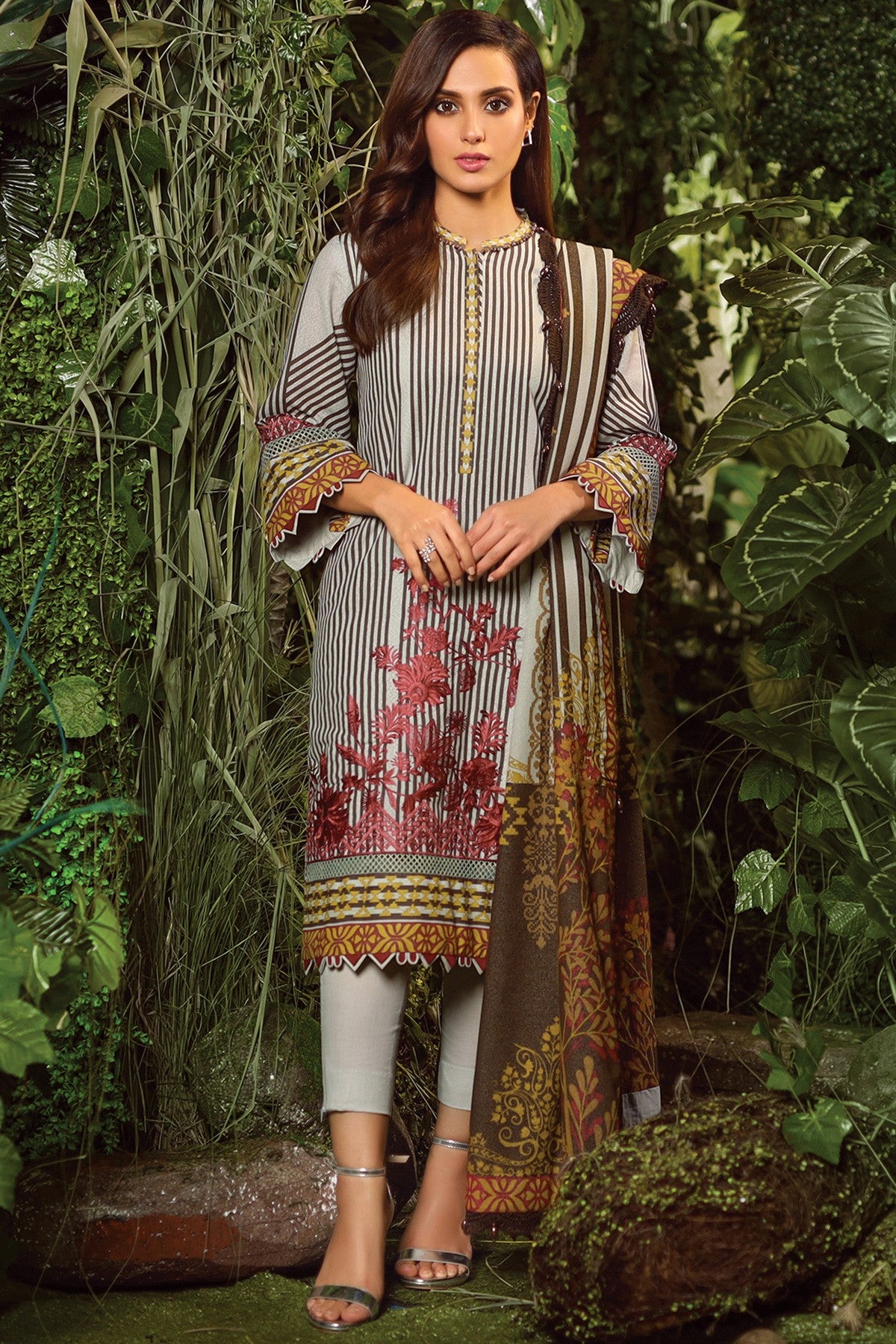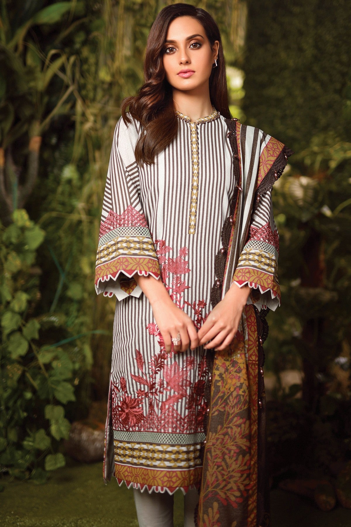 Fabric: Printed Karandi Dupatta Printed Karandi Shirt 2.5 Meters Printed Karandi Sleeves Embroidered Front and Embroidered Border for Sleeves Dyed Karandi Trouser |