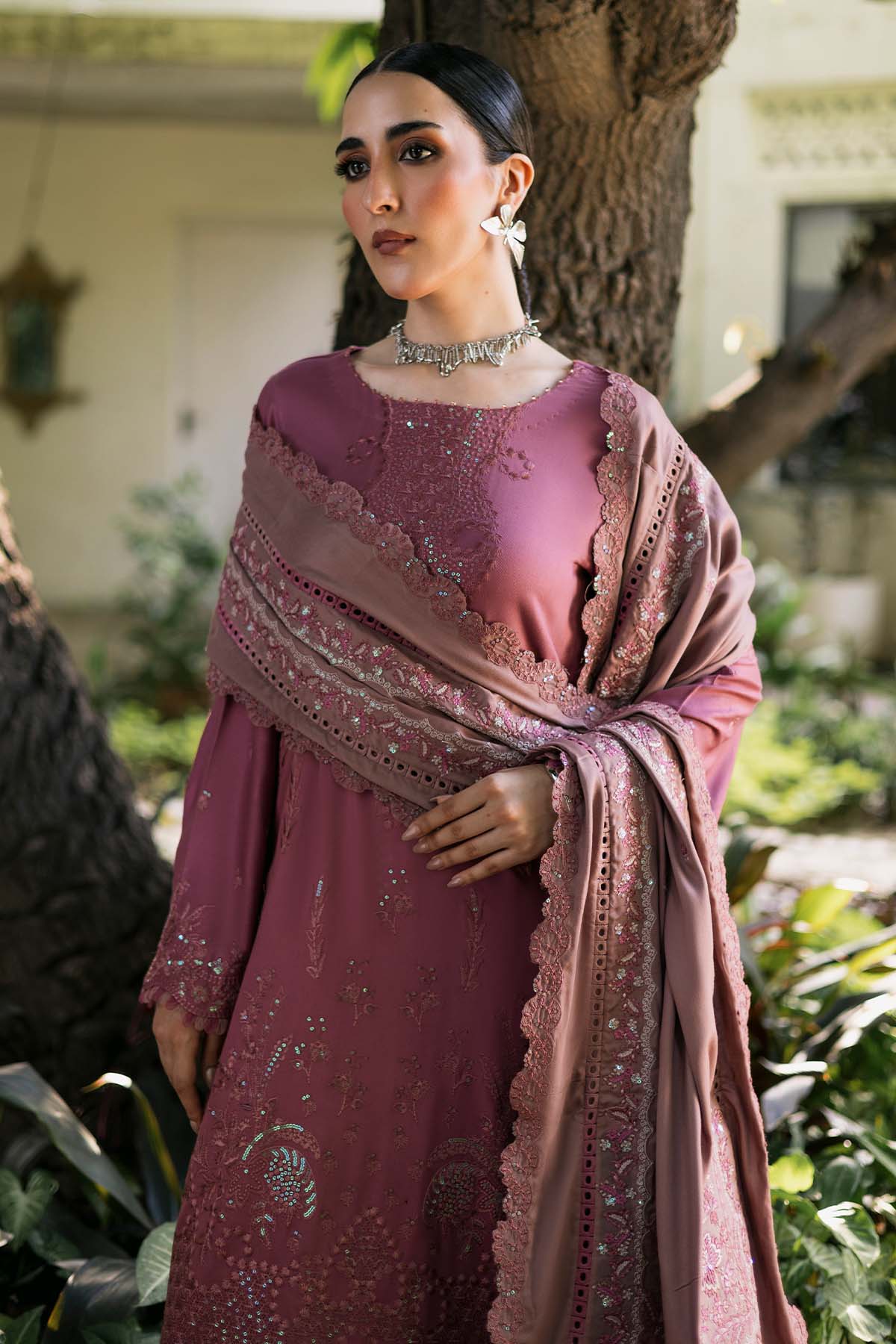 Summary: Embrace the elegance of the season with this stunning purple Pakistani suit from Nureh. Crafted from luxurious Marina Twill, this unstitched dress material is perfect for the Fall/Winter chill, offering both warmth and sophisticated style. The kameez features intricate, tone-on-tone embroidery across the neckline, hem, and sleeves, creating a look of understated grace. As a premier example of Pakistani ethnic wear, this winter outfit is designed for formal gatherings and festive occasions. The rich fabric and detailed craftsmanship make it an ideal choice for creating a custom-fit ensemble that exudes timeless charm.