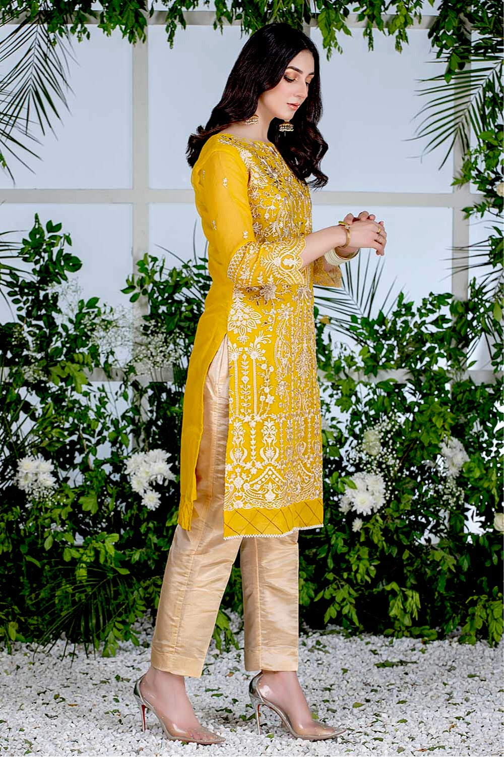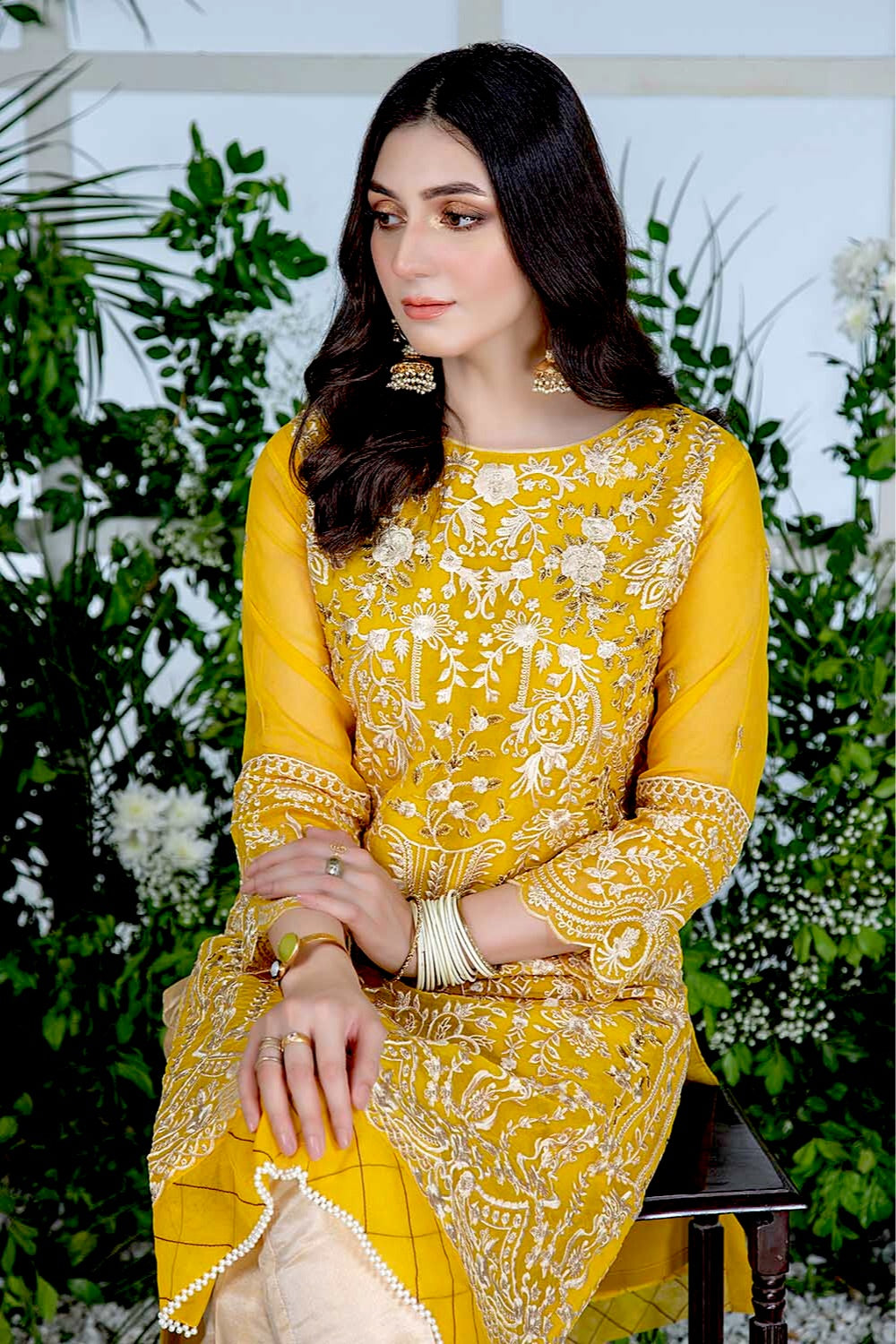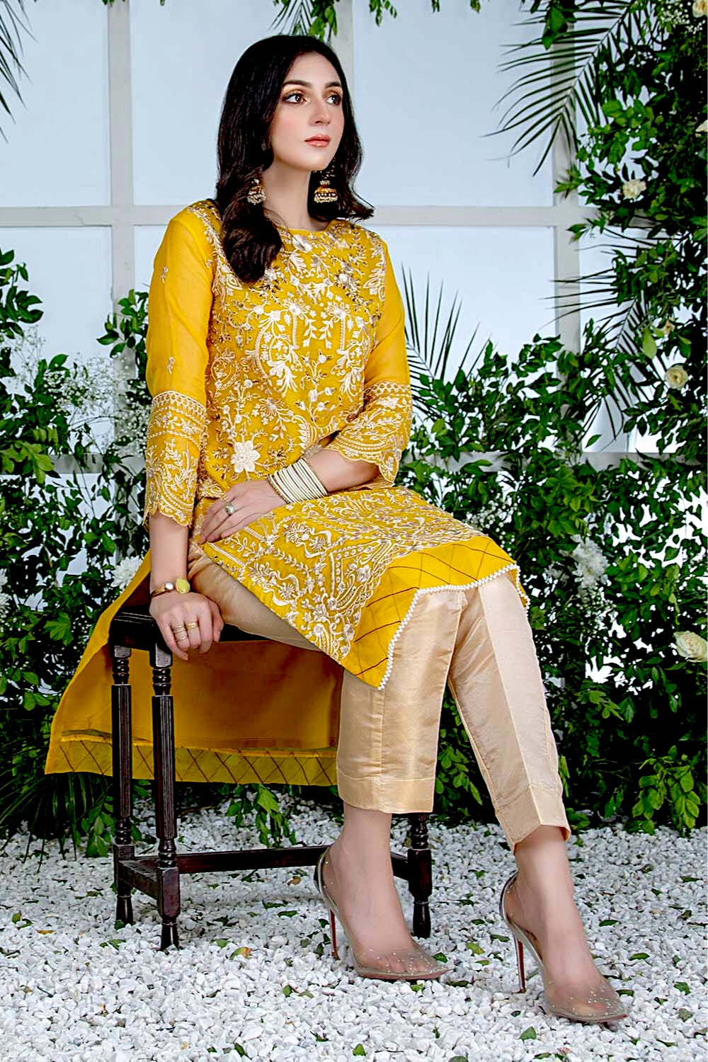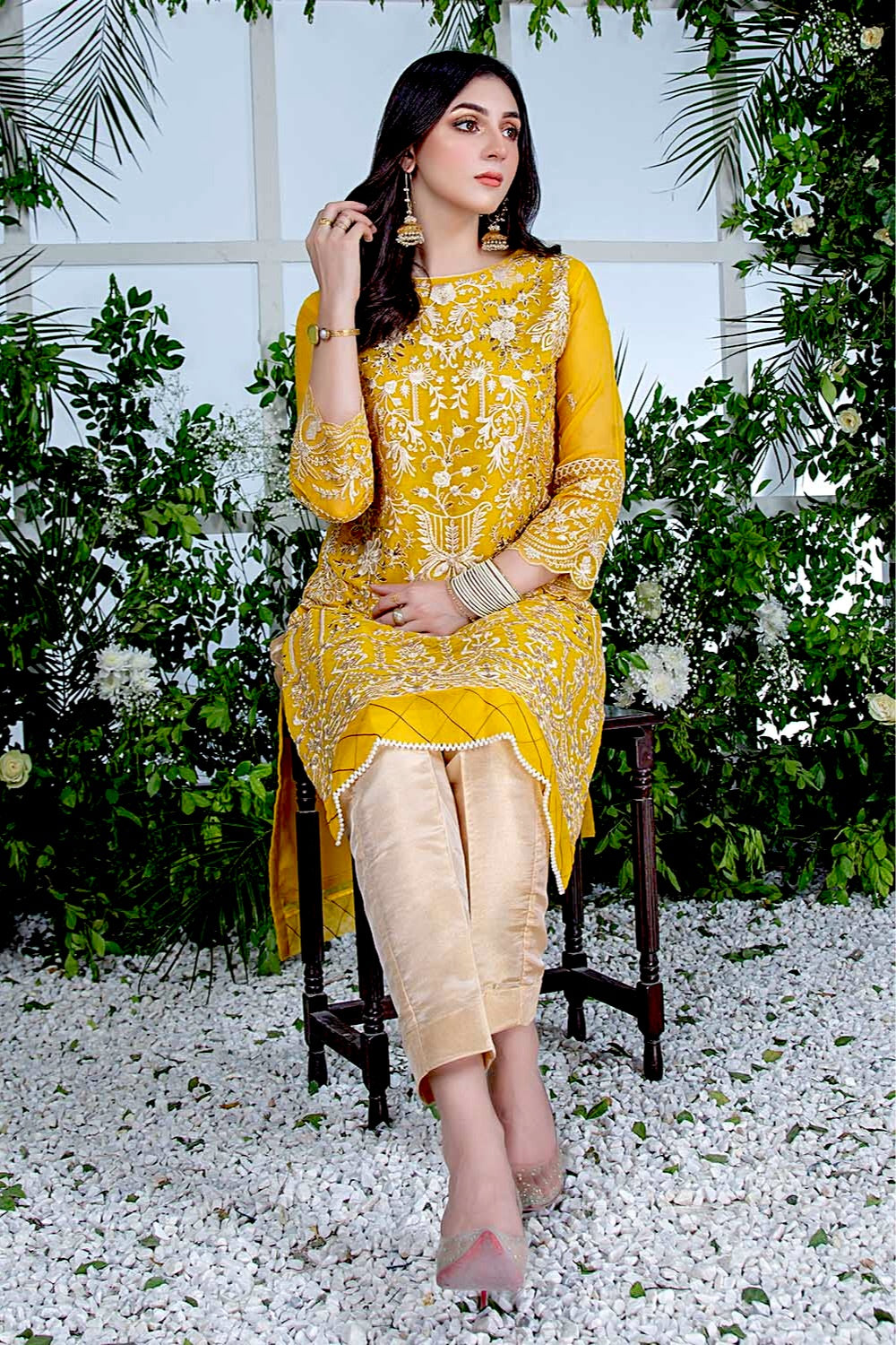 Fabric: Sequins Embroidered Organza Front: 1 Piece Sequins Embroidered Organza Sleeves: 0.62yards Dyed Organza Back: 1yard Shirt Length-: 40”+ Inner Fabric Included |