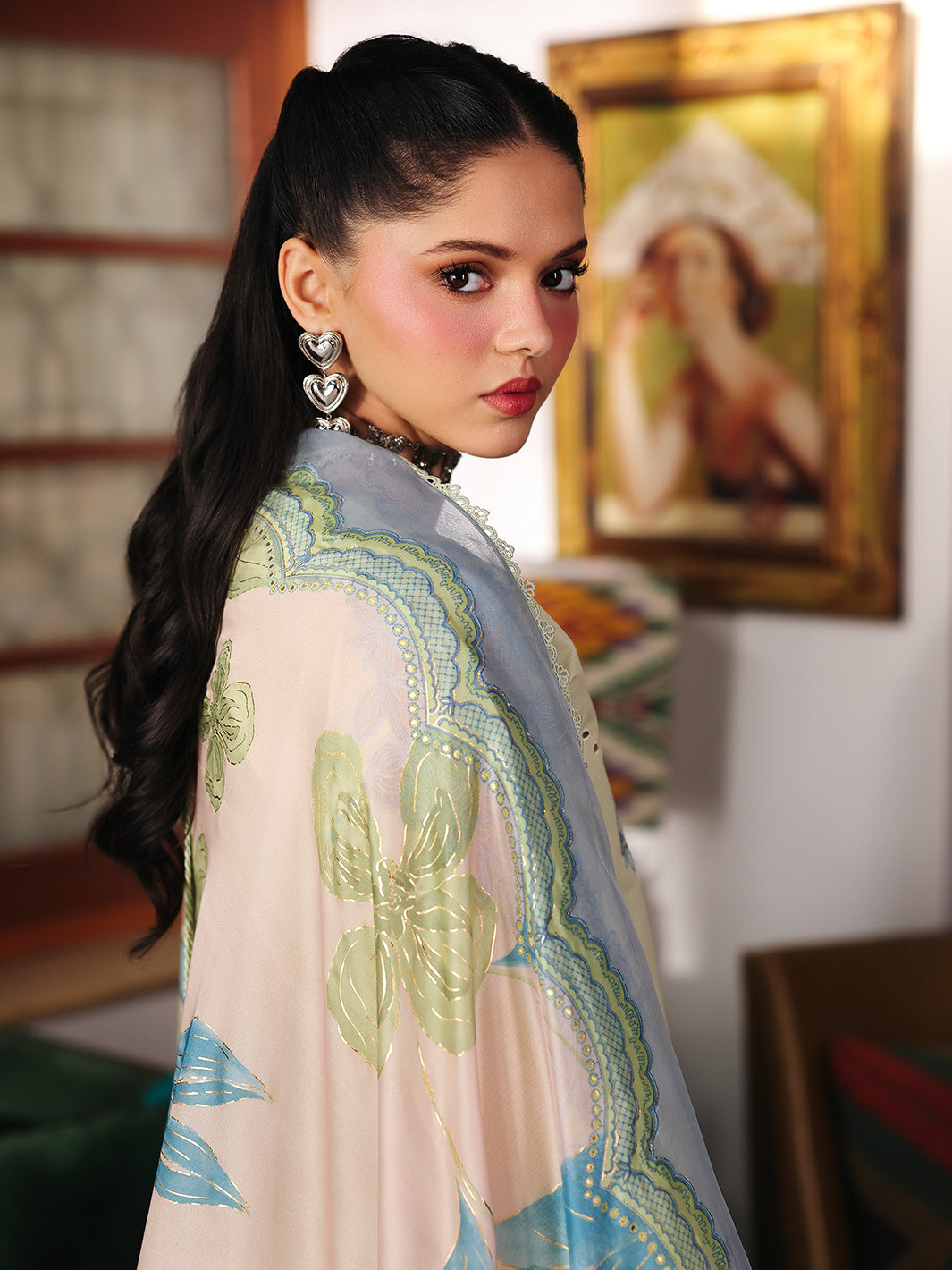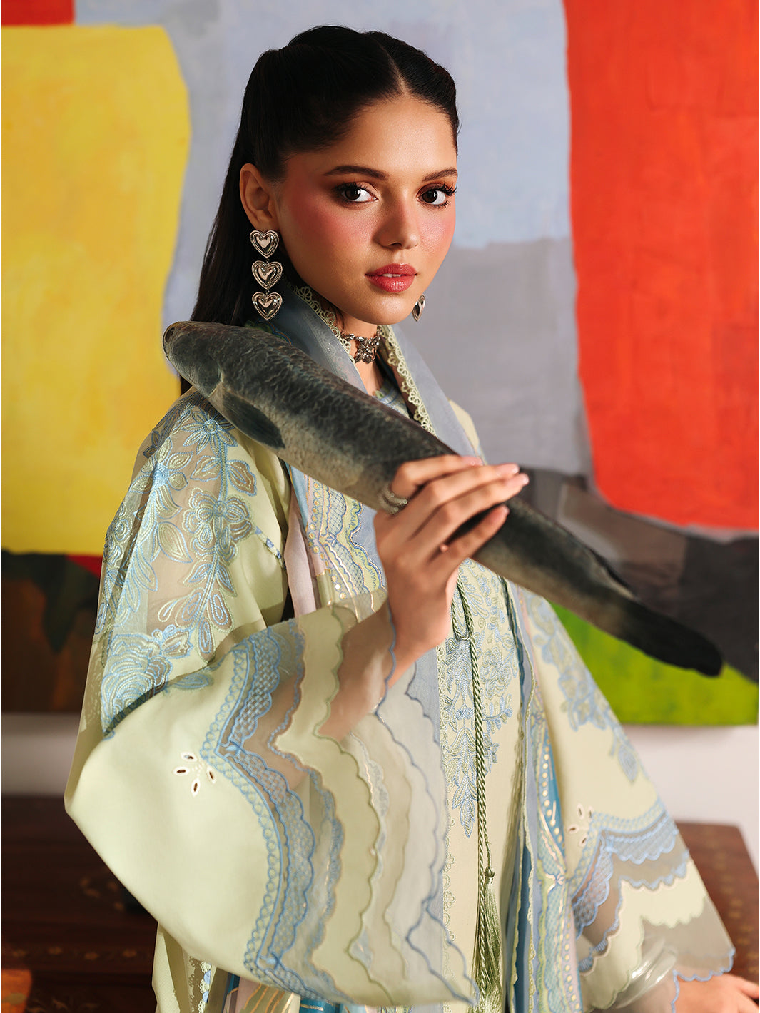 Summary: Exude elegance in this cream-colored Pakistani suit by Bin Ilyas from their Lumina Lawn collection. The kameez, tailored from premium lawn fabric, is perfect for summer festivities. It showcases exquisite borer embroidery across the front and sleeves, enhanced by a delicate organza embroidered neckline. The breathable lawn fabric makes this ethnic wear ideal for the Spring/Summer season, ensuring comfort and style. This sophisticated Pakistani lawn dress is a versatile choice for Eid celebrations, parties, or semi-formal gatherings, offering a blend of traditional grace. A perfect festive outfit to elevate your wardrobe.