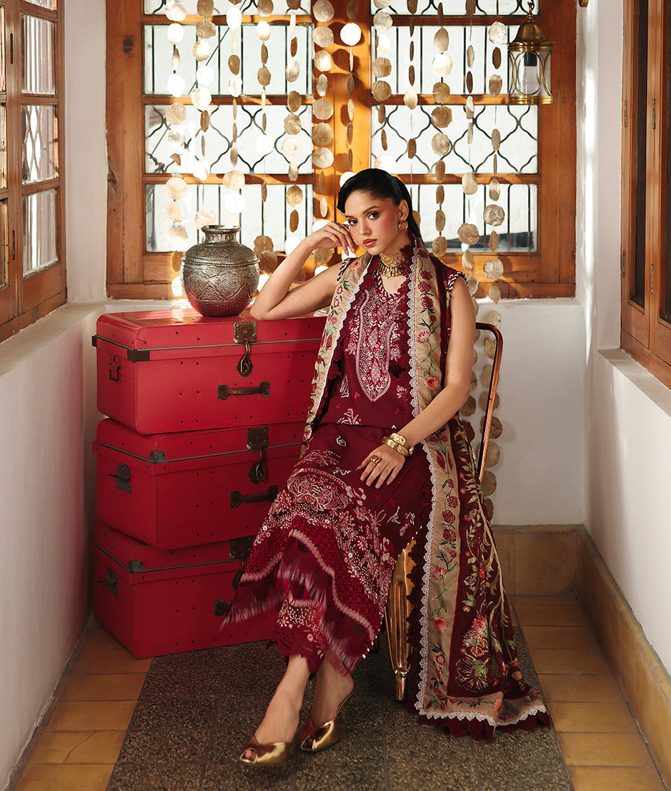 Summary: Embrace sophistication with the Bin Ilyas Lumina Lawn L76-A, a stunning maroon Pakistani suit. Crafted from premium lawn, this summer outfit is both breathable and elegant. The kameez features exquisite borer embroidery on the front and sleeves, enhanced by delicate organza lace and a daman motif. The rich maroon hue makes this ethnic wear a perfect choice for formal gatherings and festive celebrations. This unstitched ensemble combines traditional artistry with modern grace, making it an ideal choice for Eid, parties, or as a distinguished wedding guest outfit.