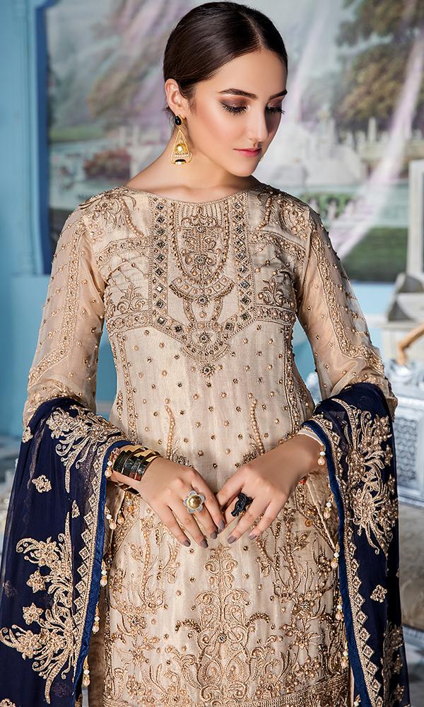 Fabric: Embroidered Hand Made Masoori Front And Sleeves Embroidered Back Embroidered Hand Made Chiffon Dupatta Embroidered Hand Made Front Daman Patch Embroidered Back Patch Embroidered hand Made Sleeves Patch Embroidered Trouser Patch Grip Trouser & Accessories |