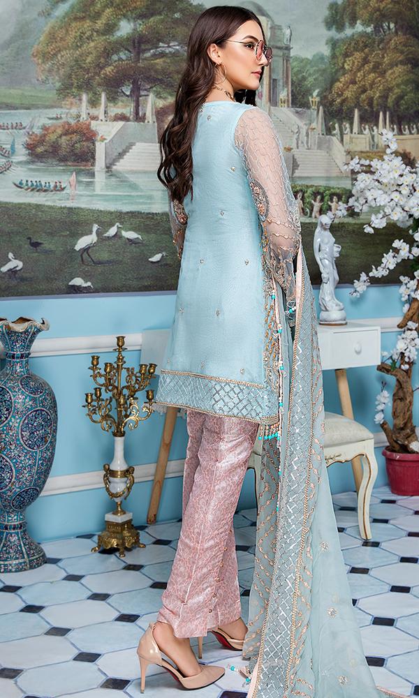 Fabric: Embroidered Hand Made Net Front And Sleeves Embroidered Back Embroidered Chiffon Dupatta Embroidered Front Patti Jamawar Trouser & Accessories |