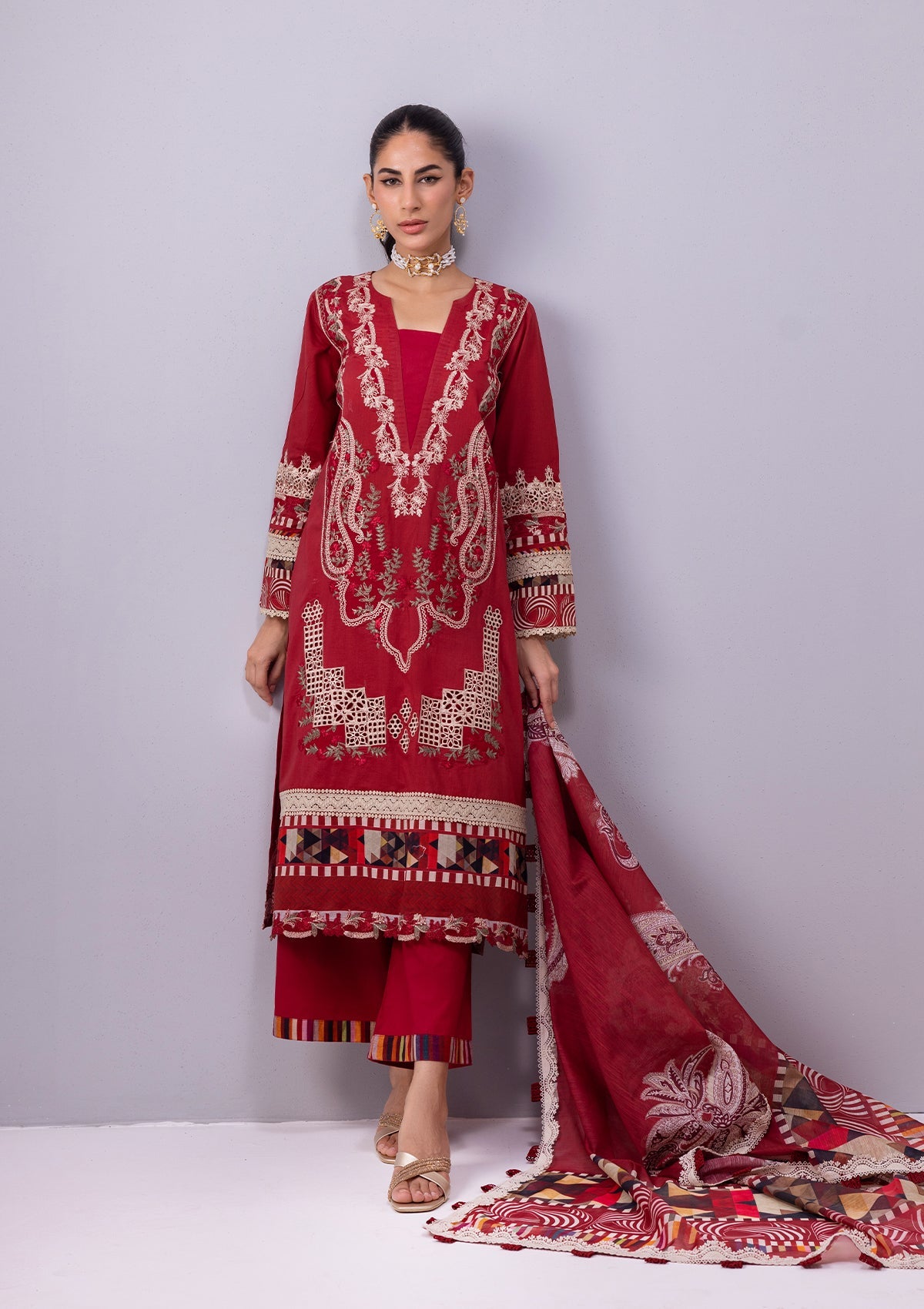 Fabric:Description:Fabric: Lawn Shirt with Chiffon Dupatta Type: Unstitched Color: