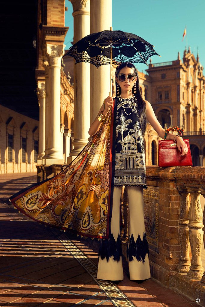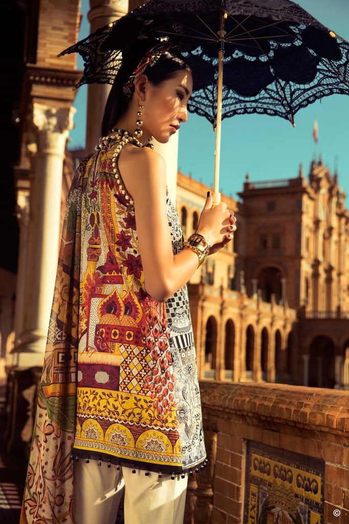 Fabric: Printed Shirt Front (Pima Cotton) Printed Shirt Back (Pima Cotton) Printed Sleeves (Pima Cotton) Plain Trouser (Pima Cotton) Digital Printed Net Dupatta Imported Trim |