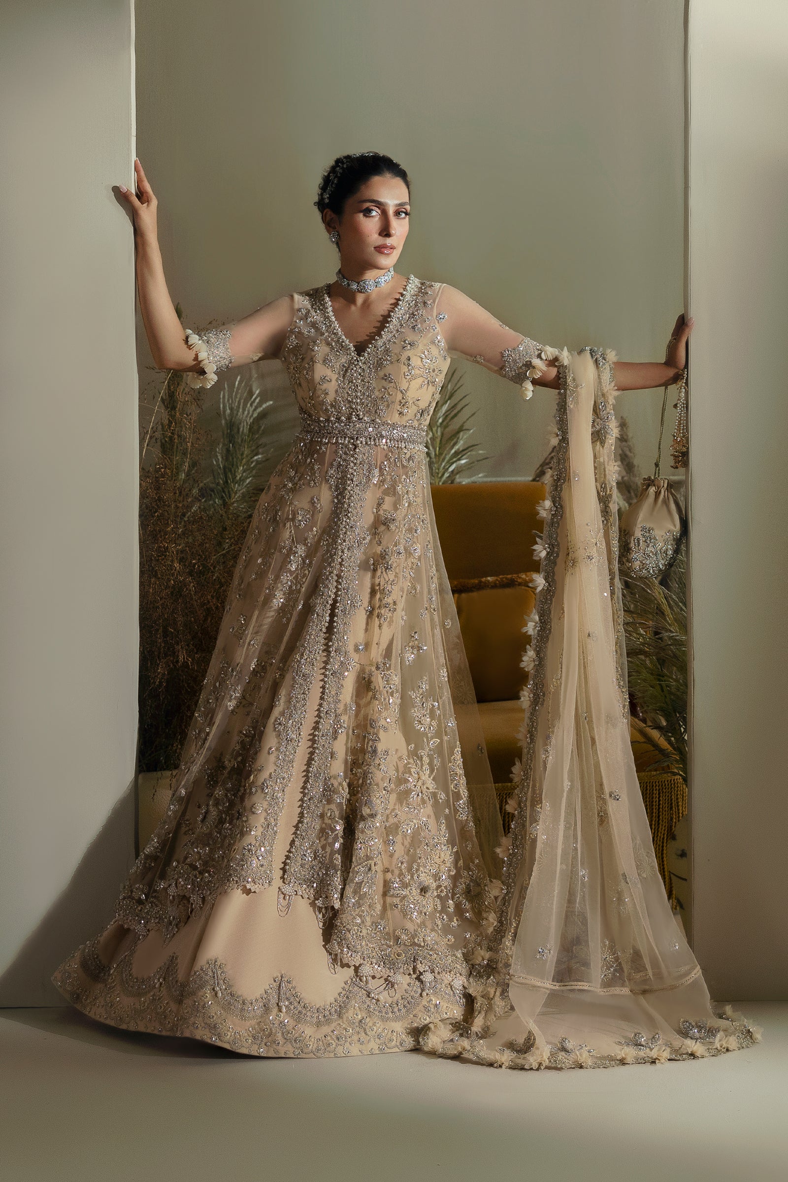 Fabric: Élan's 'Pearl of Tranquility' – an exquisite masterpiece that unfolds like a serene dream. The pearlescent white hues evoke the purity of moonlight on still waters, casting an enchanting glow. Hand-embellished with delicate seed pearls, radiant Swarovski crystals, and lustrous tinsel, each detail harmonizes to create an aura of luxury. The silhouette cascades gracefully, mirroring the gentle rhythm of serene tides, while an exquisite floral filigree stole drapes elegantly over the shoulders, reminiscent of ethereal petals floating on a calm sea. ‘Pearl of Tranquility’ beautifully marries romance and refinement, capturing the essence of haute couture from Élan's wedding festive collection. Transforming the wearer into a vision of elegance, this enchanting ensemble elevates every celebration into a luxurious experience—an extraordinary journey through a realm where dreams take flight and love reigns supreme. Embellished & Embroidered Front Body Left & Right (Poly Net) 1 Pair Embroidered Back Body Left & Right (Poly Net) 1 Piece Embellished & Embroidered Front Left Panel 1 (Poly Net) 1 Piece Embellished & Embroidered Front Left Panel 2 (Poly Net) 1 Piece Embellished & Embroidered Front Left Panel 3 (Poly Net) 1 Piece Embellished & Embroidered Front Left Panel 4 (Poly Net) 1 Piece Embellished & Embroidered Front Right Panel 1 (Poly Net) 1 Piece Embellished & Embroidered Front Right Panel 2 (Poly Net) 1 Piece Embellished & Embroidered Front Right Panel 3 (Poly Net) 1 Piece Embellished & Embroidered Front Right Panel 4 (Poly Net) 1 Piece Embroidered Back (Poly Net) 2.3 Meters Embellished & Embroidered Sleeves (Poly Net) 1 Pair Embroidered Dupatta Running (Poly Net) 2.3 Meters Embroidered Dupatta Left Pallu (Poly Net) 1 Piece Embroidered Dupatta Right Pallu (Poly Net) 1 Piece Embroidered Trouser Border (Poly Organza) 1.3 Meters Dyed Slip (Raw Silk) 1.5 Meters Dyed Trouser (Raw Silk) 2 Meters Fabric details: Poly Net | Raw Silk This is an unstitched article Disclaimer: Please note that the color of the item you receive may vary slightly from that shown in the product shoot. This can happen due to the variation in light at the time of product and fashion shoot. This is a concept stitched article and may not contain certain embellishments. |