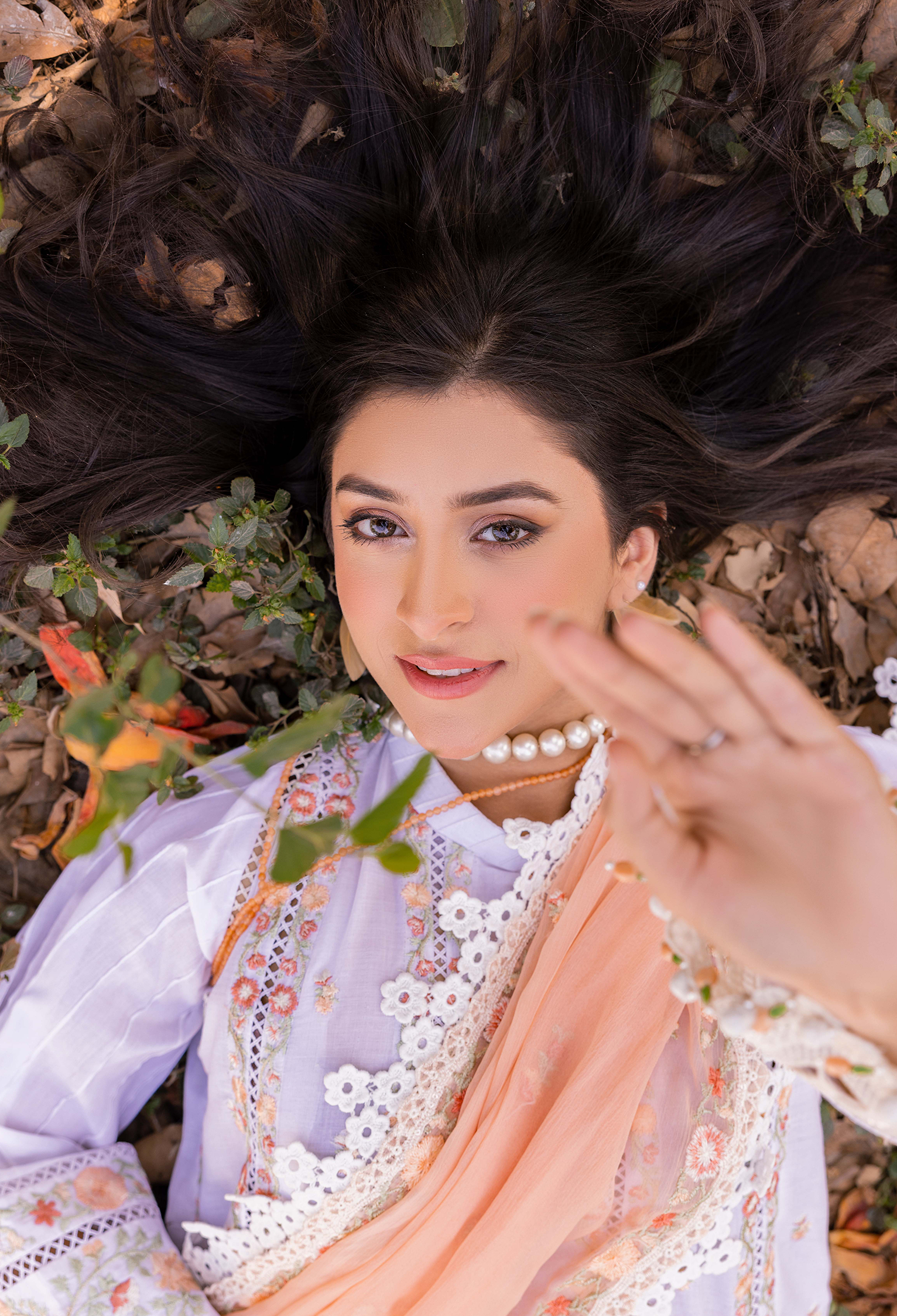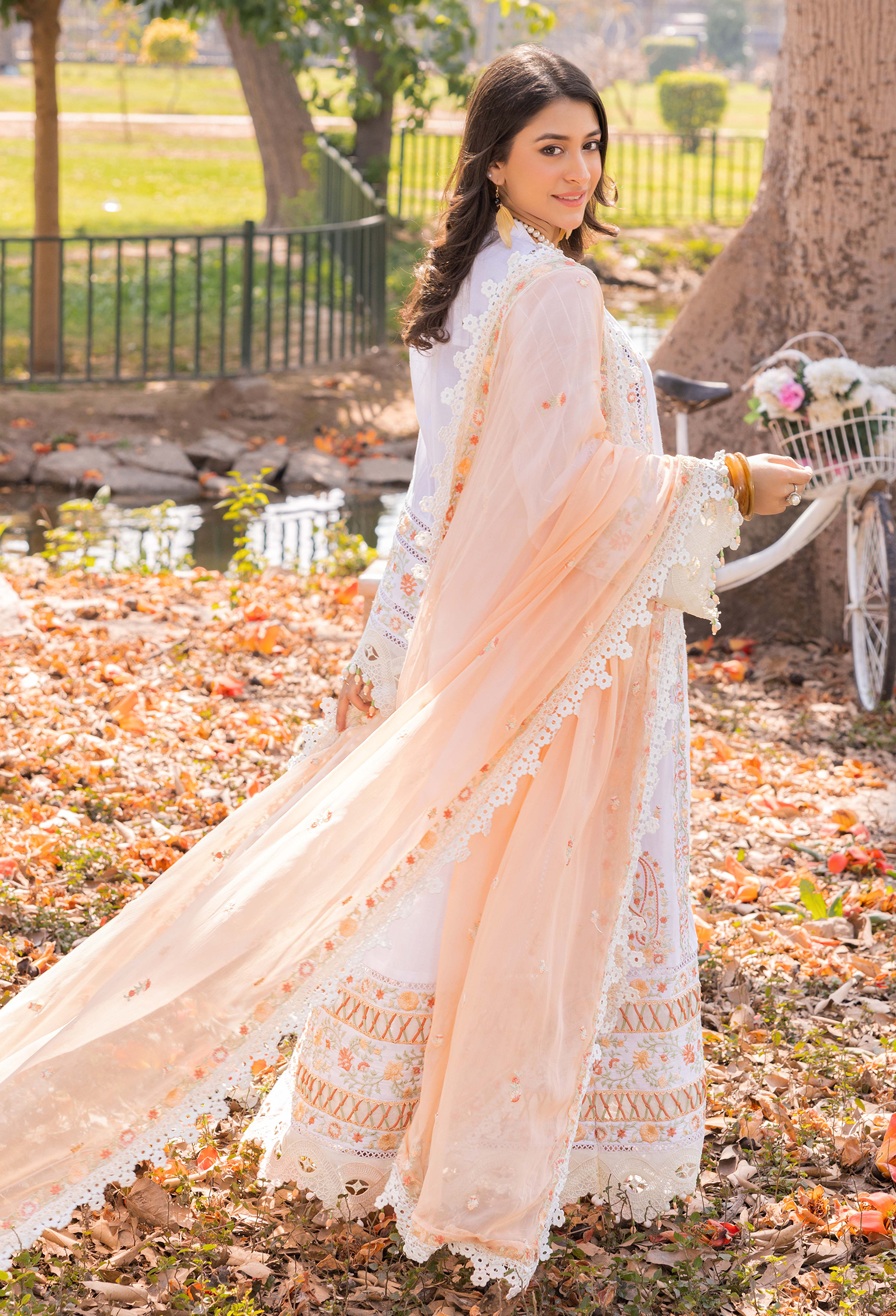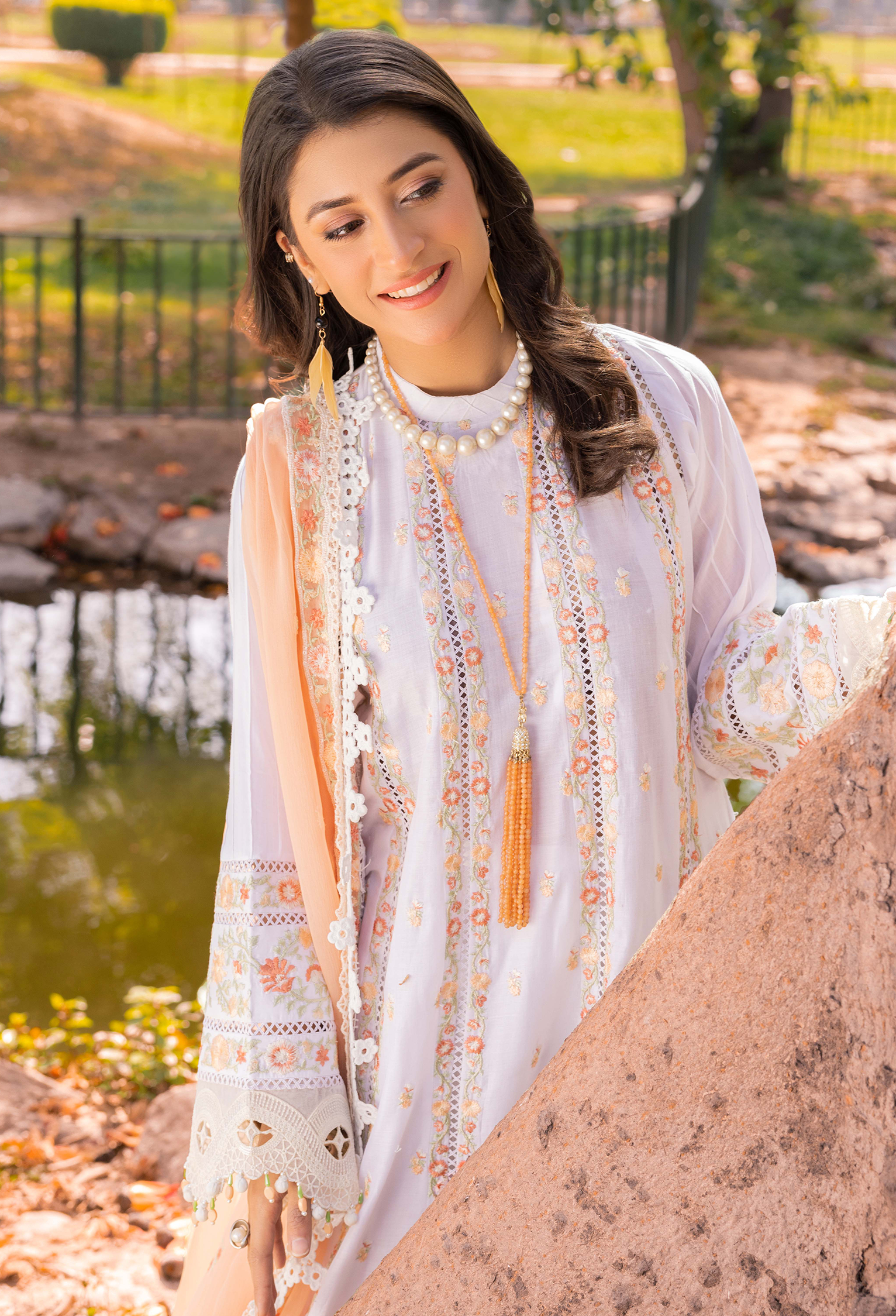 Fabric: Embroidered Lawn Front Kali 6 PC Dyed Plain Lawn For Front And Back Corner Kali 0.6 MTR Dyed Plain Lawn Back 0.99 MTR Embroidered Lawn Sleeves 0.66 MTR Dyed Cotton Trouser 2.5 Yard Embroidered Chiffon Dupatta 2.5 Yard Embroidered Border For Front 1.32 MTR Embroidered Border For Back 1.32 MTR Embroidered Border For Sleeves 1 MTR Cross Lace For Finishing 14 MTR |