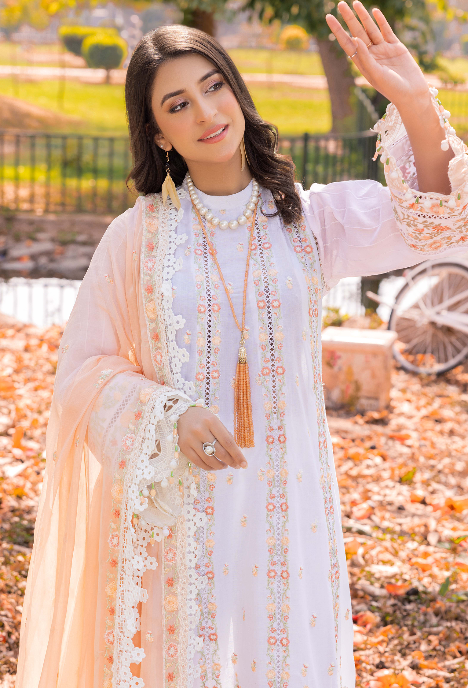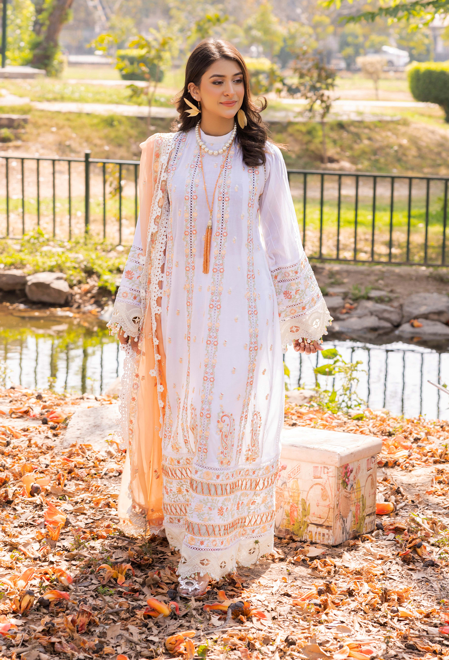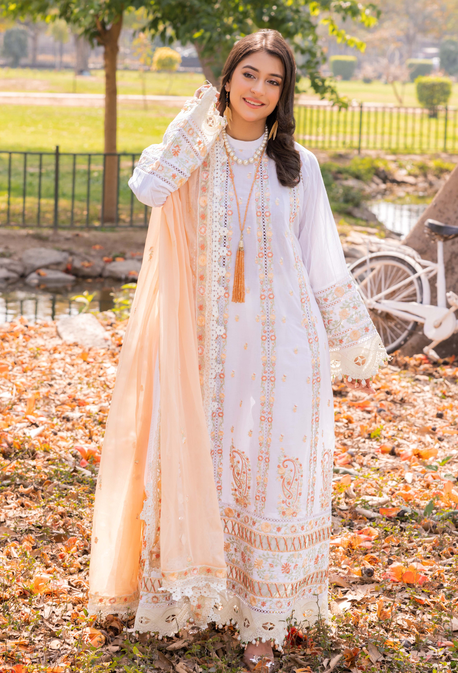 Fabric: Embroidered Lawn Front Kali 6 PC Dyed Plain Lawn For Front And Back Corner Kali 0.6 MTR Dyed Plain Lawn Back 0.99 MTR Embroidered Lawn Sleeves 0.66 MTR Dyed Cotton Trouser 2.5 Yard Embroidered Chiffon Dupatta 2.5 Yard Embroidered Border For Front 1.32 MTR Embroidered Border For Back 1.32 MTR Embroidered Border For Sleeves 1 MTR Cross Lace For Finishing 14 MTR |