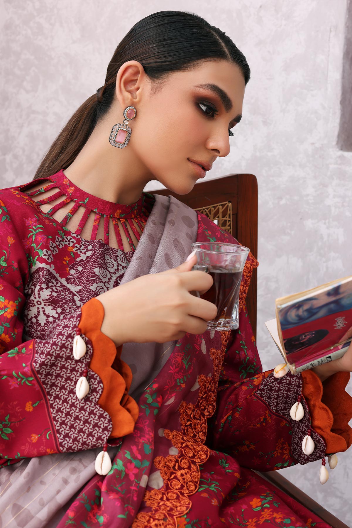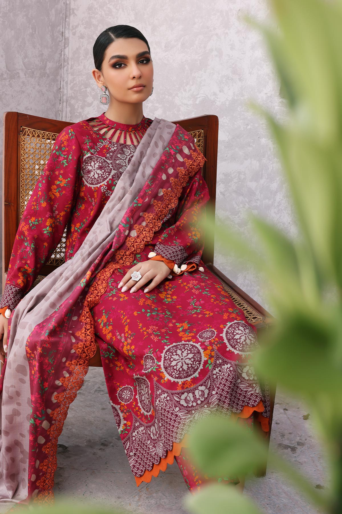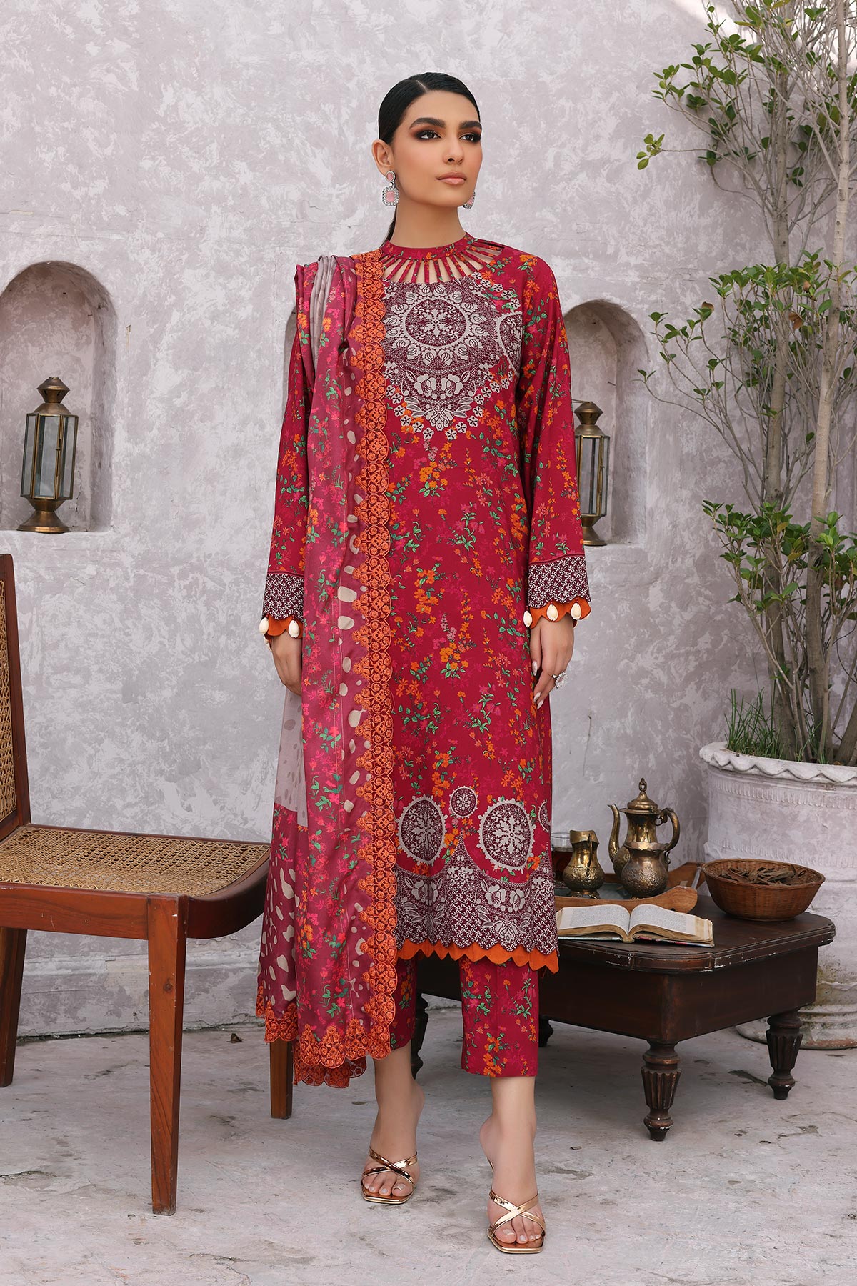 Fabric: SHIRT: Printed Staple Fron t+ Back + Sleeves 3.4MTR TROUSER: Printed Staple Trouser 2.50MTR SHAWL: Embroidered Printed Wool Shawl 2.50MTR |