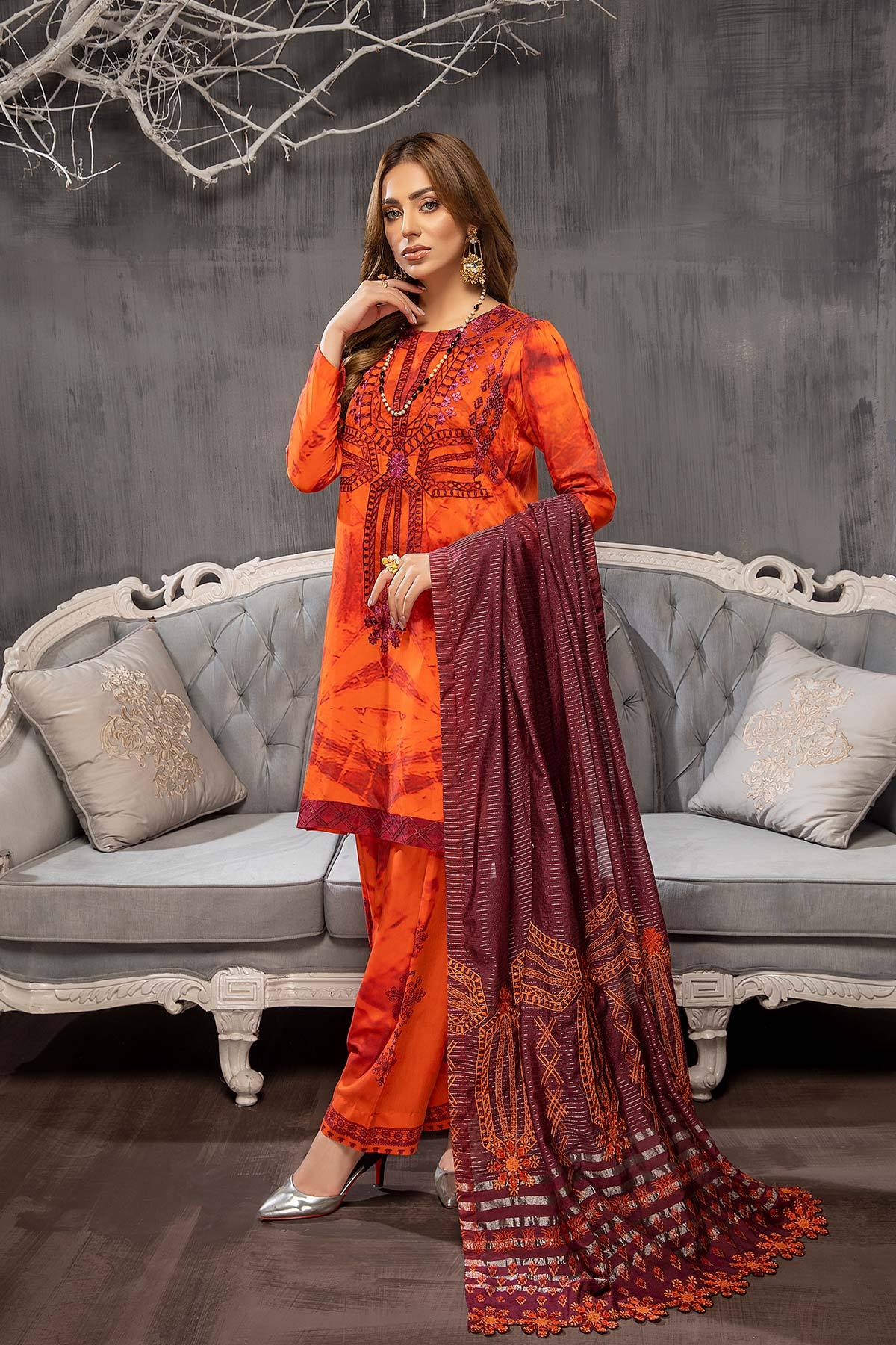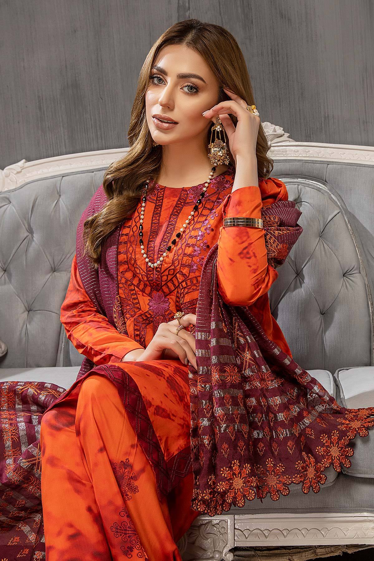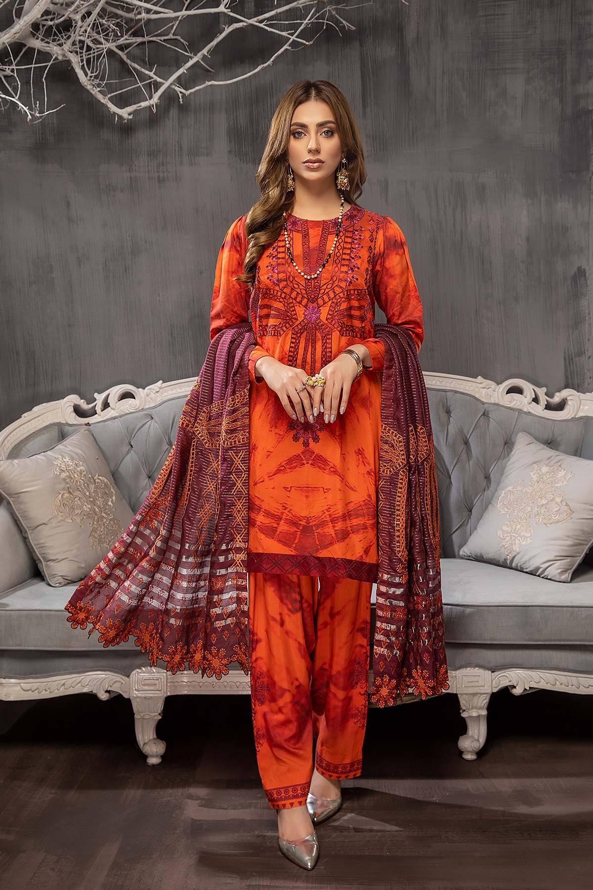 Fabric: Shirt Printed Viscose Silk Front +Back +Sleeves 3.4M Embroidered Front Neckline 1Pcs Embroidered Front +Back Daman Patti 4M Trouser Printed Viscose Silk Trouser 2.5M Dupatta Embroidered Luxury Dupatta 2.5M |