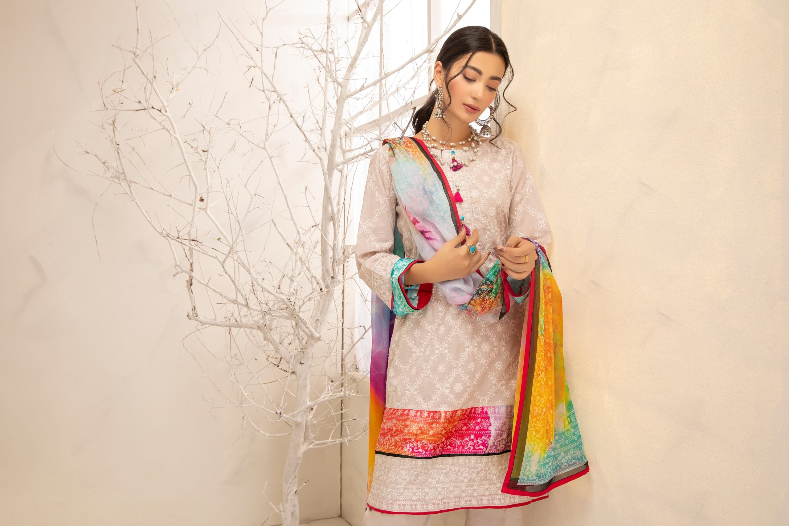 Fabric: Shirt 3 Mtr Emb ( Chikan Kari) Digital Silk Dupatta 2.5 Mtr Trouser 2.5 Mtr Sattin Patti 2 Yards |