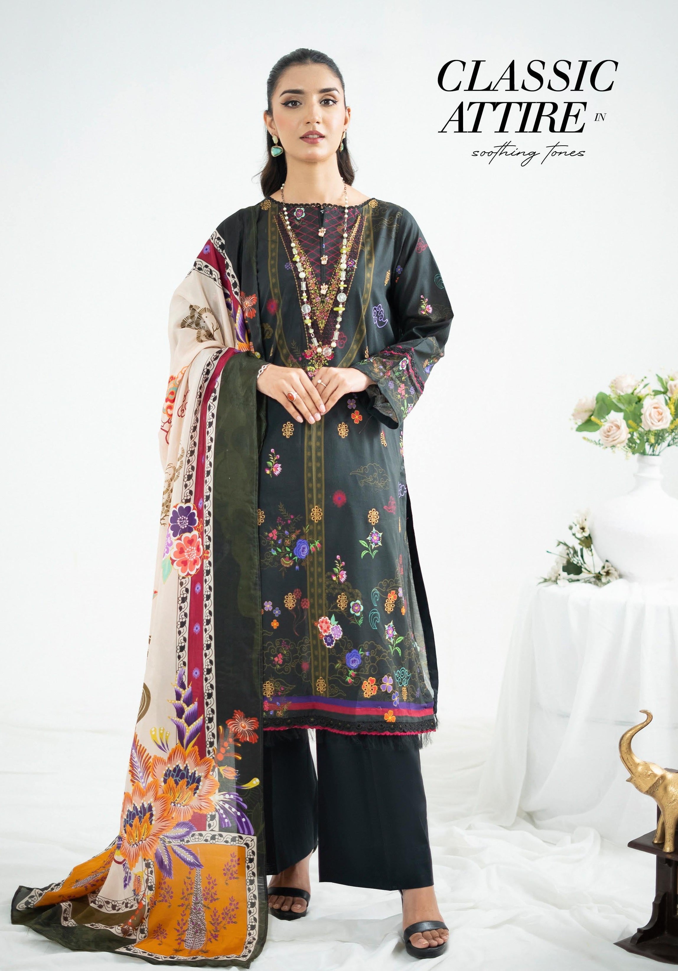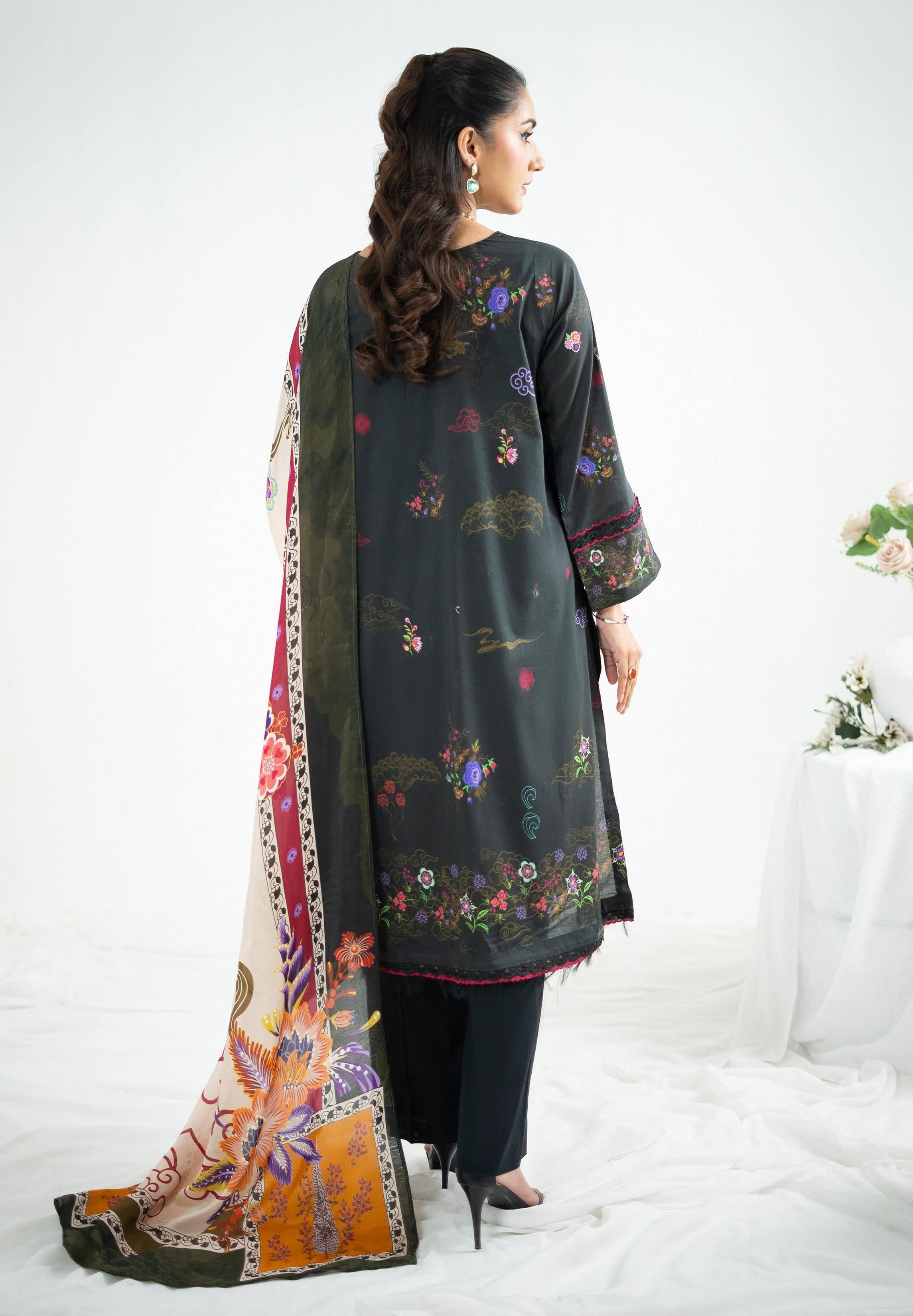 Digital Printed Lawn Shirt with Embroidered Neck & Boring Embroidered Front