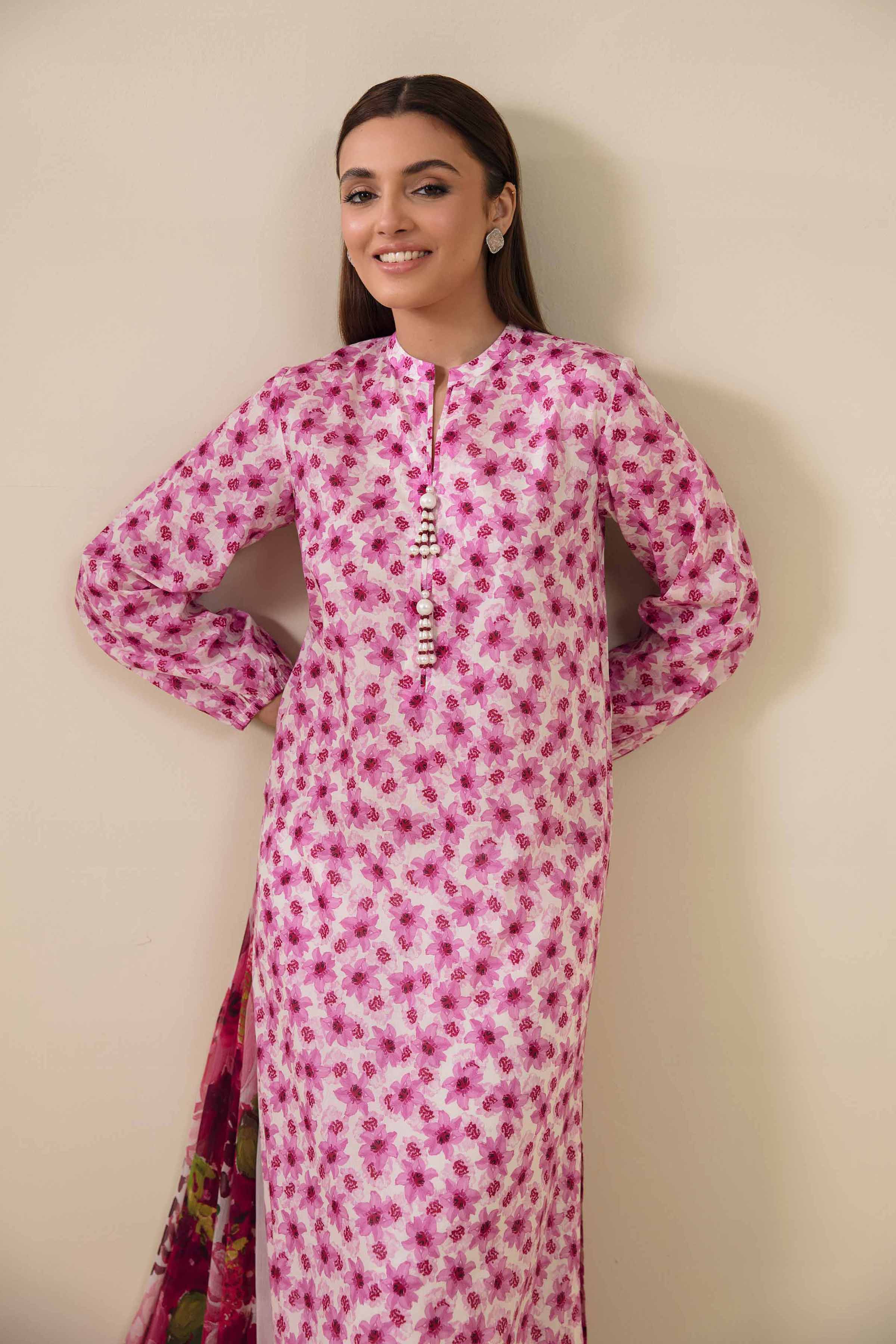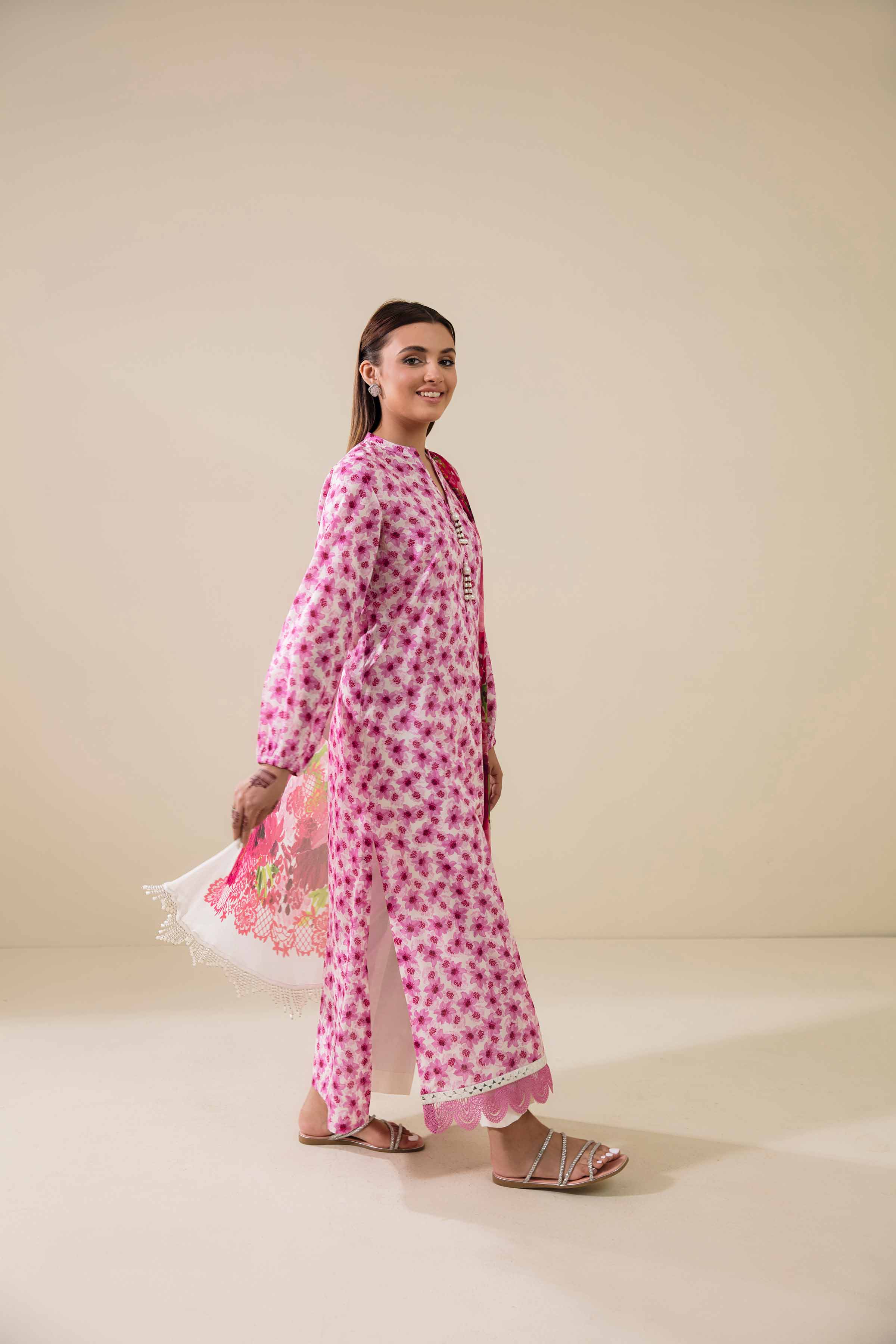 Fabric: Make your day memorable with this graceful printed two-piece from the latest unstitched summer collection. Product Detail: Flowers In Brush Stroke Printed Style Shirt with Dupatta SHIRT Printed Super Fine Lawn Shirt: 3 Meter Fabric: Lawn Color: Pink DUPATTA Digital Printed Crinkle Chiffon Dupatta: 2.5 Meter Fabric: Crinkle Chiffon Color: Pink Note: Product color may slightly vary due to photographic lighting sources or your device settings. |