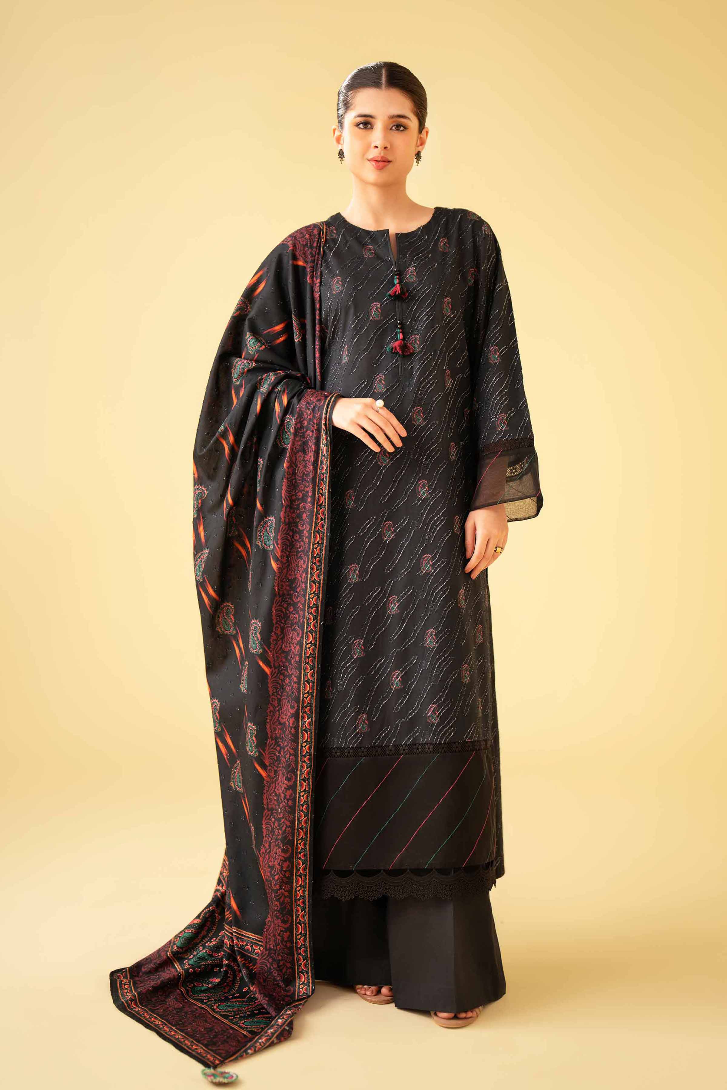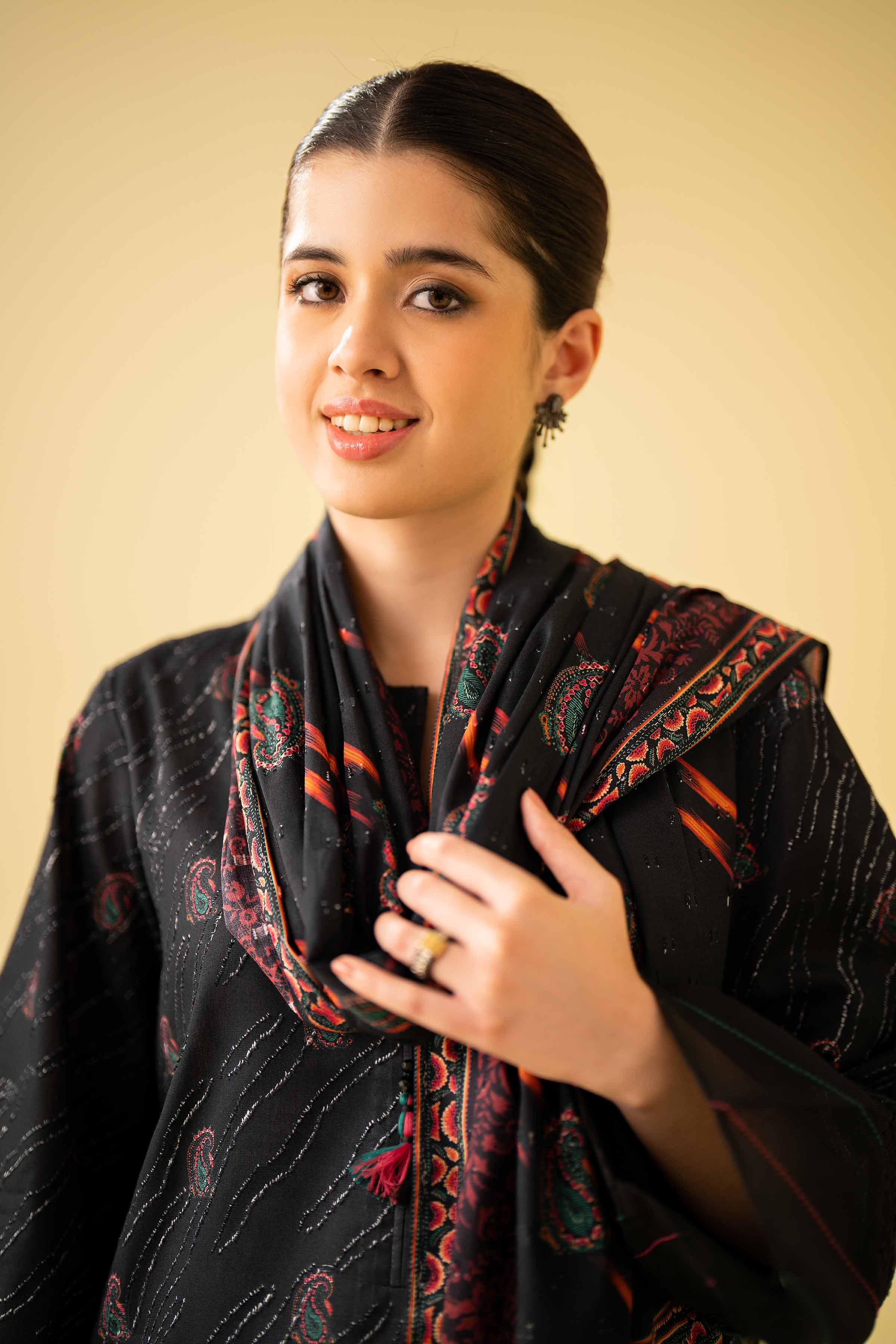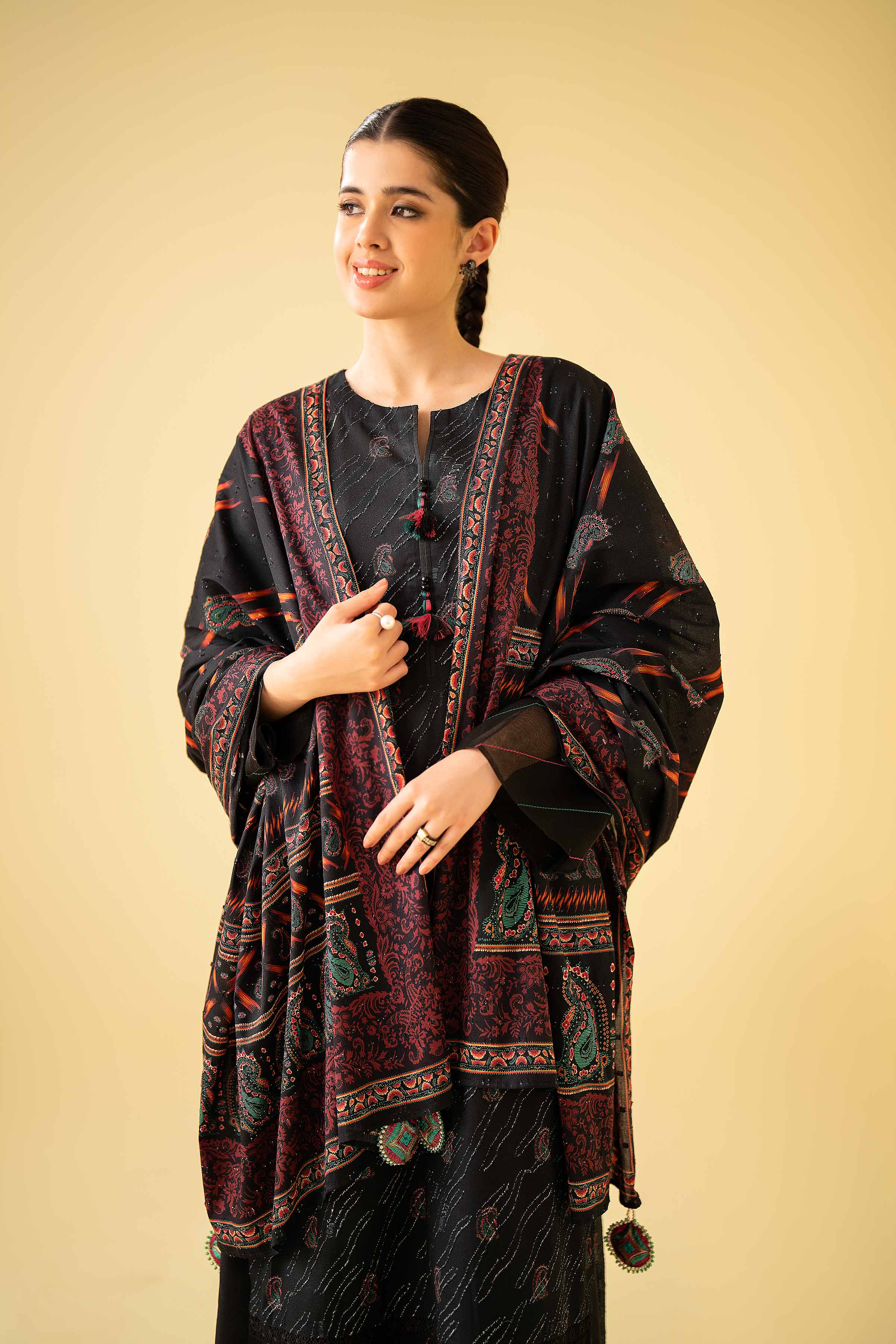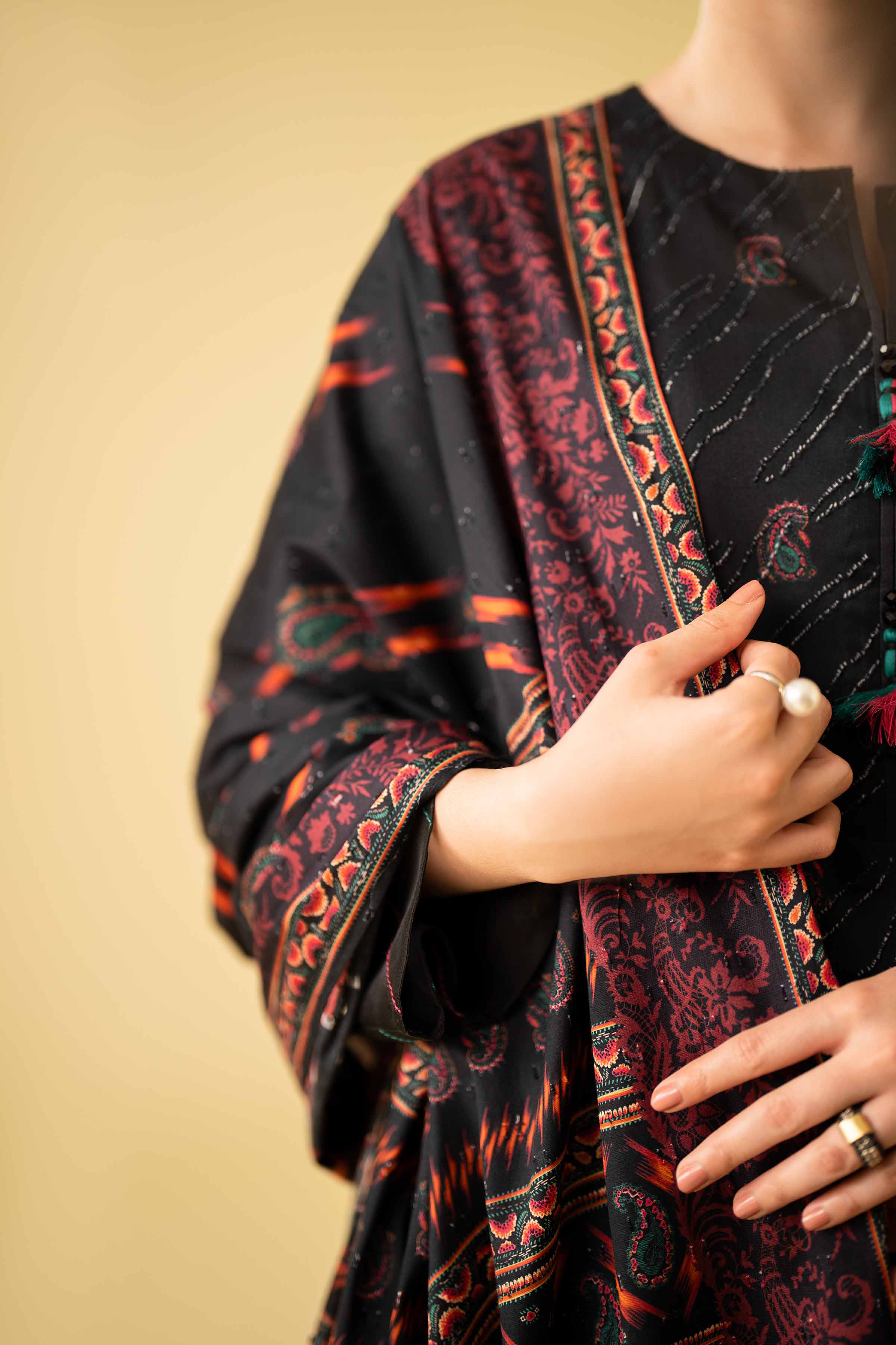 Fabric: Stay updated with the trends by wearing this digital printed three-piece from the latest unstitched summer collection. Product Detail: Ethnic Style Shirt with Dupatta and Trousers SHIRT Digital Printed Brochia Jacquard Shirt: 3 Meter Fabric: Jacquard Color: Black DUPATTA Digital Printed Brochia Jacquard Dupatta: 2.5 Meter Fabric: Jacquard Color: Black TROUSERS Dyed Cambric Trousers: 2.5 Meter Fabric: Cambric Color: Black Note: Product color may slightly vary due to photographic lighting sources or your device settings. |