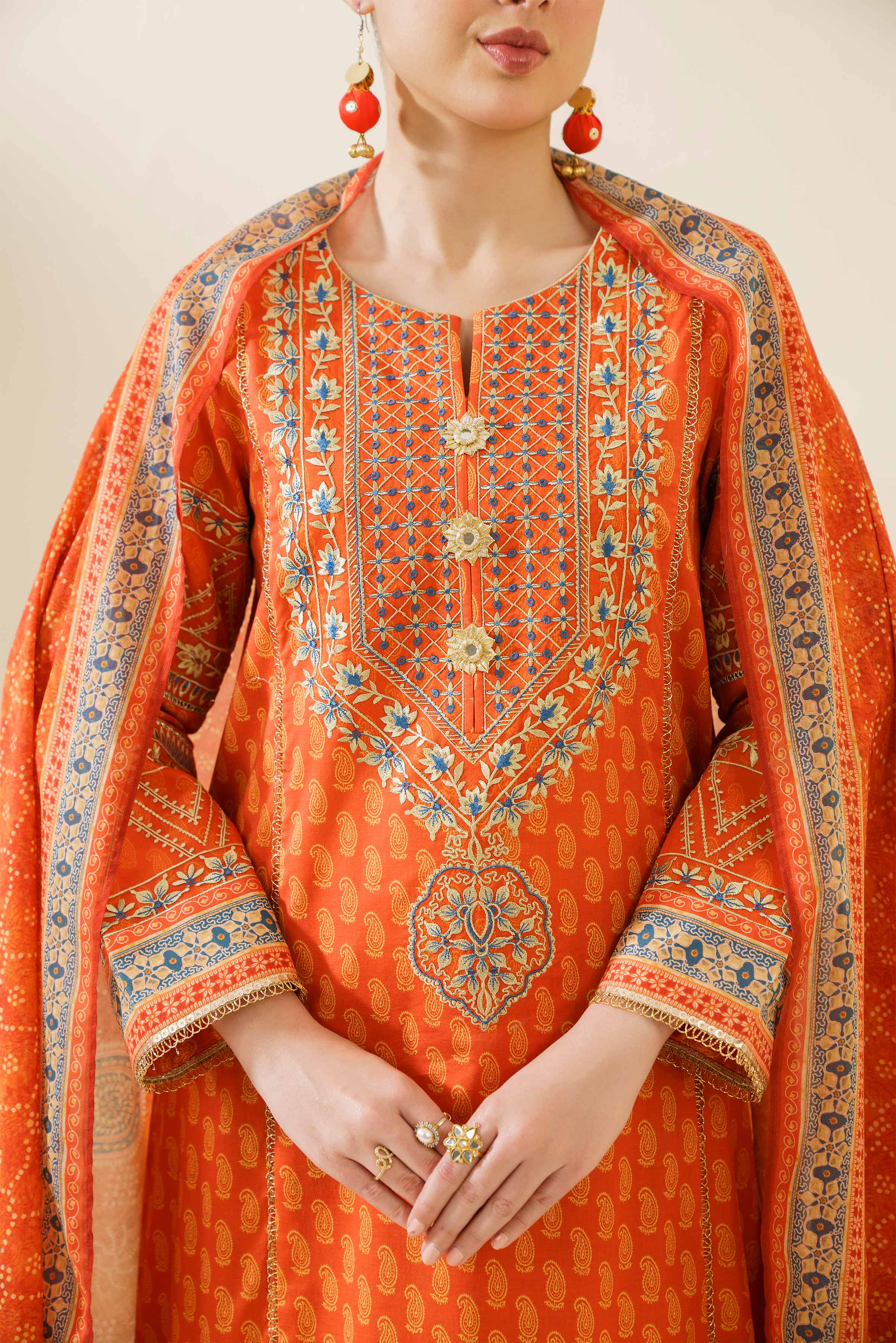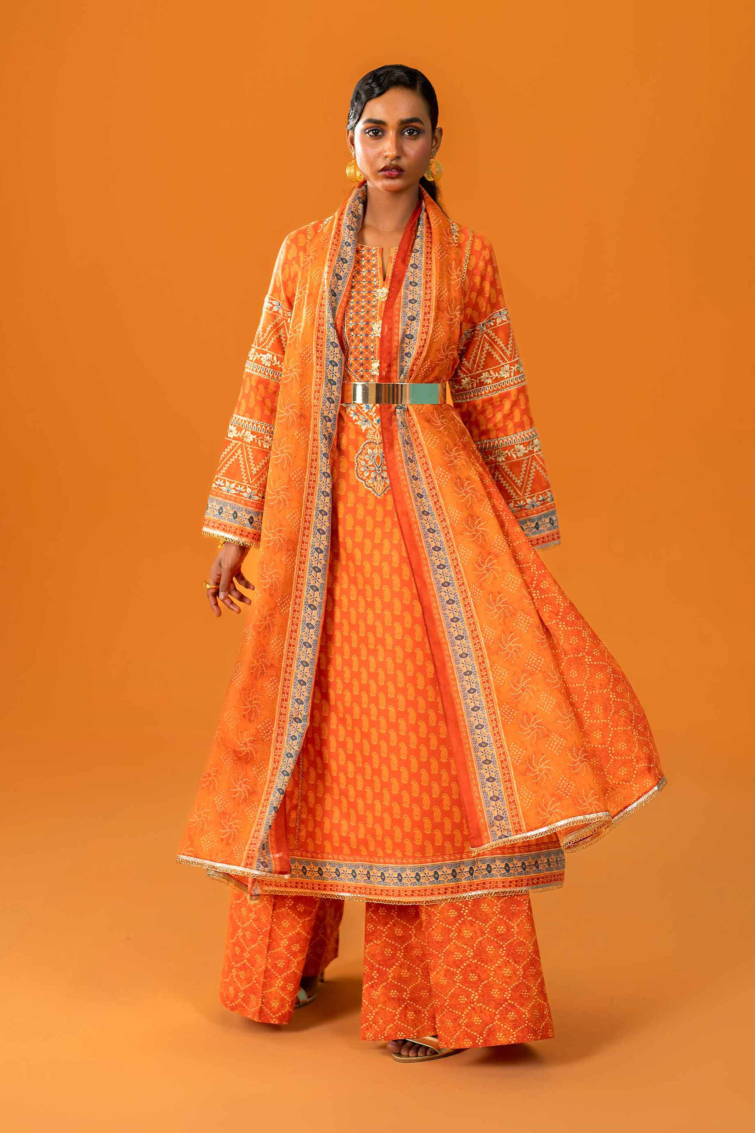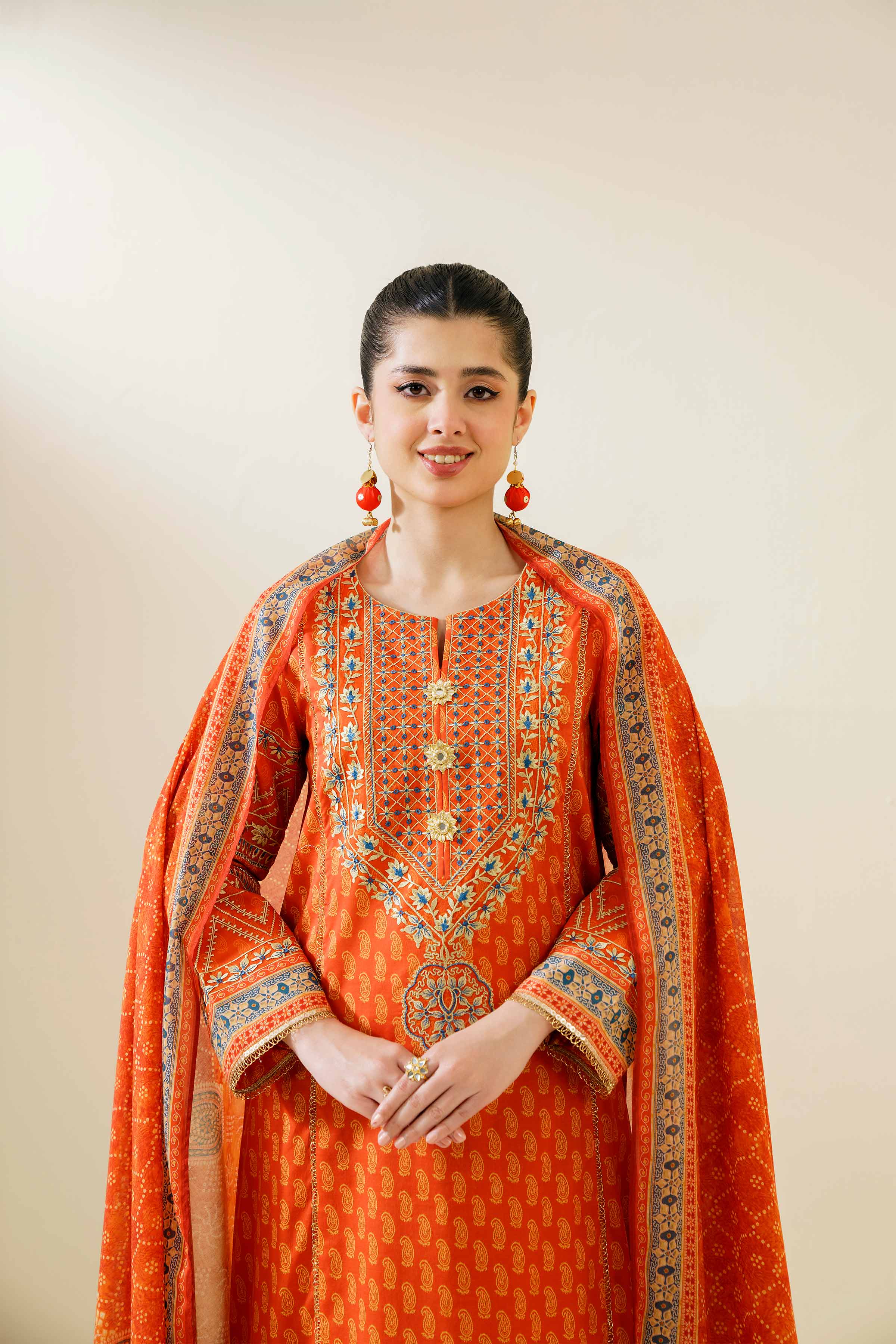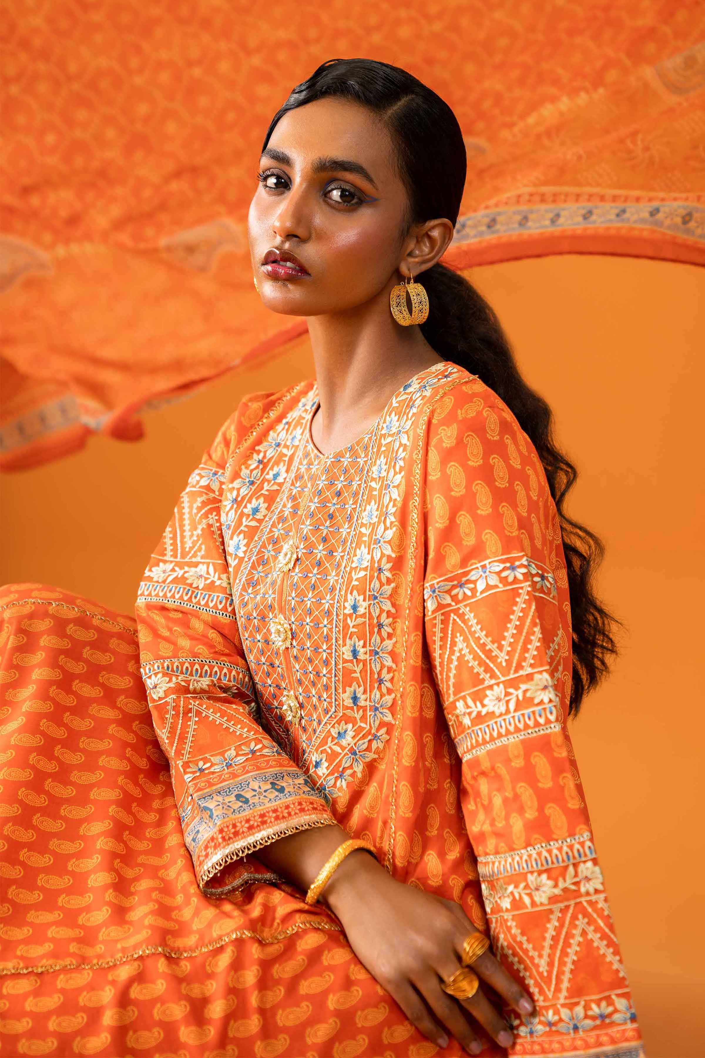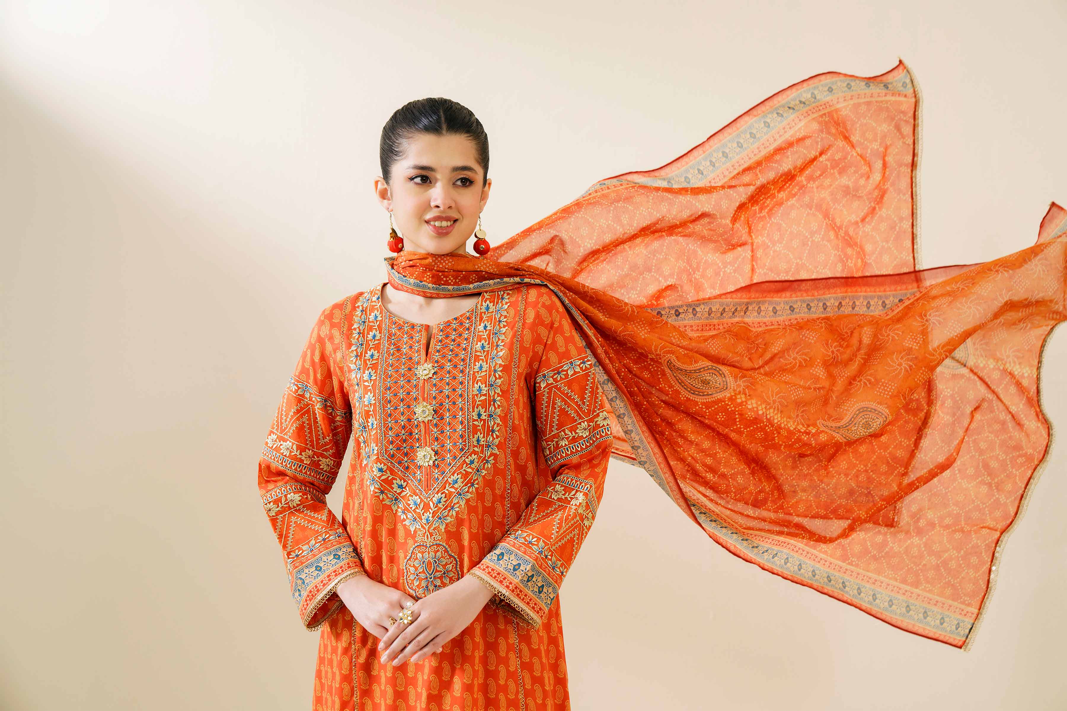 Fabric: Catch elegance beauty with printed embroidered three-piece from the latest unstitched summer collection. Product Detail: Chunri Style Shirt with Dupatta and Trousers SHIRT Printed Super Fine Lawn Shirt: 3 Meter Embroidered Neckline + Border Fabric: Lawn Color: Orange DUPATTA Printed Voile Dupatta: 2.5 Meter Fabric: Voile Color: Orange TROUSERS Printed Cambric Trousers: 2.5 Meter Fabric: Cambric Color: Orange Note: Product color may slightly vary due to photographic lighting sources or your device settings. |