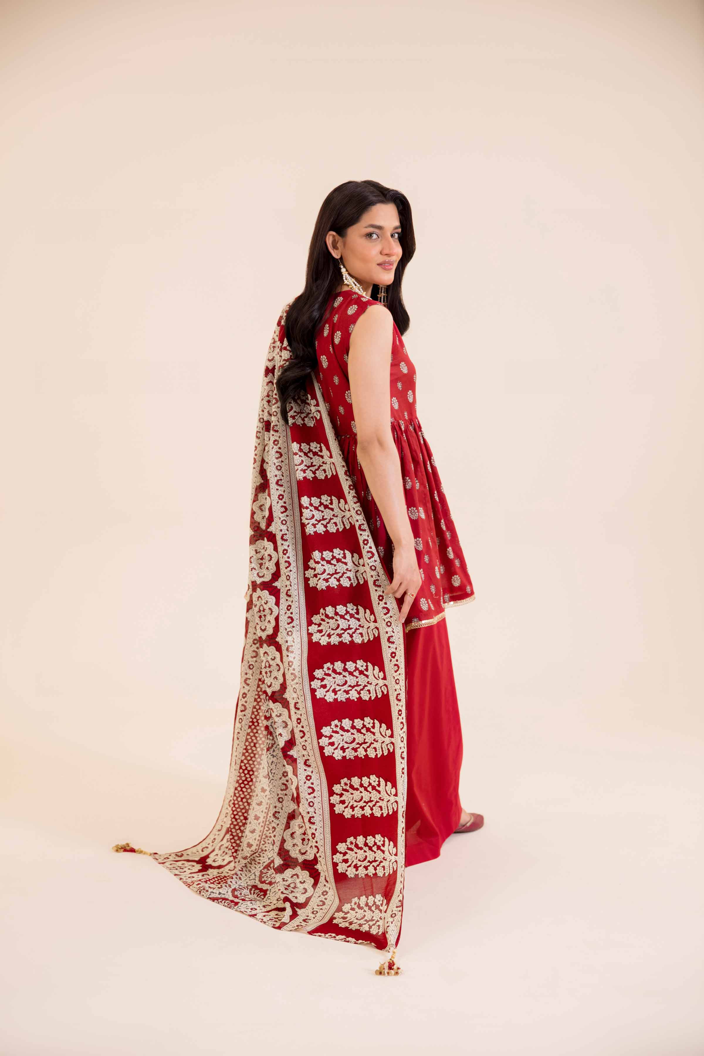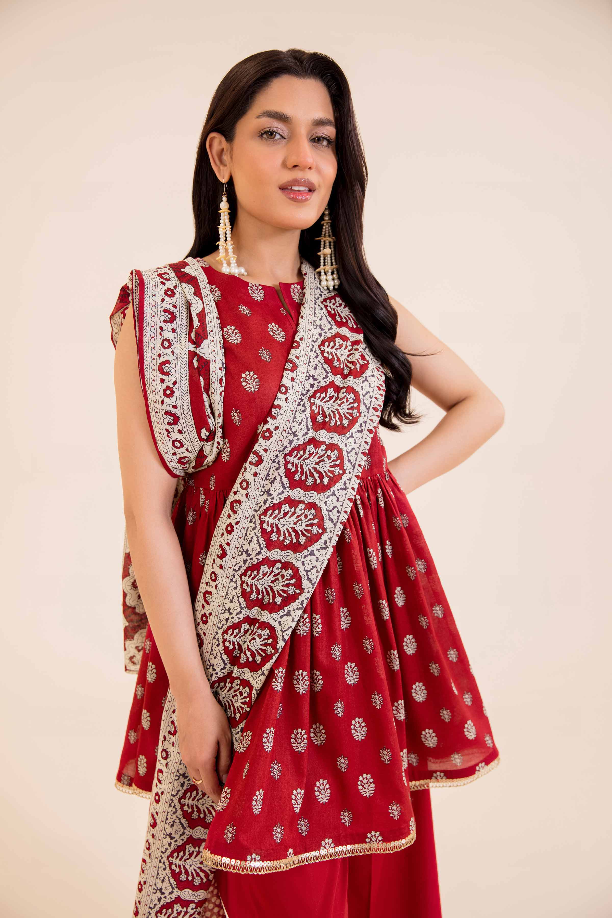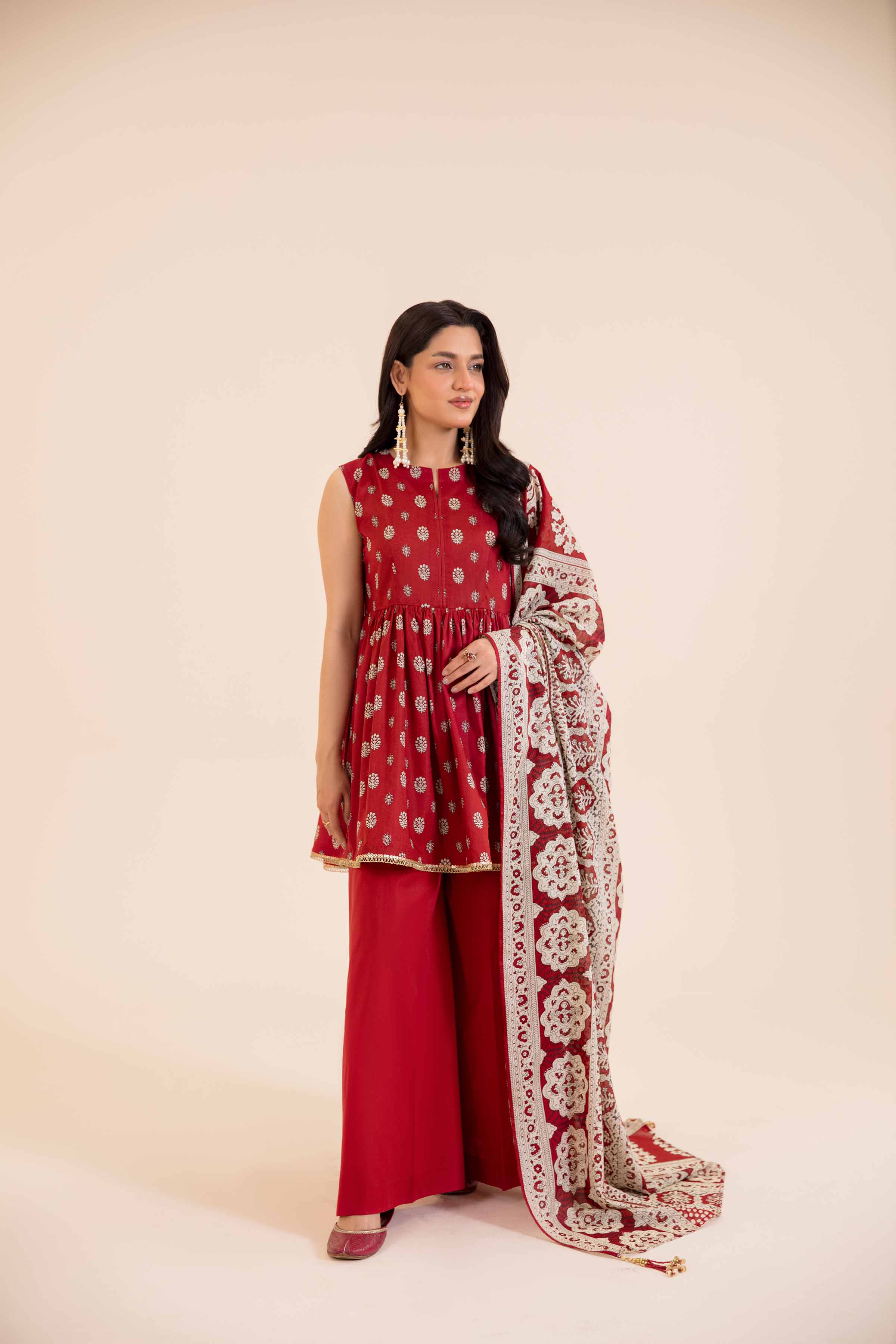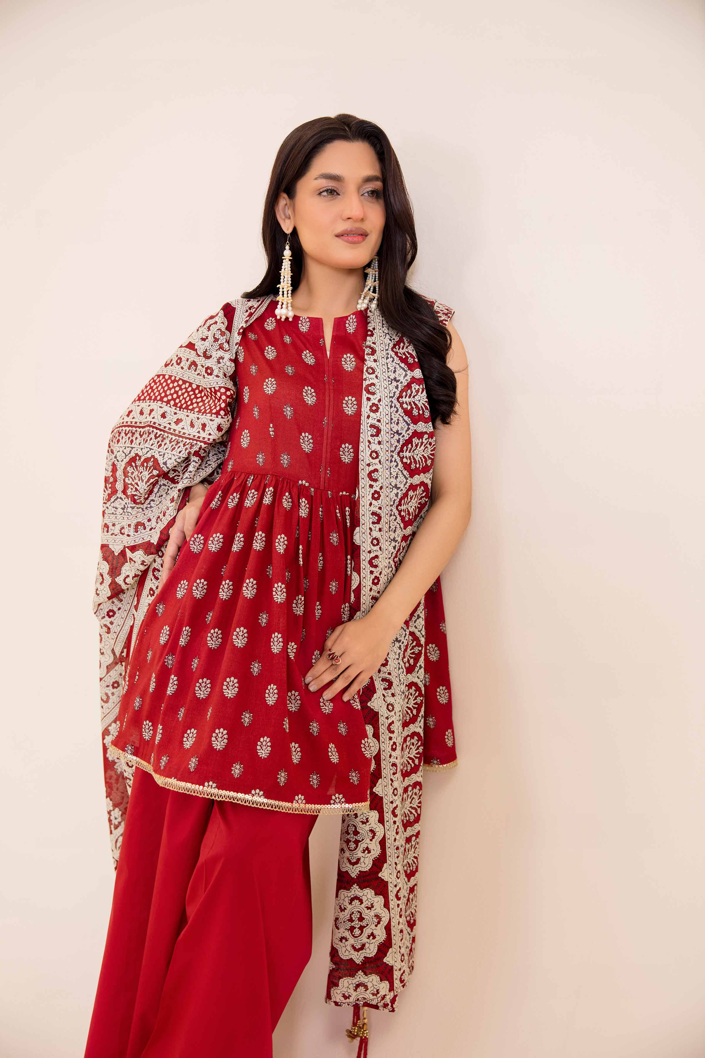 Fabric: Make you look flawless on your special days by wearing printed three-piece from the latest unstitched summer collection. Product Detail: Block Printed Style Shirt with Dupatta and Trousers SHIRT Printed Lawn Shirt: 3 Meter Fabric: Lawn Color: Red DUPATTA Printed Voile Dupatta: 2.5 Meter Fabric: Voile Color: Red TROUSERS Solid Cambric Trousers: 2.5 Meter Fabric: Cambric Color: Red Note: Product color may slightly vary due to photographic lighting sources or your device settings. |