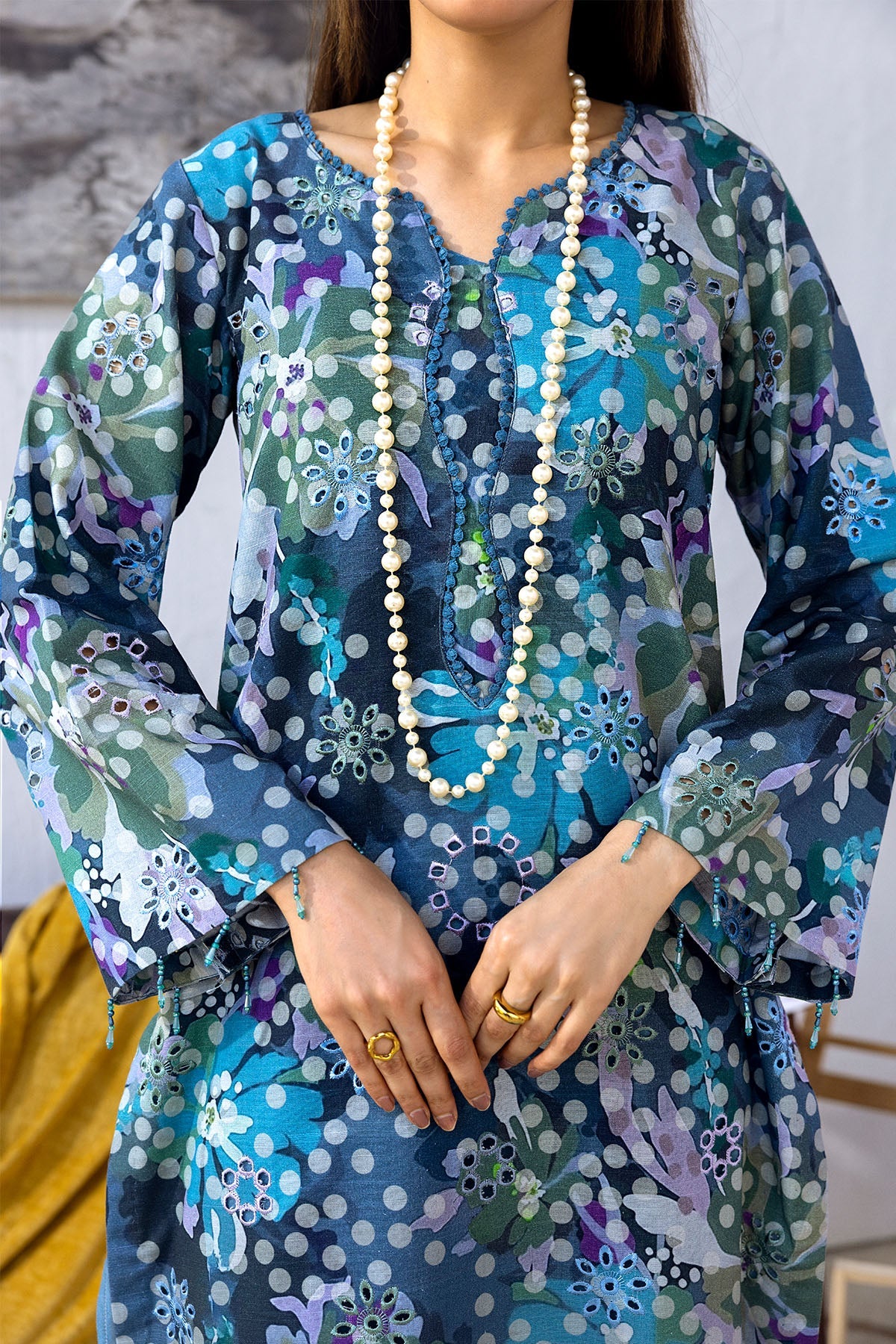 Fabric: Product Description: Printed & Embroidered Chikankari Khaddar Shirt Printed & Embroidered Chikankari Khaddar Trouserouser |
