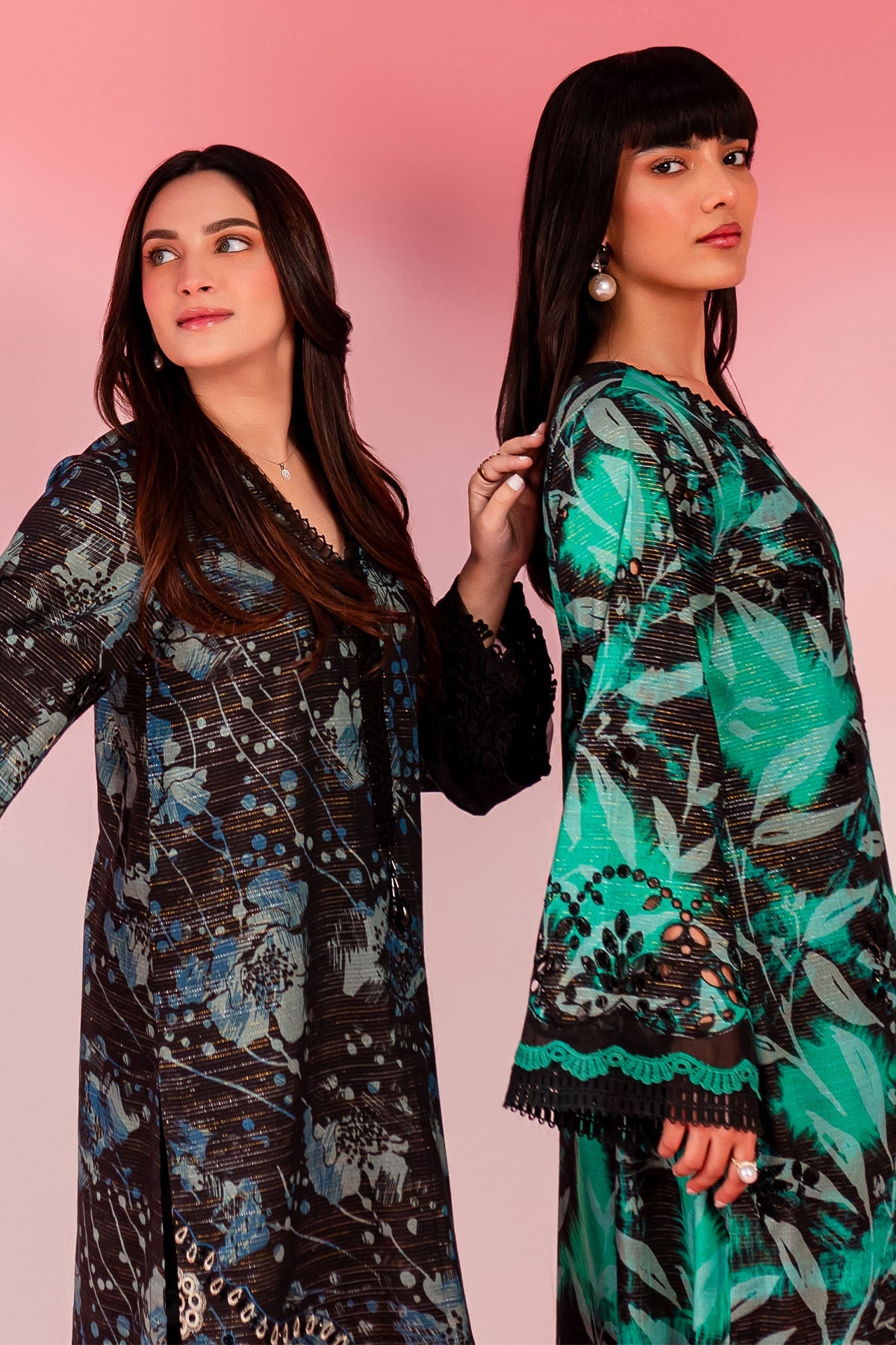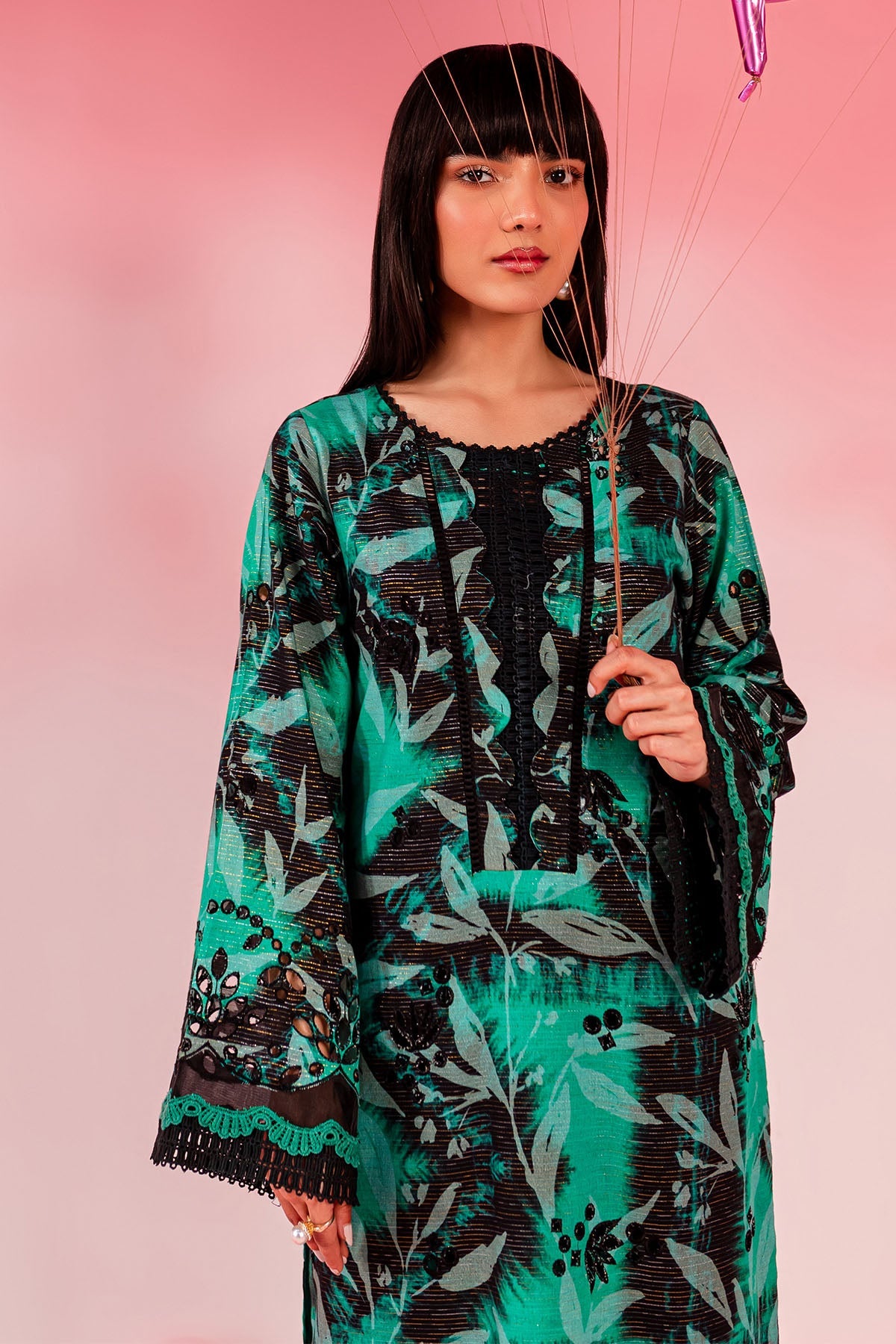 Fabric: Printed And Embroidered Chickenkari Lawn Zari Shirt Printed And Embroidered Chickenkari Cotton Zari Trouser |