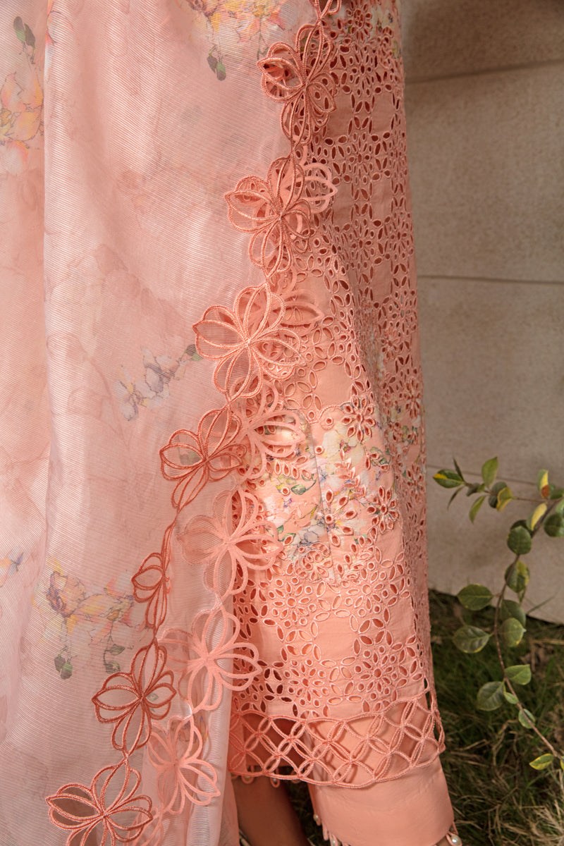 Chikankari embroidered shirt right panel on digital printed lawn 1 pcs