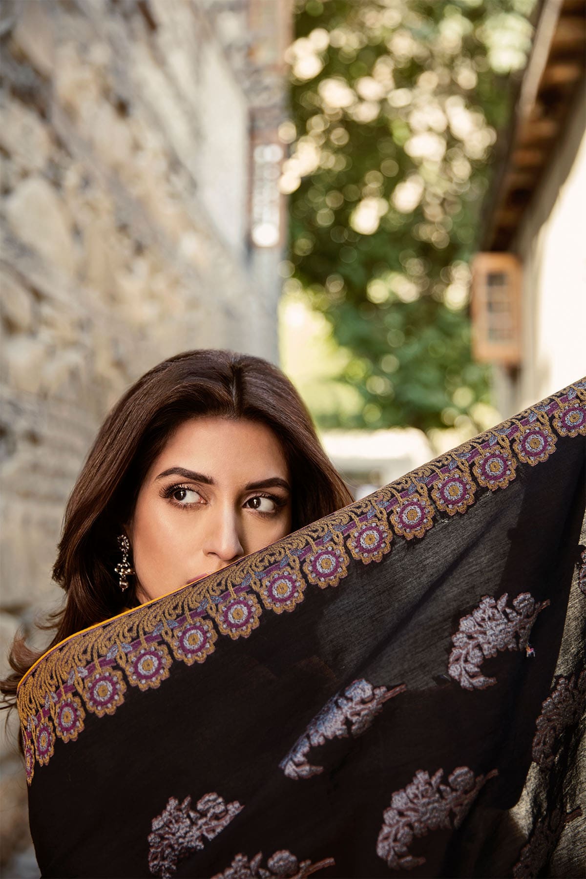 Fabric: Embroidered Karandi Front 1.25 meters Digital Printed Karandi Back 1.25 meters Digital Printed Karandi Sleeves 0.65 meters Karandi Trouser 2.5 meters Jacquard Shawl 2.5 meters |