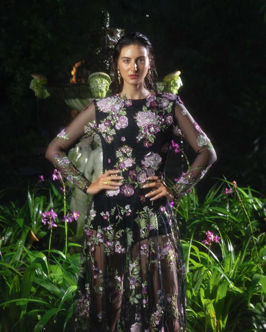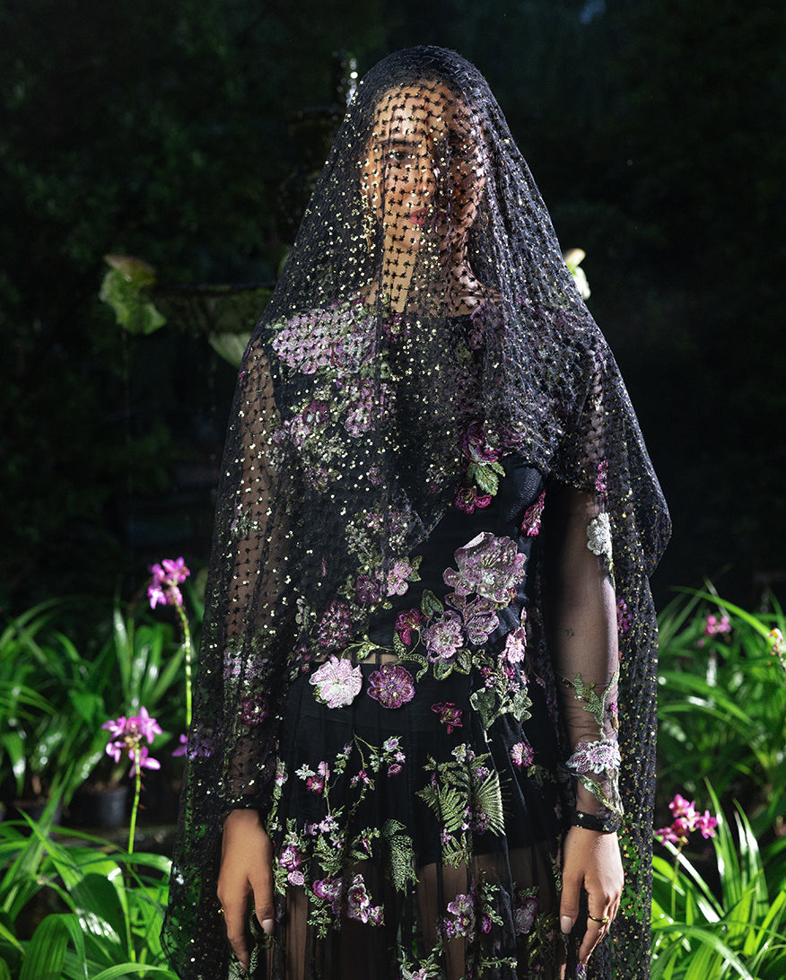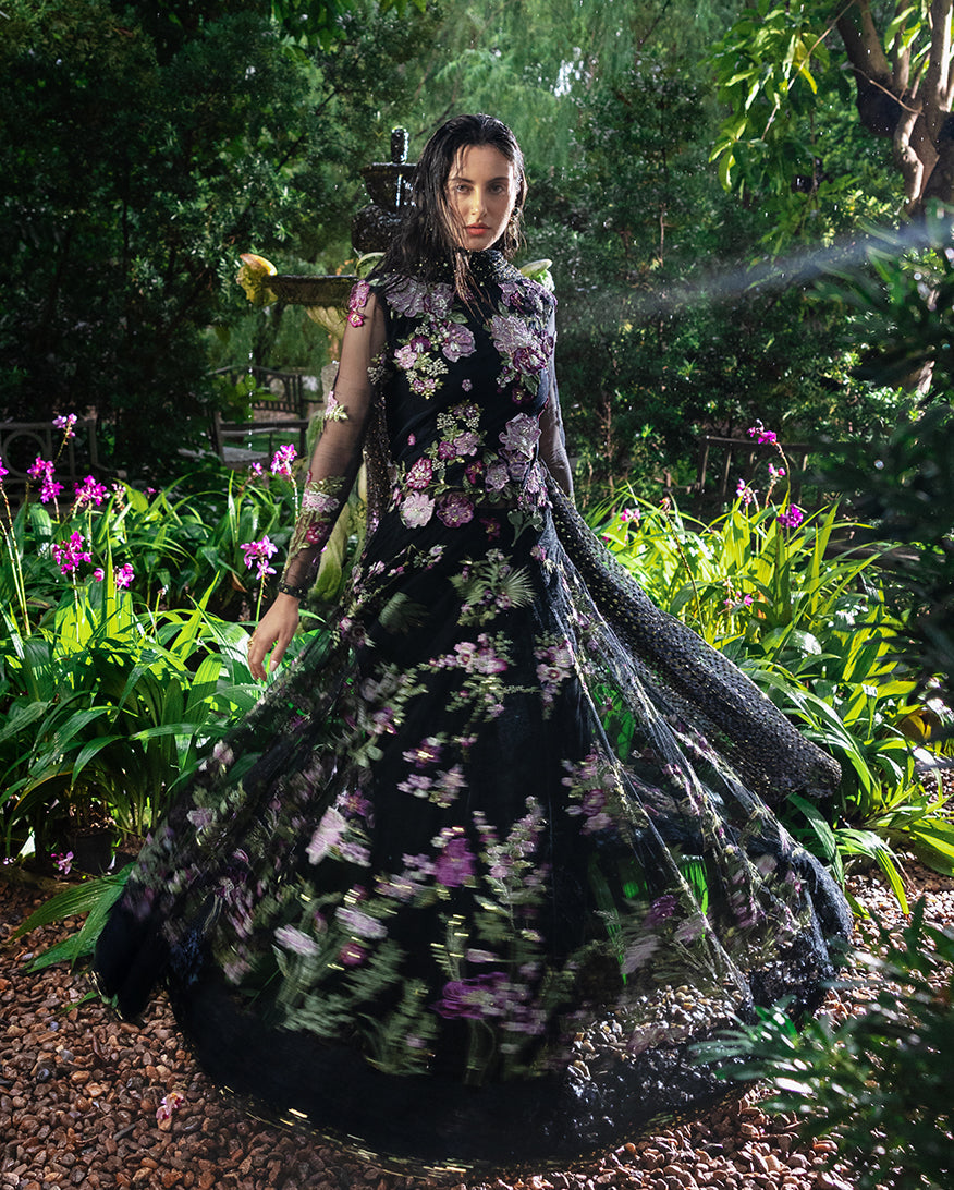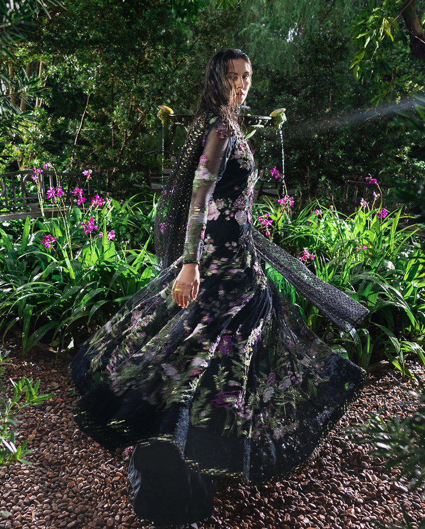 Summary: Embrace timeless elegance with the 'Amerie' by Esmel, a luxurious black Pakistani suit designed for grand occasions. Crafted from fine net fabric, this Spring/Summer formal wear features a heavily hand-embellished front yoke and intricate floral embroidery with sequins covering the numerous panels, sleeves, and daman. The flowing silhouette creates a regal look, making this ethnic wear a standout choice for weddings and festive evening galas. This formal Pakistani dress combines traditional craftsmanship with contemporary style, offering an unforgettable ensemble for your most cherished celebrations.