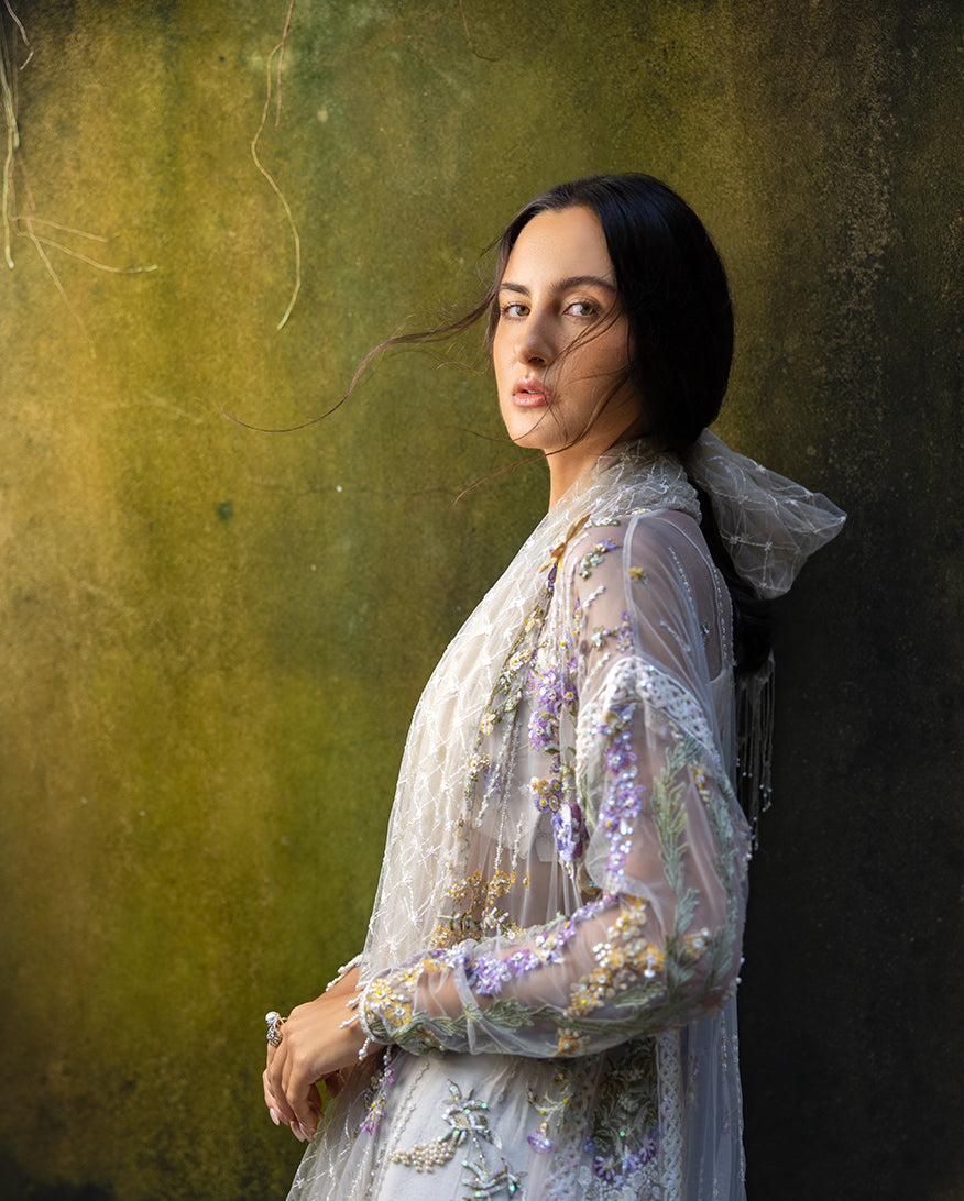 Summary: Embrace ethereal elegance with the Esmel La-vie 'Naiora' Pakistani suit. This formal ensemble features a stunning long shirt in a sophisticated Grey, crafted from delicate Net fabric, making it a perfect choice for Spring/Summer celebrations. The shirt is a masterpiece of craftsmanship, with extensive hand-embellishment across its front panels, sleeves, and daman border. Intricate sequin work and embroidery add a touch of sparkle, while handmade tassels provide a graceful finish. As a premier example of Pakistani Wedding Wear, this unstitched outfit offers a luxurious canvas for creating a bespoke look, ideal for weddings, formal receptions, or any grand festive occasion.