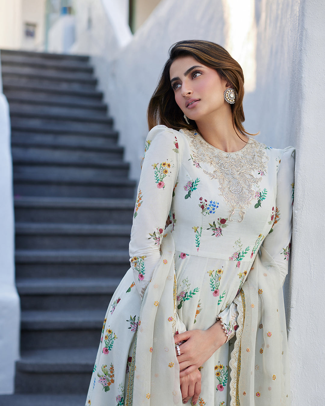 Fabric: Description: On an exquisite digitally printed canvas, Avelina brings forth the brilliance of threadwork juxtaposed against a vintage floral backdrop. The opulent lawn shirt comes with lavish embroidered necklines and borders that are complemented with a repetitive botanical pattern. This set includes plain Cambric bottom and a floaty silk and organza dupatta with embroidered pallu inserts for a look that feels pretty, playful and summer ready. Product Details: Digital Printed Shirt (lawn) 3.5 Meters Digital Printed Sleeves + Bodice (Lawn) 1.5 Meters Embroidered Front Neckline (Organza) 1 Piece Embroidered Back Neckline (Organza) 1 Piece Embroidered Sleeves Motif (Organza) 1 Pair Embroidered Hem Border 1 (Organza) 3.5 Meters Embroidered Hem Border 2 (Silk) 3.5 Meters Embroidered Dupatta Center (Organza) 1.75 Meters Embroidered Dupatta 4 Side Border 1 (Silk) 7 Meters Embroidered Dupatta Side Border 2 (Organza) 5 Meters Embroidered Dupatta Pallu 1 (Organza) 2 Meters Embroidered Dupatta Pallu 2 (Organza) 2 Meters Embroidered Dupatta Pallu 3 (Organza) 2 Meters Dyed Trouser (Cambric) 2.5 Meters |