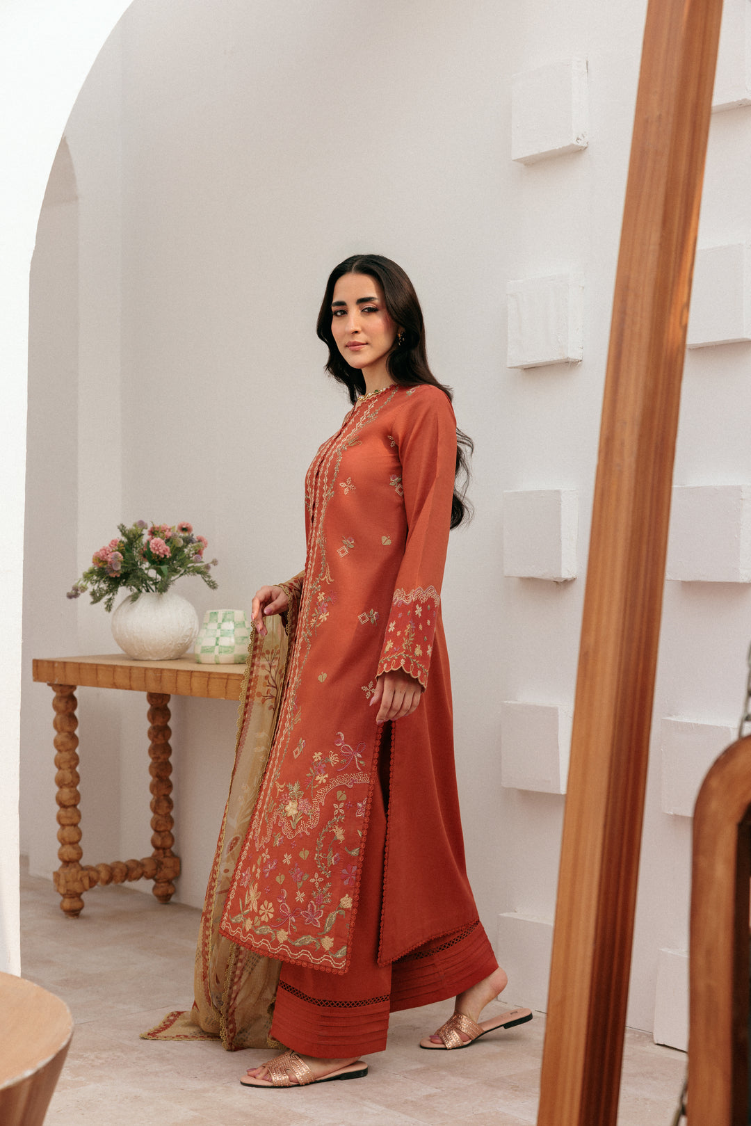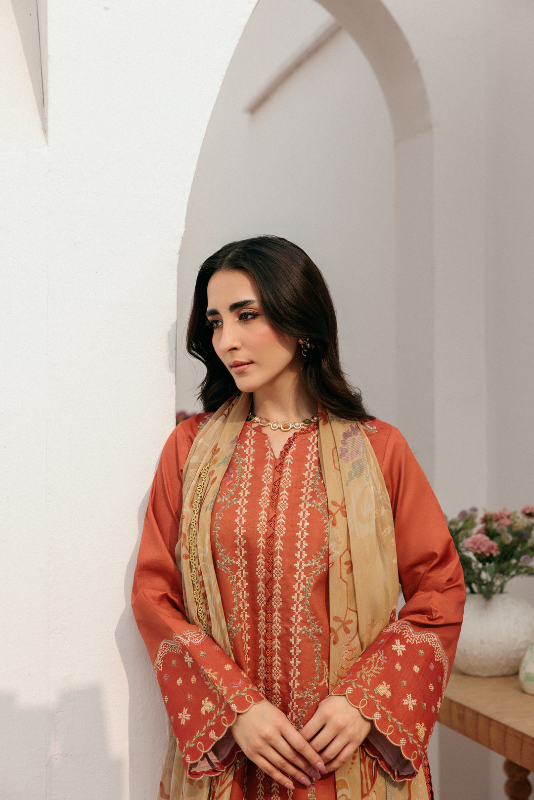 Fabric: Dyed Embroidered Front 1.20 Mtr Dyed Plain Back 1.20 Mtr Dyed Plain Sleeves Embroidered Border 1 Pc Dyed Cambric Trouser 2.5 Mtr Digital Printed Bamber Chiffon Dupatta 2.5 Mtr |