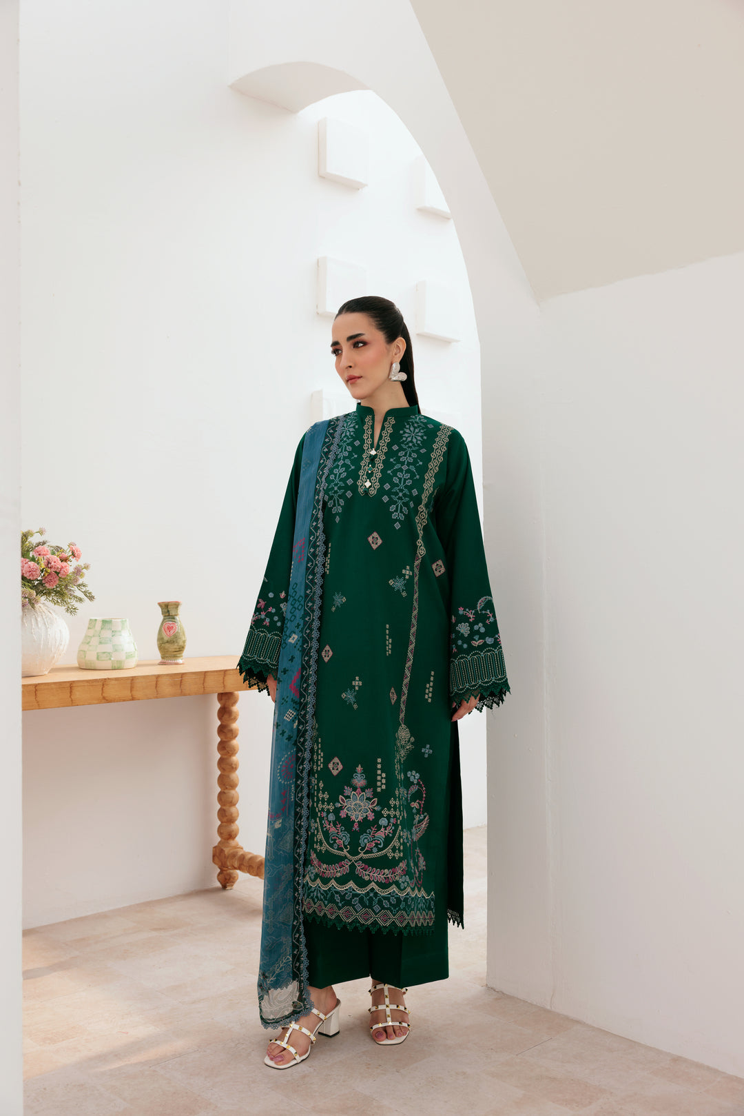 Summary: Discover refined elegance with this exquisite green Pakistani Lawn suit from Florent's summer collection. The kameez, in a deep and captivating green, is tailored from premium Lawn fabric, ensuring a light and breathable feel for the Spring/Summer season. This beautiful shirt is adorned with intricate embroidery on the front, sleeves, and a detailed border at the hem, showcasing superior craftsmanship. This formal wear piece comes as an unstitched suit, allowing for a personalized fit. It’s an ideal choice for Eid, festive gatherings, or any elegant day event, making it a must-have summer outfit.