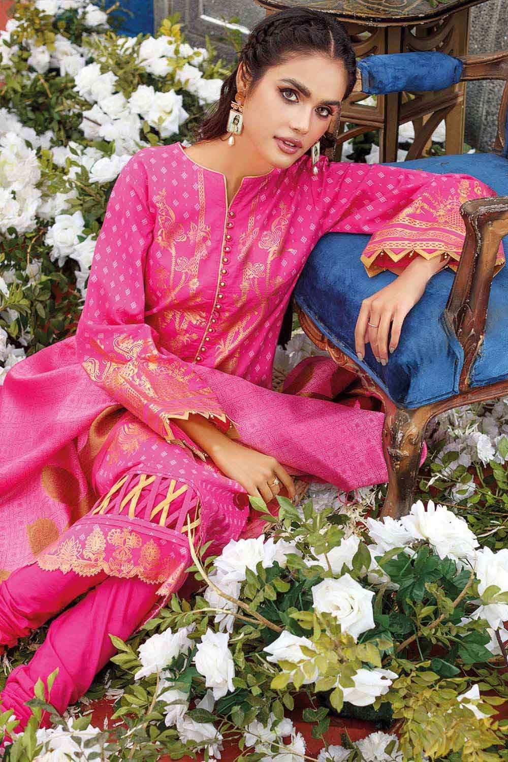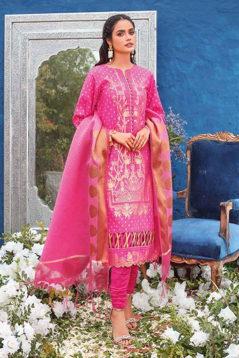 Fabric: Jacquard Dupatta - 2.5 Meters Foil Printed Lawn Shirt - 3 Meters Dyed Trouser - 1.75 Meters. |