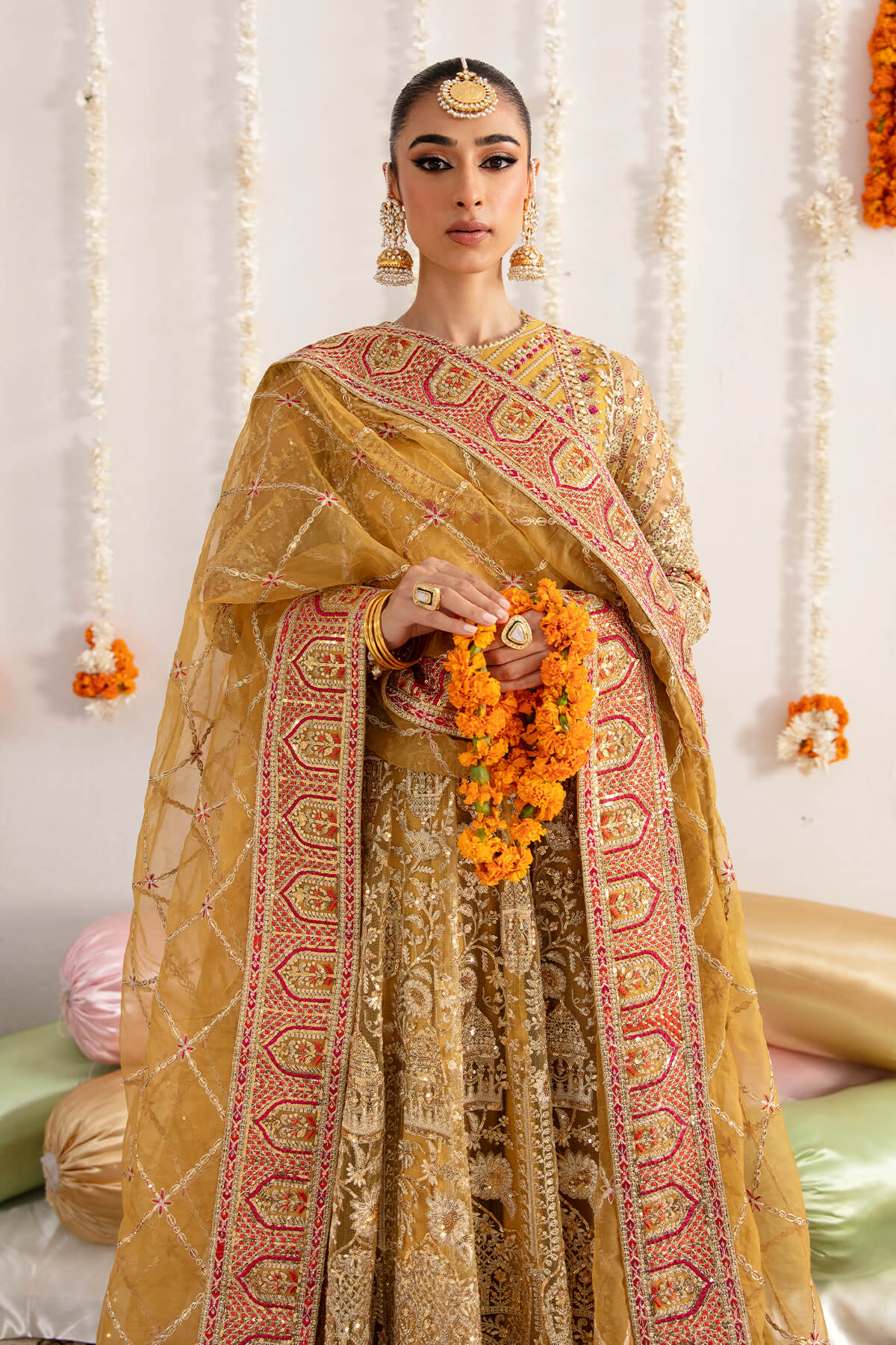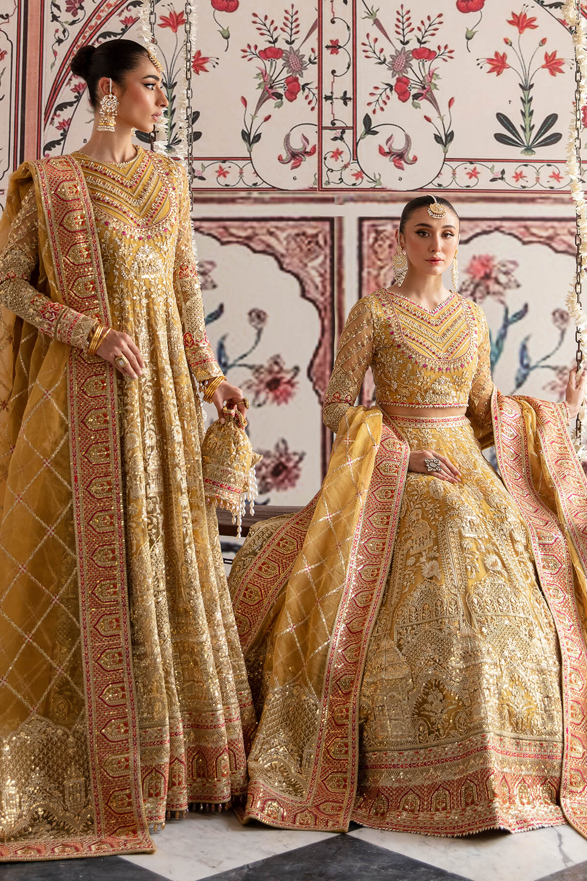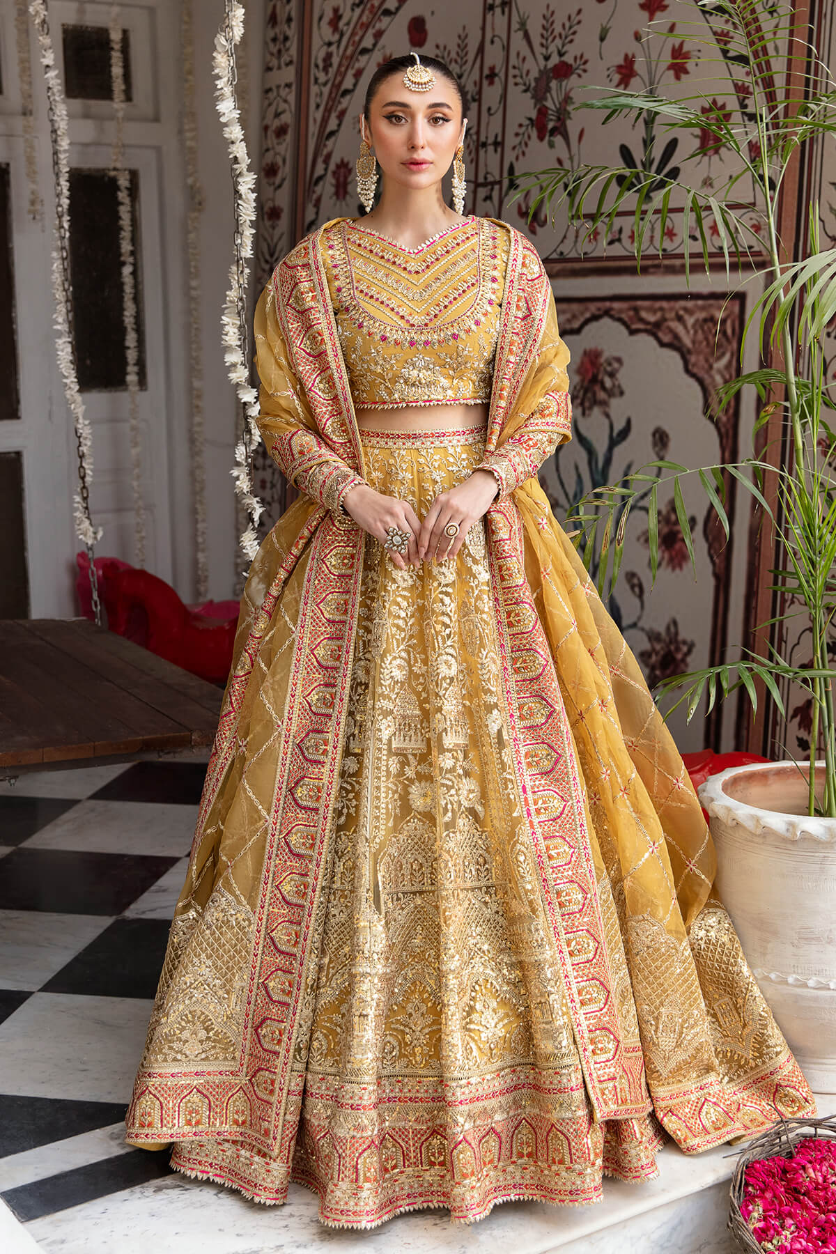 Fabric: data-mce-fragment=""1"">Embroidered net for front & back body embellished with handmade data-mce-fragment=""1"">Embroidered net for front & back panels data-mce-fragment=""1"">Embroidered net for sleeves data-mce-fragment=""1"">Embroidered organza for dupatta data-mce-fragment=""1"">Embroidered organza for front & back border data-mce-fragment=""1"">Embroidered organza for sleeves border data-mce-fragment=""1"">Embroidered organza for front & back body border data-mce-fragment=""1"">Dyed silk lining |