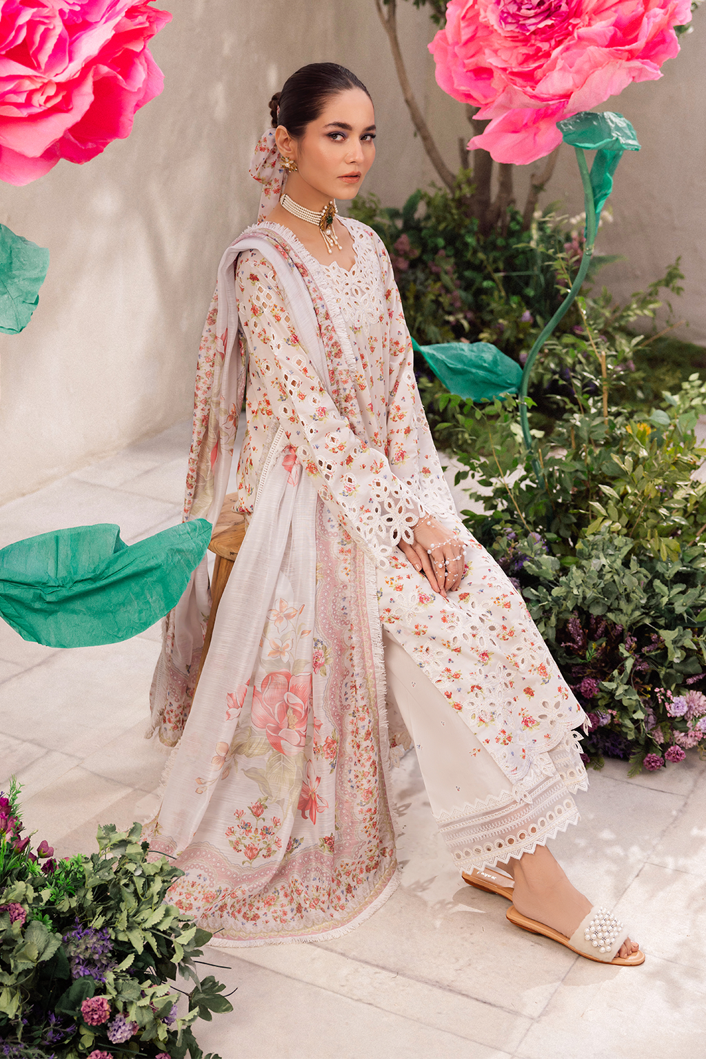 Fabric: Shirt Front: Borer Embroidered Printed Lawn Shirt Back: Printed Lawn Front & Back Lace: Borer Embroidered Organza (1.90 M) Sleeves: Borer Embroidered Printed Lawn (0.65 M) Sleeves Lace: Borer Embroidered Organza (0.90 M) Dupatta: Printed Star Cotton (2.5 M) Trouser: Printed Lawn (2.5 M) Trouser lace: Borer Embroidered Organza (1.20 M) |