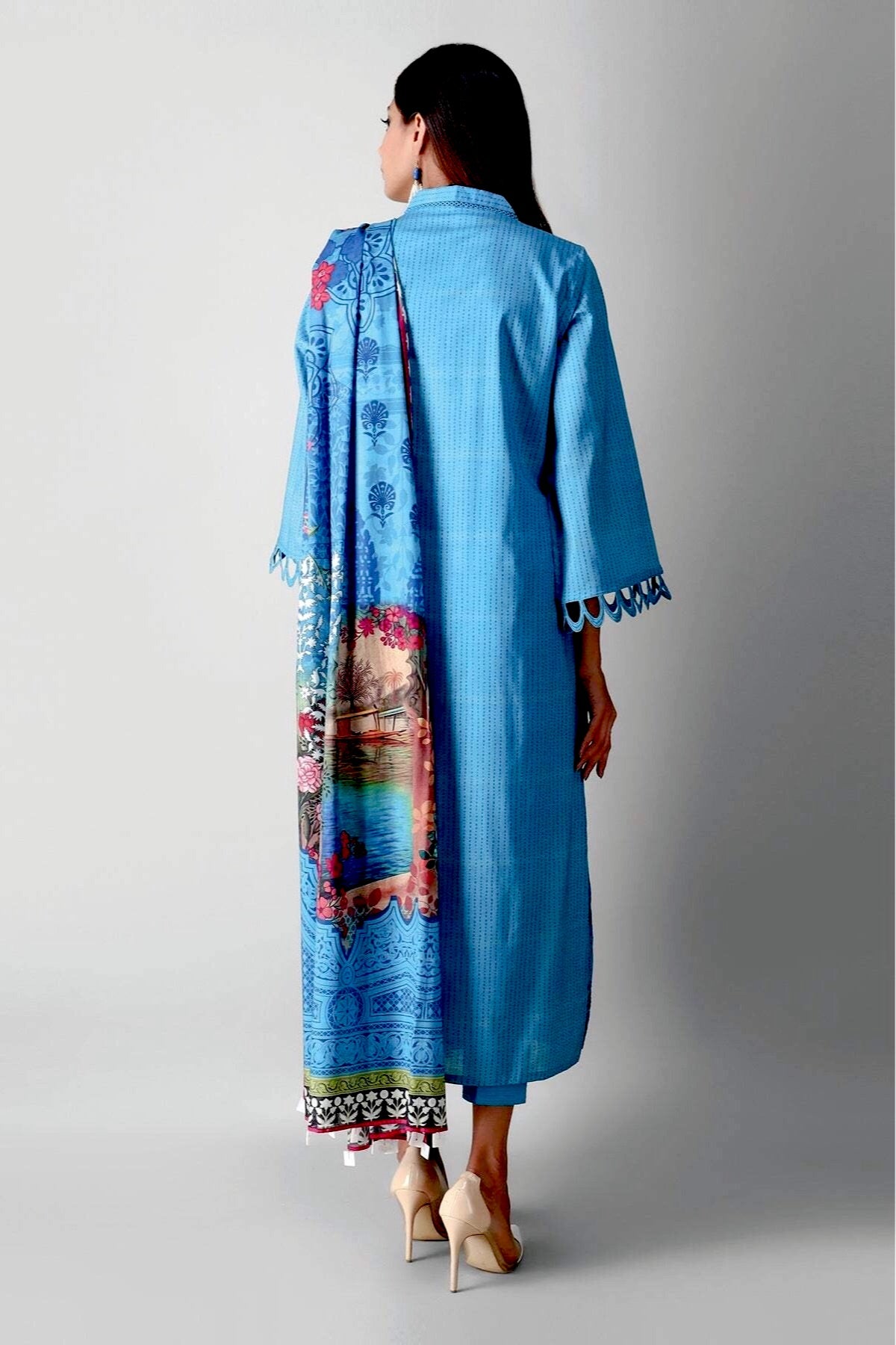 Description:Essential Printed Embroidered Top Bottom Dupatta