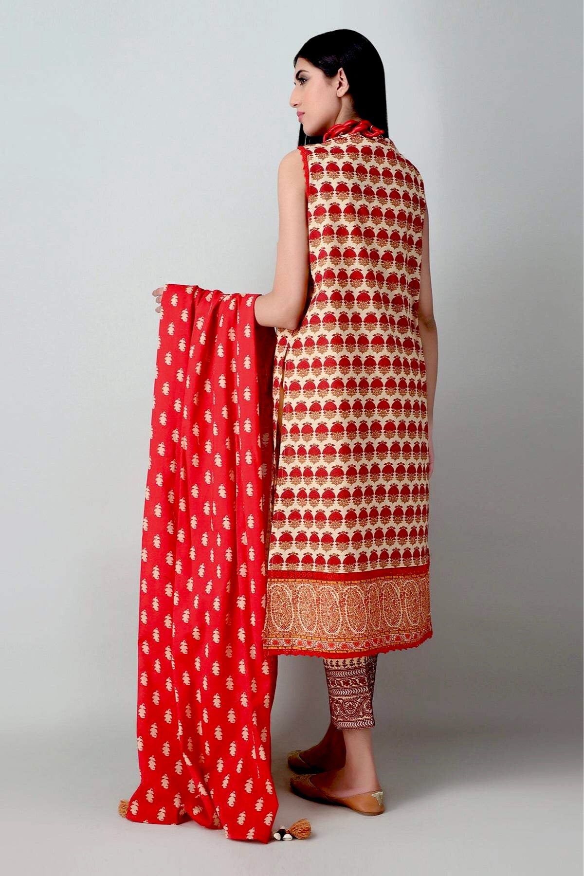 Description:Essential Printed Embroidered Top Bottom Dupatta