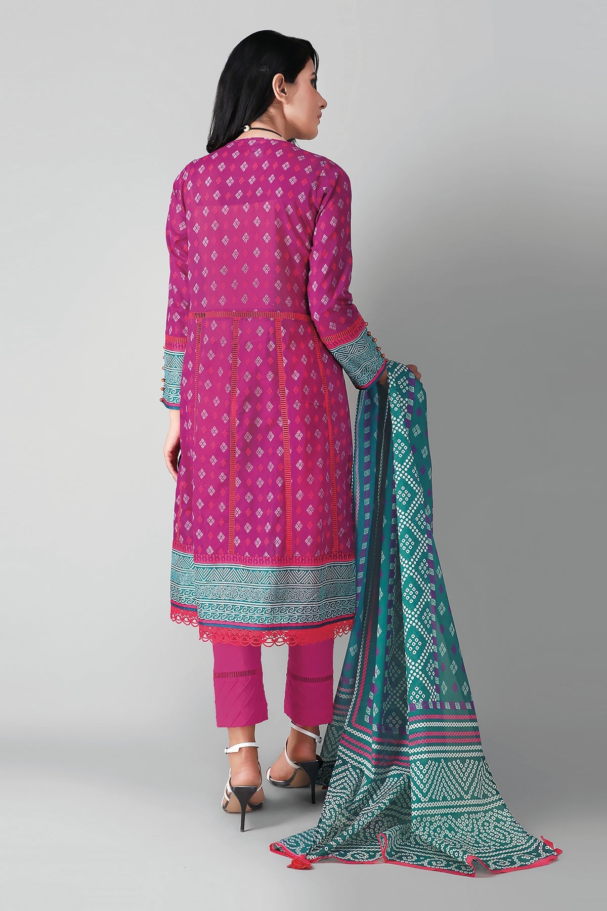 Khaadi Printed 3 Piece Suit · Full Suit – A21334B-Pink