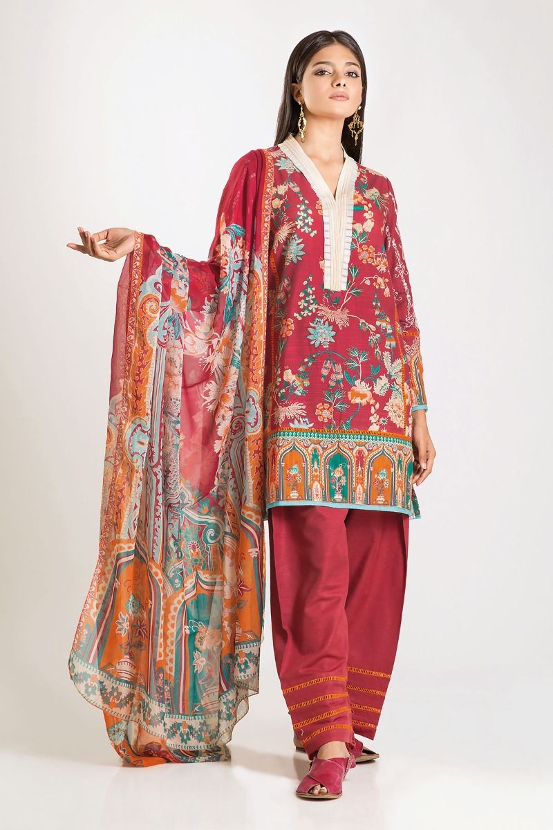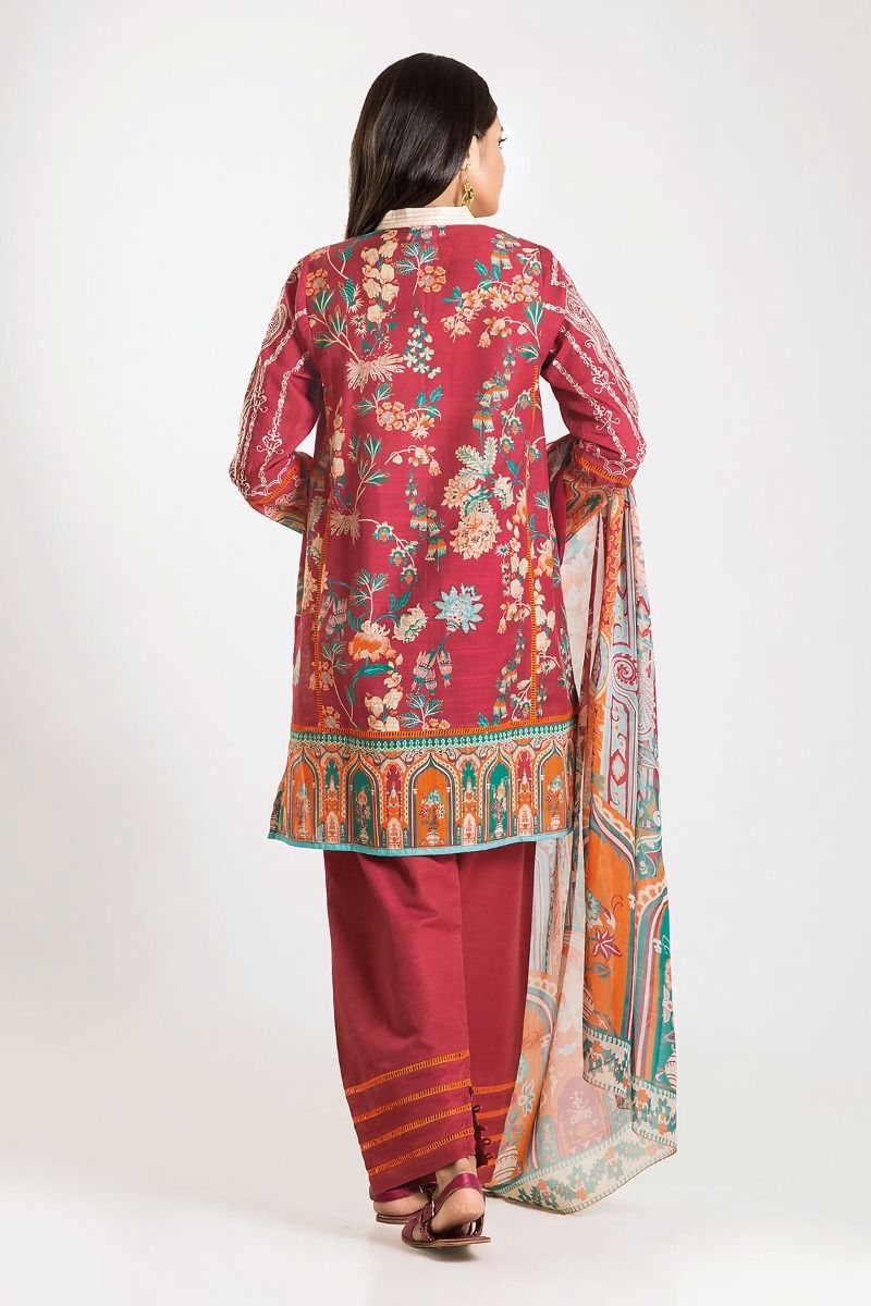 Fabric: Front & Back Khaddar Printed 2.5m Sleeve Khaddar Print Embroidered 1.0m Chiffon Printed Dupatta 2.5m Shalwar 2.5m Material: Khaddar Color: Red |