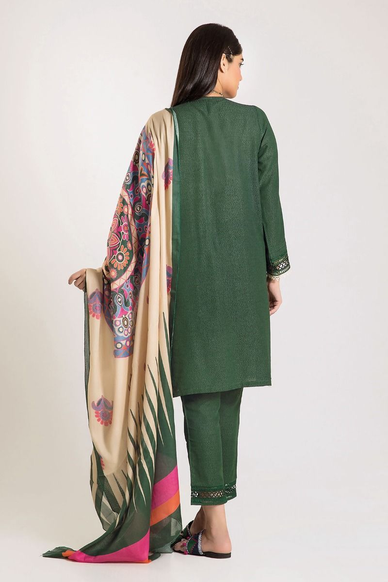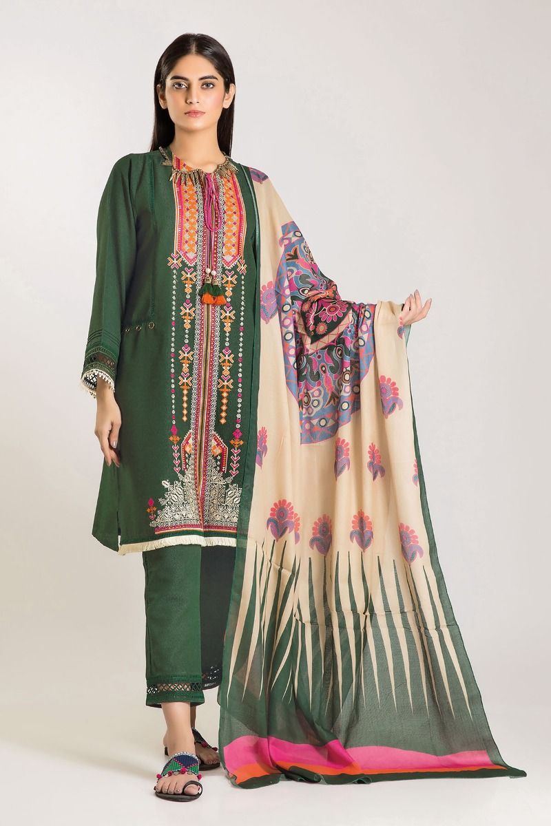 Fabric: Embroidered karandi Shirt 3.25m Cotton Square Dupatta 2.5m Karandi Shalwar 2.5m Material: Karandi Color: Green |