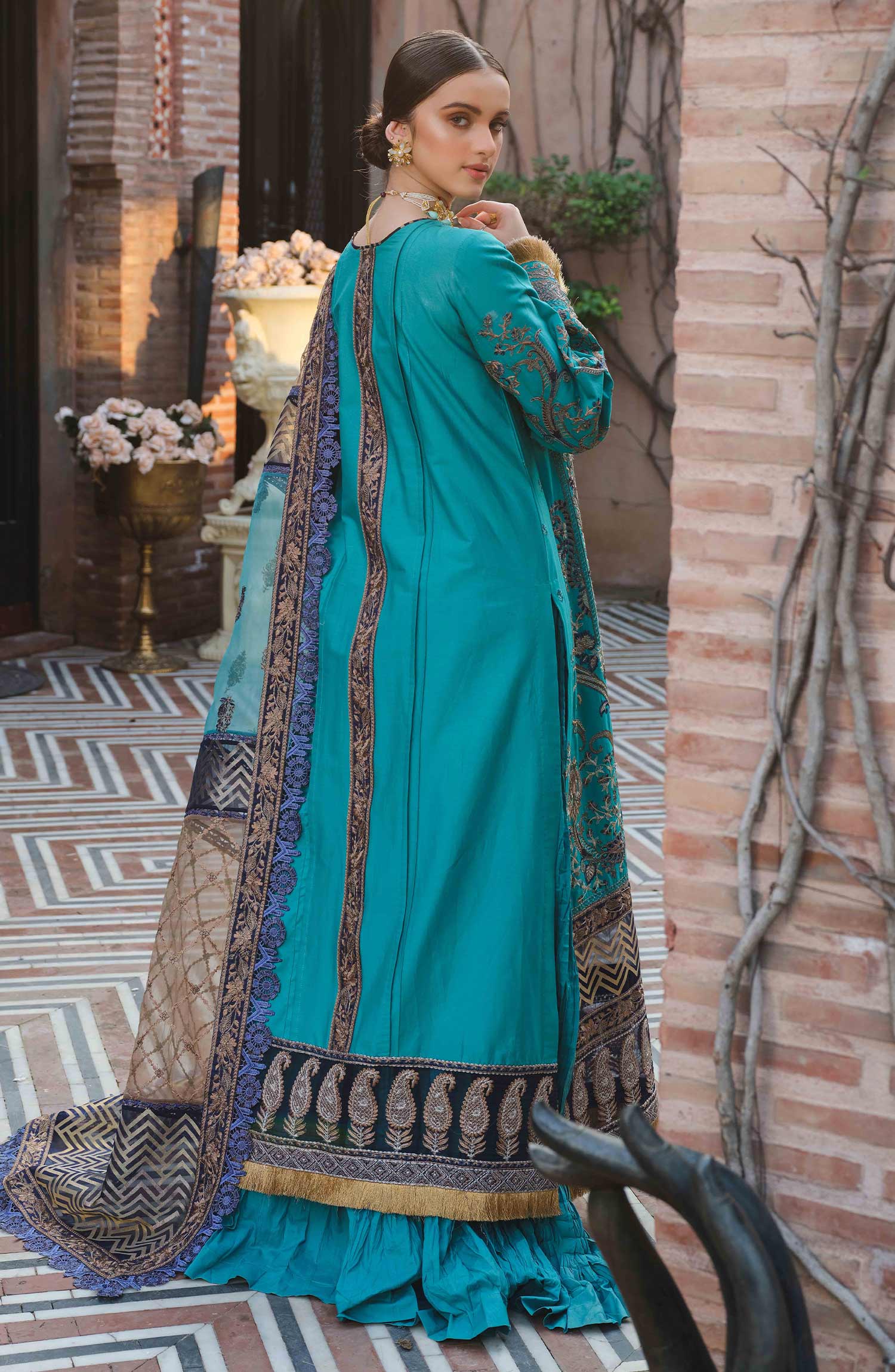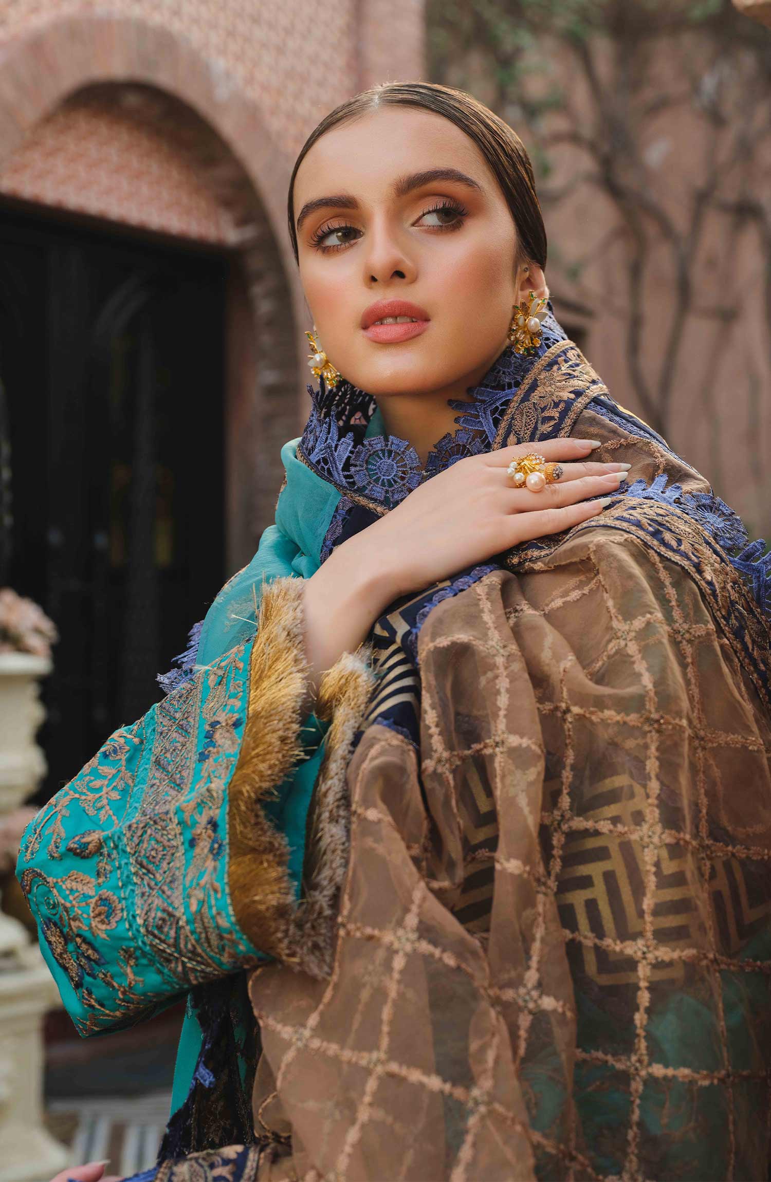 Fabric: Embroidered lawn front & sleeves lawn back Embroidered lawn sleeves Patti patch Embroidered organza front back daman patches Front laser patch Embroidered organza dupatta with embroidered & laser patches Cotton trouser *Extensions not included |