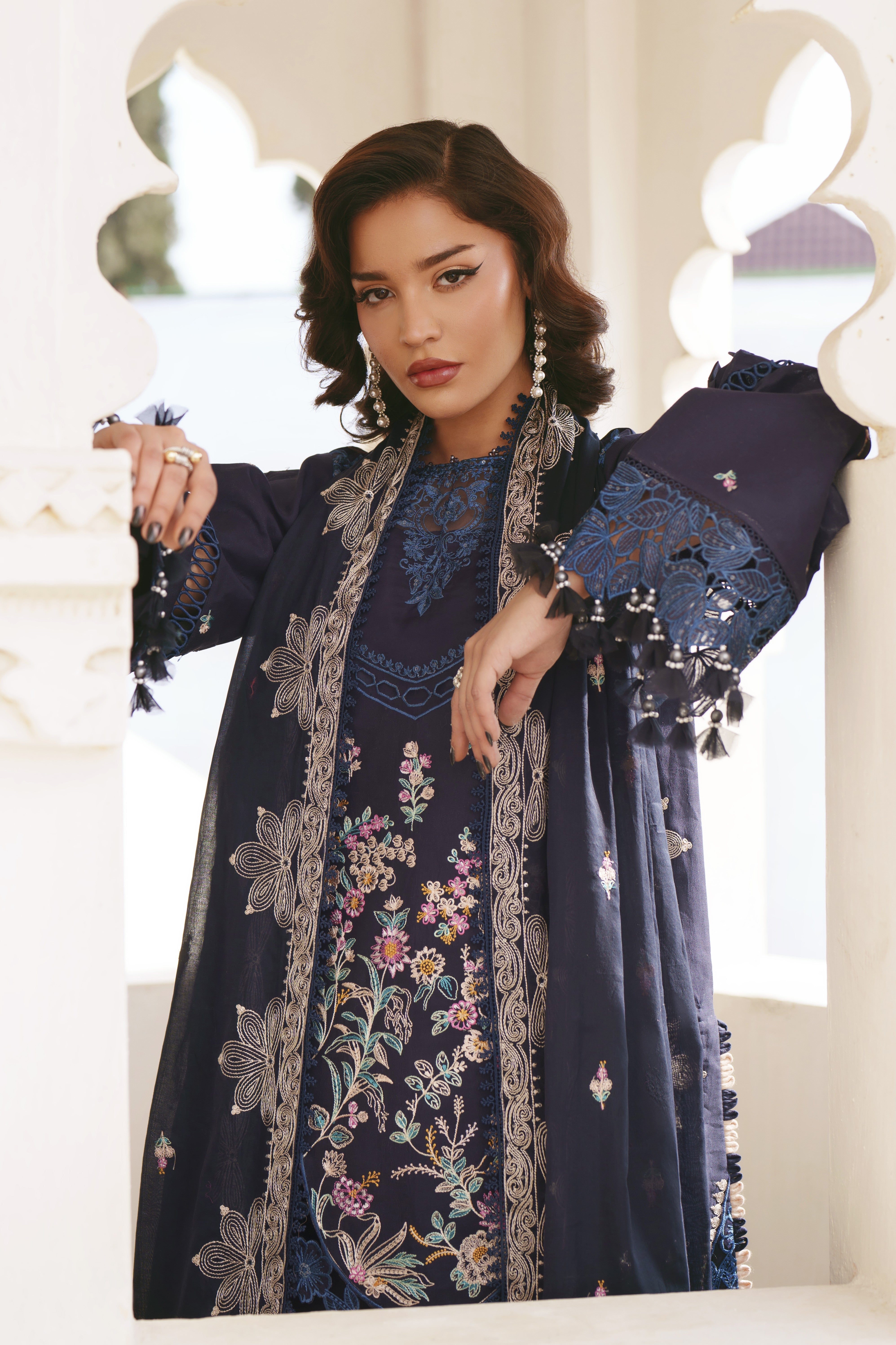 Summary: Embrace sophisticated charm with this Navy Blue Pakistani Lawn Suit from the Parishay Shangrila Summer collection. Crafted from premium, breathable lawn fabric, this ethnic wear is an ideal choice for warm-weather festivities. The kameez is a canvas of intricate, multi-tonal floral embroidery on the front, neckline, and daman, complemented by detailed sleeves. This formal Pakistani dress elegantly combines traditional artistry with a modern silhouette, making it a standout summer outfit. Perfect for Eid celebrations, wedding functions, or any formal soiree where you want to make a graceful statement.